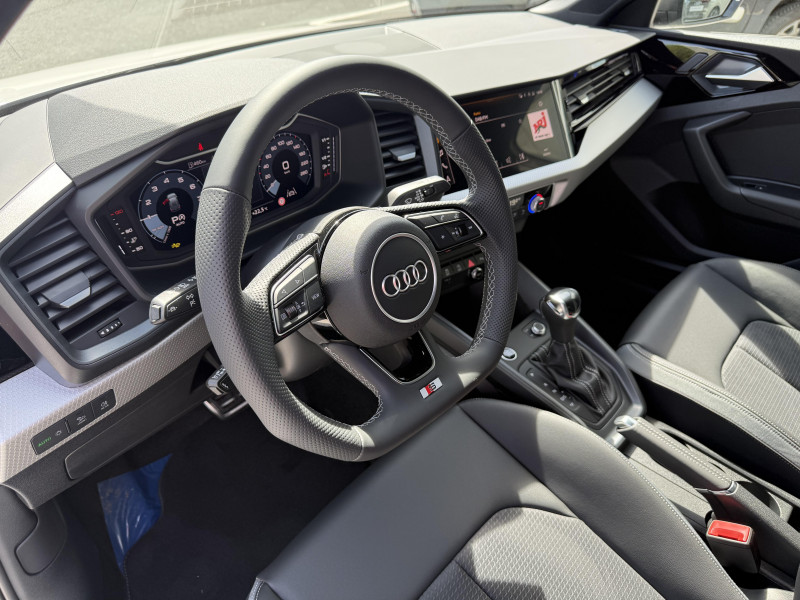 Audi virtual cockpit / Boîte automatique S Tronic 7 vitesses / Encadrement de calandre en Argent Aluminium mat / Jantes en aluminium coulé style 5 branches en étoile 7,5 J x 17", pneus : 215/45 R17 / Moulures de seuil avec insert en aluminium à l'AV / Pack Rangement - Boîte à gants verrouillable - Vide-poches au dos des sièges, côtés conducteur et passager AV - Compartiment sous le siège AV droit / Phares et feux AR à LED, avec clignotants dynamiques à AR / Pommeau de levier/sélecteur de vitesses en cuir perforé / Préparation pour la navigation MMI plus et Audi virtual cockpit / Rétroviseur intérieur jour/nuit automatique / Sièges Sport cuir/tissu avec surpiqûre contrastée et estampillage S sur le dossier des sièges AV Avec appui lombaire manuel à 2 axes. Avec bourrelets latéraux enveloppants pour un meilleur maintien en virage. / Style aluminium à l'intérieur Bouton de réglage des rétroviseurs, lève-vitres, caches des diffuseurs, bouton pression du frein à main, cache de la prise 12 volts ainsi que l'encadrement du combiné d'instruments numérique ou de l'Audi virtual cockpit en Aluminium Argent mat / Volant en cuir style 3 branches avec multifonctions plus / Airbags latéraux à l'AV et système d'airbags de tête / Appel d'urgence Audi connect et services / Applications décoratives structure polygone en laque diamant Gris Argent / Applications décoratives étendues en laque Quartz Gris structuré dans l'insert du diffuseur d'air et de la console centrale ainsi que dans la poignée de la commande intérieure de verrouillage des portières / Applications décoratives étendues sur le tableau de bord façon verre en noir, de l'écran couleur MMI touch jusqu'aux triangles de portières AV façon verre en noir / Assistant de démarrage en côte (Audi Hill Hold Assist) / Audi Drive Select / Audi Parking System Plus / Audi Pre Sense front / Audi Smartphone Interface / Barrette du diffuseur AR : Gris Platine mat / Bas de caisse dans la couleur de carrosserie / Becquet de pavillon S line / Boîtiers de rétroviseurs extérieurs couleur carrosserie / Calandre en Noir mat grainé / Châssis standard / Ciel de pavillon en tissu Noir / Cléà fréquence radio / Contrôle de la traction (TCS) / Câbles de recharge pour téléphone portable / Diffuseur AR en noir titane mat / Détecteur d'occupation des sièges / Détecteur de pluie et de luminosité / Eclairage intérieur / Emblème S-Line sur les ailes AV / Encadrement des prises d'air latérales en Noir Titane / Feux AR rouges / Frein à main manuel en revêtement plastique / Grille de diffuseur AR : Noir Titane mat / Interface Bluetooth / Interface USB de type A / Lame de pare-chocs AV en Gris Platine mat / Lèvres de becquet latérales à l'AV en noir mat grainé / MMI Radio plus / Pare-brise en verre athermique avec bande grise sur la partie supérieure du pare-brise / Pare-chocs S line / Prises d'air latérales à l'AV en noir mat grainé / Pédalier en acier inoxydable / Set de réparation pour pneus / Surpiqûres contrastées en argent fin / Système de lecture des panneaux de signalisation par caméra / Tapis complémentaires AV et AR avec surpiqûres contrastées / Tapis de sol AV/AR / Trousse de secours avec triangle de présignalisation