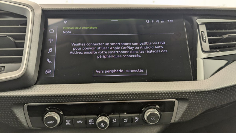 Interface Bluetooth / Audi Pre Sense front / Ciel de pavillon en tissu Gris Titane / Airbags latéraux à l'AV et système d'airbags de tête / Audi Smartphone Interface / Volant en cuir style 3 branches avec multifonctions / Jantes en aluminium coulé style 5 branches en V partiellement polies, 7,5Jx17," pneus: 215/45 R17 / Sellerie tissu Novum pour sièges sport à l'AV / Audi Parking System AR / Dossier de banquette AR rabattable en deux parties 40:60 ou entièrement / Détecteur de pluie et de luminosité / Rétroviseur intérieur jour/nuit manuel / Digital cockpit / Eclairage intérieur / Phares et feux AR à LED, avec clignotants dynamiques à AR / Accoudoirs de portières en simili-cuir à l'AV / Set de réparation pour pneus / 6 HP passifs : 4 à l'AV et 2 à l'AR /