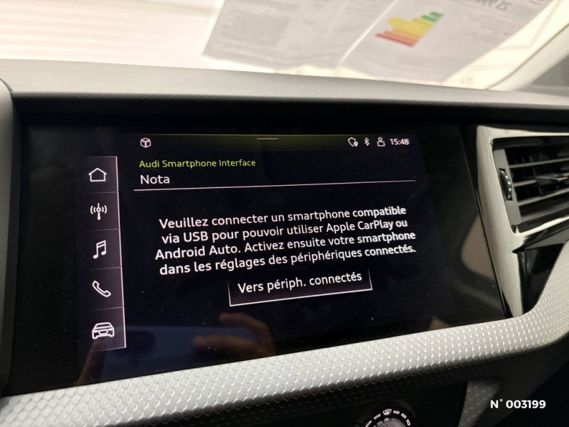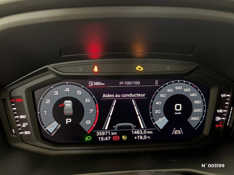 Ciel de pavillon en tissu Gris Titane / Sellerie en tissu Debut / Détecteur d'occupation des sièges / Cléà fréquence radio / Diffuseur AR en noir titane mat / Grille de calandre octogonale en noir mat / Hauteur de caisse rehaussée de + 50 mm (+ 35 mm via la suspension, + 15 mm via les pneumatiques) / Digital cockpit / Feux AR rouges / Frein à main manuel en revêtement plastique / Interface Bluetooth / Interface USB de type A pour le chargement d'appareils externes uniquement / 4 haut-parleurs à l'AV (passifs) 40 watts / Airbags latéraux à l'AV et système d'airbags de tête / Applications décoratives étendues sur le tableau de bord façon verre en noir, de l'écran couleur MMI touch jusqu'aux triangles de portières AV façon verre en noir / Applications décoratives étendues en laque diamant Gris Argent dans l'insert du diffuseur d'air et de la console centrale ainsi que dans la poignée de la commande intérieure de verrouillage des portières / Assistant de démarrage en côte (Audi Hill Hold Assist) / Applications décoratives structure polygone en laque fine Ardoise / Audi Parking System AR / Audi Pre Sense front / Audi Connect sécurité et assistance en ligne / Calandre en Noir Titane / Boîtiers de rétroviseurs extérieurs couleur carrosserie sauf Blanc Cortina / Dossier de banquette AR rabattable en deux parties 40:60 ou entièrement / Eclairage intérieur / Tapis de sol AV/AR / Sièges standard à l'AV / Système Start & Stop avec récupération d'énergie au freinage / Spoiler de toit S line / Trousse de secours avec triangle de présignalisation / Accoudoirs de portières en simili-cuir à l'AV / Volant en cuir style 3 branches avec multifonctions / Jantes en aluminium coulé style 10 branches, 6,5J x 16'', pneus : 205/60 R16 / MMI Radio plus / Lèvres de becquet latérales à l'AV en noir mat grainé / Protection de sous bassement et prises d'air latérales en argent aluminium à l'AV et à l'AR / Moulures de seuil avec insert en aluminium à l'AV / Phares halogènes avec feux de croisement, feux de route, feux diurnes, feux de position et clignotants à ampoules / Peinture contrastée Gris Manhattan / Set de réparation pour pneus / Rétroviseur intérieur jour/nuit manuel / Châssis standard / Détecteur de pluie et de luminosité