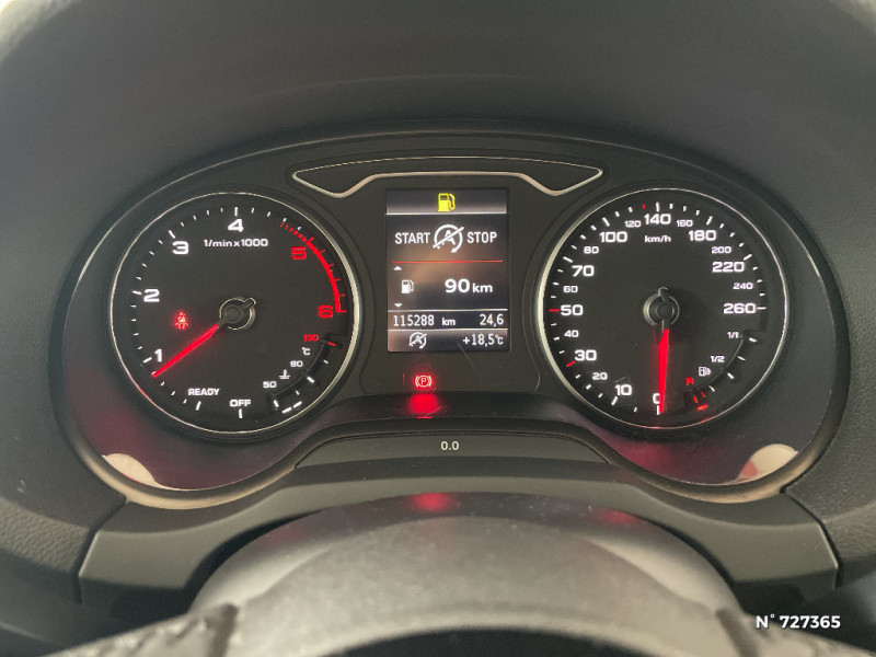 Rétroviseurs extérieurs réglables, dégivrants et rabattables électriquement avec position automatique pour manoeuvre de stationnement / Pare-brise acoustique avec isolation acoustique / Peinture unie / Peinture vernie / Pommeau de levier de vitesse en aluminium Audi Exclusive / Projecteurs AV Xénon Plus avec feux de jour à LED / Projecteurs AV Xénon Plus avec feux de jour à LED et feux tout-temps / Récupération d'énergie, générée lors des phases de freinage ou de décélération et système Start/Stop permettant une économie de carburant / Rétroviseur intérieur jour/nuit automatique / Rétroviseur intérieur jour/nuit automatique / Rétroviseurs extérieurs avec clignotants à LED intégrés / Rétroviseurs extérieurs couleur carrosserie / ABS + EBV + ESP / ABS avec répartiteur électronique de freinage EBV, programme électronique de stabilisation ESC avec détection de barres de toit et assistance au freinage d'urgence / Airbags frontaux côté conducteur et passager avec airbag de genoux et désactivation de l'airbag passager / Airbags latéraux (airbag thorax et bassin à l'AV) / Applications décoratives Argent micrométallique / Appuis-tête AV et AR intégraux / ASR (antipatinage) pour une motricité et une rigidité transversale optimale. Réduit le patinage des roues motrices. / Audi Connect avec une carte SIM de données intégrée (valable pour 36 mois) / Roue de secours temporaire gonflable / Roues avec écrous antivol / Sécurité enfants activable électriquement / Sellerie Tissu Marathon / Système d'airbags de tête / Système d'information du conducteur avec écran couleur / Tapis de coffre / Tapis de sol AV/AR / Audi Drive Select / Audi Hold Assist / Audi Hold Assist (Assistant de démarrage en pente) / Audi Parking System : Radars AR d'aide au stationnement AR avec signal acoustique / Buses de lave-glace degivrantes / Câbles de recharge pour téléphone portable, compatibles iPhone et Android / Ciel de pavillon en tissu Gris roche / Compresseur et produit de colmatage en cas de crevaison / Contrôle électronique de stabilisation (ESC): comprend les fonctions ABS, EBV, ASR et EDS / Cric et outillage de bord / Détecteur de pluie et de luminosité / Détection de barres de toit / Ecrous de roues antivol / Fixations ISOFIX pour sièges enfant pour le siège du passager AV + aux places extérieures AR avec sytème d'ancrage ""Top Tether"" / Frein de stationnement électromécanique / Freins à disques sur les essieux AV et AR / Interface Bluetooth / Jantes en aluminium coulé style 10 branches avec pneus 205/55 R16 / Jauge de niveau de liquide lave-glace / Lecteur CD/MP3 avec un slot pour carte SD / MMI Navigation / Pack Rangement et Coffre / Triangle de présignalisation + trousse de secours / Vitres latérales et AR athermique