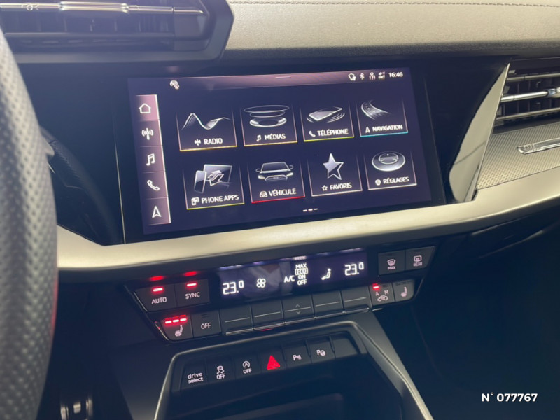 Audi Connect Navigation et Divertissement Plus / Sièges AV réglables manuellement Hauteur et positionnement en longueur, Inclinaison de dossier, Hauteur des appuie-tête et des ceintures / Phares à LED avec clignotants dynamiques AR / Ciel de pavillon en tissu / Airbags latéraux à l'AV et système d'airbags de tête / Pack Brillance Extérieur / Audi Connect Navigation et Divertissement / Jantes en alliage léger 17,'' 5 branches parallèles 8,0 J x 17, " pneus: 225/45 R17 / Sécurité enfant électrique / Audi park assist : cherche à l'aide de capteurs à ultrasons les places de stationnement (bataille et créneau) appropriées le long de la chaussée, calcule le créneau idéal et gère le braquage automatiquement / Kit réparation / Accoudoir central coulissant en longueur, avec inclinaison réglable / Rétroviseurs extérieurs réglables, dégivrants, rabattables électriquement avec fonction rabat automatique, (côté passager AV, marche AR enclenchée) et fonction jour/nuit automatique des deux côtés / Interface Bluetooth / Cléà fréquence radio (sans safelock) / Ecrous de roues antivol / Eclairage intérieur / 6 HP (passifs) / Alerte de sortie de voie / Régulateur de vitesse plus limiteur de vitesse / Boîtiers de rétroviseurs extérieurs dans la couleur de la carrosserie / Pack Aluminium Intérieur / Audi pre sense front / Extérieur classic avec calandre Noir mat et diffuseur Noir mat / Tapis de sol AV/AR / Volant cuir multifonctions Plus 3 branches avec palettes de commande au volant / Audi Drive Select / Sellerie tissu "Index" / Préparation pour appareil de navigation / Câbles de recharge pour téléphone portable compatibles Apple et Android / Rétroviseurs extérieurs réglables, dégivrants, rabattables électriquement avec fonction rabat automatique / Audi virtual cockpit / Direction assistée électromécanique, asservie à la vitesse / Navigation MMI plus avec MMI touch / Pare-brise à vitrage acoustique / Dispositif de limitation de vitesse / Outillage de bord / Rappel de ceinture de sécurité avec dispositif AR de détection d'occupation du siège / I-Size et Top Tether pour les sièges AR extérieurs / MMI Radio Plus / Détecteur de pluie et de luminosité / Appuis lombaires à 4 axes pour les sièges AV / Rétroviseur intérieur jour/nuit automatique sans encadrement / Trousse de secours, triangle de présignalisation et 2 vestes de sécurité / Applications décoratives effet spécial soie / Système Start & Stop avec récupération d'énergie au freinage / Commande de désactivation de l'airbag passager AV