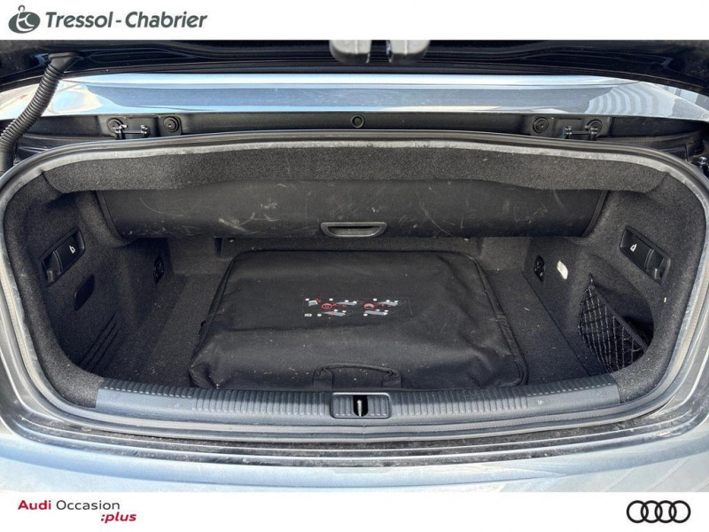 ABS avec répartiteur électronique de freinage EBV / programme électronique de stabilisation / ASR (antipatinage) pour une motricité et une rigidité transversale optimale. / Airbags frontaux côté conducteur et passager avec airbag de genoux et désactivation de l'airbag / Airbags latéraux (airbag thorax et bassin à l'AV) / Applications d'aluminium brossé mat / Appuis-tête AV et AR intégraux / Audi Drive Select / Audi Hold Assist / Audi Parking System : Radars AR d'aide au stationnement AR avec signal acoustique / Audi Smartphone Interface (Apple CarPlay ou Google AndroidAuto) / Audi Sound System / Buses de lave-glace degivrantes / Capote entièrement automatique en noir en tissu isolant 3 couches. La capote s'ouvre et se ferme par / Châssis Sport : carrosserie rabaissée d'env. 15 mm / avec suspension et amortissement fermes / Ciel de capote en tissu noir / Contrôle électronique de stabilisation (ESC): comprend les fonctions ABS / EBV / ASR et EDS / Câbles de recharge pour téléphone portable / compatibles iPhone et Android / Détecteur de pluie et de luminosité / Ecrous de roues antivol / Feux AV/AR intégralement à technologie LED incluant clignotants AR dynamiques / Fixations ISOFIX pour sièges enfant aux places extérieures AR et pour le siège du passager AV / Frein de stationnement électromécanique / Freins à disques sur les essieux AV et AR / Interface Bluetooth / Jantes en aluminium coulé style 5 branches parallèles / partiellement polies pneus 225/40 R18 / Kit anticrevaison / Logement de capote à configuration variable / avec caisson de capote abaissable automatiquement / MMI Navigation / Pack Aluminium Extérieur / Pack Aluminium Intérieur / Pack Eclairage / Pack Rangement et Coffre / Pack Smartphone / Pare-brise acoustique avec isolation acoustique / Phares à LED / avec clignotants AR à LED dynamiques / Récupération d'énergie / générée lors des phases de freinage ou de décélération et système Start/Stop / Rétroviseur intérieur jour/nuit automatique / Rétroviseurs extérieurs avec clignotants à LED intégrés / Rétroviseurs extérieurs couleur carrosserie / dégivrants et rabattables électriquement avec position / Sellerie mixte Tissu Séquence/Cuir / Système d'airbags de tête / Système d'information du conducteur avec écran couleur / Sécurité enfants activable électriquement / Tapis de coffre / Tapis de sol AV/AR / Triangle de présignalisation / Vitres latérales et AR athermiques / Volant Sport multifonction avec méplat en cuir 3 branches avec palettes de changement de vitesses