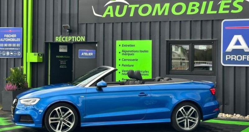 Audi A3 Cabriolet TFSI 150 CH S-LINE coupé, bleu, 8 cv, première mise en circulation le 14/03/2018, garantie 12 mois. 4 places OPTIONS ET ÉQUIPEMENTS : Audio - Télécommunications : - CD - Prise audio usb - auto-radio : CD Conduite : - Régulateur adaptatif Extérieur : - Phares bi-Led - jantes : aluminium Intérieur : - sièges chauffants Pack : - Carnet d'entretien électronique - Sur-tapis AV / AR - Bang et Olufsen Sellerie : - Sellerie semi cuir / alcantara Autres équipements et informations : - Classe Crit'air : 1 - Puissance kilowatt : 110 kw - USB - puissance réelle : 150 ch Référence annonce : 251