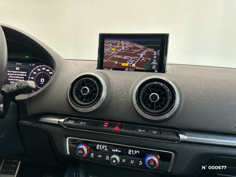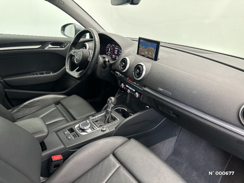 Vitres latérales et AR athermique / Interface Bluetooth / Jantes en alliage léger en style turbine 10 branches avec pneus 225/45 R17 / ABS avec répartiteur électronique de freinage EBV, programme électronique de stabilisation ESC avec détection de barres de toit et assistance au freinage d'urgence / Airbags frontaux côté conducteur et passager avec airbag de genoux et désactivation de l'airbag passager / Airbags latéraux (airbag thorax et bassin à l'AV) / Applications décoratives effet 3D Gris titane / Appuis-tête AV et AR intégraux / ASR (antipatinage) pour une motricité et une rigidité transversale optimale. Réduit le patinage des roues motrices. / Audi Drive Select / Audi Hold Assist / Audi Parking System : Radars AR d'aide au stationnement AR avec signal acoustique / Audi Smartphone Interface (Apple CarPlay ou Google AndroidAuto) / Buses de lave-glace degivrantes / Câbles de recharge pour téléphone portable, compatibles iPhone et Android / Casquette de toit / Ciel de pavillon en tissu Gris roche / Compresseur et produit de colmatage en cas de crevaison / Contrôle électronique de stabilisation (ESC): comprend les fonctions ABS, EBV, ASR et EDS / Détecteur de pluie et de luminosité / Ecrous de roues antivol / Fixations ISOFIX pour sièges enfant pour le siège du passager AV + aux places extérieures AR avec sytème d'ancrage ""Top Tether"" / Frein de stationnement électromécanique / Freins à disques sur les essieux AV et AR / Lecteur CD/MP3 avec un slot pour carte SD / Pack Aluminium Extérieur / Pack Aluminium Intérieur / Pack Eclairage / Pack Smartphone / Palettes de changement de vitesses au volant pour S-Tronic / Pare-brise acoustique avec isolation acoustique / Peinture unie intégrale / Projecteurs AV Xénon Plus avec feux de jour à LED / Récupération d'énergie, générée lors des phases de freinage ou de décélération et système Start/Stop permettant une économie de carburant / Rétroviseur intérieur jour/nuit automatique / Rétroviseurs extérieurs avec clignotants à LED intégrés / Rétroviseurs extérieurs couleur carrosserie / Rétroviseurs extérieurs réglables, dégivrants et rabattables électriquement avec position automatique pour manoeuvre de stationnement / Sécurité enfants activable électriquement / Sellerie mixte Similicuir/Tissu Regatta / Système d'airbags de tête / Système d'information du conducteur avec écran couleur / Tapis de sol AV/AR / Triangle de présignalisation + trousse de secours