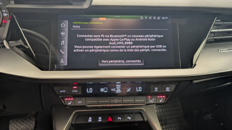 Commande de désactivation de l'airbag passager AV / Interface Bluetooth / Détecteur de pluie et de luminosité / Rétroviseur intérieur jour/nuit manuel / Sièges AV réglables manuellement Hauteur et positionnement en longueur, Inclinaison de dossier, Hauteur des appuie-tête et des ceintures / Kit réparation / Sécurité enfant électrique / Eclairage intérieur / Sellerie tissu "Index" / Applications décoratives effet spécial soie / Jantes en aluminium coulé 16'', 5 branches doubles 7 J x 16" 205/55 R16 / Accoudoir central coulissant en longueur, avec inclinaison réglable / Pare-brise à vitrage acoustique / 6 HP (passifs) / MMI Radio Plus / Alerte de sortie de voie / Audi pre sense front / Outillage de bord / I-Size et Top Tether pour les sièges AR extérieurs / Airbags latéraux à l'AV et système d'airbags de tête / Phares AV base / Régulateur de vitesse plus limiteur de vitesse / Système Start & Stop avec récupération d'énergie au freinage /