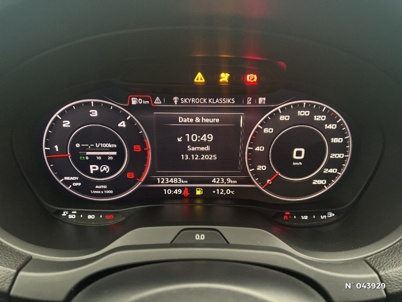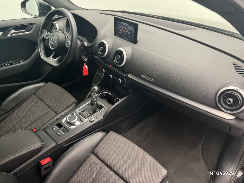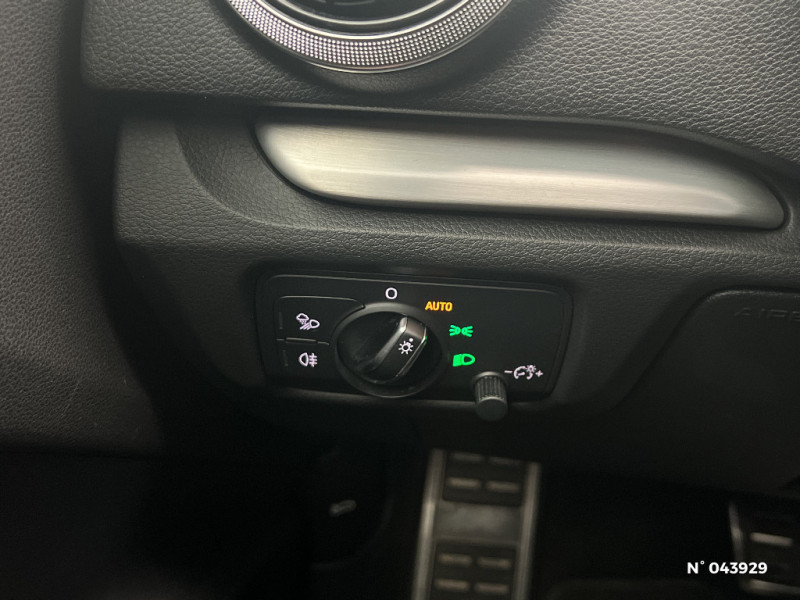 ABS avec répartiteur électronique de freinage EBV, programme électronique de stabilisation ESC avec détection de barres de toit et assistance au freinage d'urgence / Volant Sport multifonction avec méplat en cuir 3 branches avec palettes de changement de vitesses / Airbags frontaux côté conducteur et passager avec airbag de genoux et désactivation de l'airbag passager / Airbags latéraux (airbag thorax et bassin à l'AV) / Applications décoratives en Aluminium brossé mat "Light Design" / Appuis-tête AV et AR intégraux / ASR (antipatinage) pour une motricité et une rigidité transversale optimale. Réduit le patinage des roues motrices. / Audi Connect avec une carte SIM de données intégrée (valable pour 36 mois) / Audi Drive Select / Audi Hold Assist / Audi Parking System Plus: Signal acoustique et visuel d'aide au stationnement AV et AR par pictogrammes sur l'écran / Audi Smartphone Interface (Apple CarPlay ou Google AndroidAuto) / Audi Sound System / Audi Virtual Cockpit / Becquet de pavillon S line, laqué dans la couleur de la carrosserie, avec inserts aérodynamiques latéraux noir brillant, au design résolument sportif / Buses de lave-glace degivrantes / Câbles de recharge pour téléphone portable, compatibles iPhone et Android / Casquette de toit / Ciel de pavillon en tissu noir / Compresseur et produit de colmatage en cas de crevaison / Contrôle électronique de stabilisation (ESC): comprend les fonctions ABS, EBV, ASR et EDS / Détecteur de pluie et de luminosité / Ecrous de roues antivol / Fixations ISOFIX pour sièges enfant pour le siège du passager AV + aux places extérieures AR avec sytème d'ancrage ""Top Tether"" / Frein de stationnement électromécanique / Freins à disques sur les essieux AV et AR / Interface Bluetooth / Jantes en aluminium coulé 18", style 5 branches parallèles, partiellement polies, pneus 225/40 R18 / Lecteur CD/MP3 avec un slot pour carte SD / Navigation MMI Plus avec MMI Touch: Système de navigation / Pack Aluminium Extérieur / Pack Aluminium Intérieur / Pack Eclairage / Pack Extérieur S line / Pack Rangement et Coffre / Pack Smartphone / Palettes de changement de vitesses au volant pour S-Tronic / Pare-brise acoustique avec isolation acoustique / Peinture unie intégrale / Phares intégralement à LED (full LED) avec clignotants AR dynamiques / Récupération d'énergie, générée lors des phases de freinage ou de décélération et système Start/Stop permettant une économie de carburant / Rétroviseur intérieur jour/nuit automatique / Rétroviseurs extérieurs avec clignotants à LED intégrés / Rétroviseurs extérieurs couleur carrosserie / Rétroviseurs extérieurs réglables, dégivrants et rabattables électriquement avec position automatique pour manoeuvre de stationnement / Sécurité enfants activable électriquement / Sellerie mixte Tissu Séquence/Cuir / Système d'airbags de tête / Système d'information du conducteur avec écran couleur / Tapis de sol AV/AR / Triangle de présignalisation + trousse de secours / Vitres latérales et AR athermique