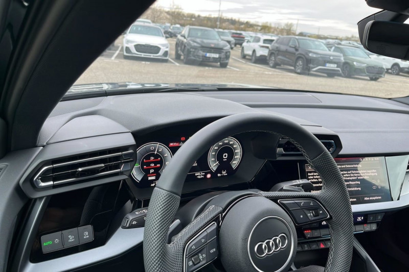 Commande de désactivation de l'airbag passager AV / Boîtiers de rétroviseurs extérieurs dans la couleur de la carrosserie / Boîtiers de rétroviseurs extérieurs en Noir / Détecteur de pluie et de luminosité / Volant cuir Sport multifonctions Plus 3 branches avec méplat et palettes de commande au volant / Vitrage Privacy : lunette AR, vitres de portières AR et vitres latérales AR surteintées / Audi Drive Select / Direction assistée électromécanique, asservie à la vitesse / Rétroviseur intérieur jour/nuit automatique sans encadrement / Kit réparation / Sécurité enfant électrique / Phares à LED avec clignotants dynamiques AR / Appui lombaire à 4 axes pour les sièges AV : réglages électrique, horizontal et vertical / Audi phone box light / Audi Hold Assist / Jantes en alliage léger 18'', 5 branches en Y, Gris Graphite, tournées brillantes 8,0 J x 18" 225/40 R18 / Clé confort incluant déverrouillage du coffre par capteur (sans safelock) - Accès et démarrage du véhicule mains libres (keyless access) - Déverrouillage du hayon via la touche "coffre" de la télécommande ou en simulant un mouvement de pied dans la zone à l?AR du véhicule (ouverture et fermeture). / Rétroviseurs extérieurs réglables, dégivrants, rabattables électriquement avec fonction rabat automatique / Accoudoir central coulissant en longueur, avec inclinaison réglable / Pare-brise à vitrage acoustique / MMI Radio Plus / Audi pre sense front / Dispositif de limitation de vitesse / Outillage de bord / Rappel de ceinture de sécurité avec dispositif AR de détection d'occupation du siège / Pack extérieur S line / 2 ports de charge USB AR / I-Size et Top Tether pour les sièges AR extérieurs / Pack intérieur S line / Airbags latéraux à l'AV et système d'airbags de tête / Sellerie tissu "Pouls" / Combinaison tissue pouls/en matière synthétiques avec estampage S / Pack Esthétique Noir Plus Reprend tous les éléments de Pack Esthétique Noir + anneaux Audi en noir sur l'AV et l'AR du véhicule et identification du modèle/moteur en noir : Pack Esthétique Noir Anneaux Audi en noir AV et AR du véhicule et identification modèle/moteur en noir / Applications décoratives en aluminium Spectre foncé (au tableau de bord) / Détection de signalisation routière par caméra / Pack assistance M Caméra de recul : Caméra de recul / Pack climatisation plus Sièges AV chauffants, Climatisation confort automatique 3 zones : Sièges AV chauffants Climatisation automatique Confort 3 zones / Pack connectivité Audi virtual cockpit plus, MMI Navigation plus, Audi Connect, Audi sound system, Audi Smartphone Interface : Audi Sound System Audi Virtual Cockpit Plus MMI Navigation plus avec MMI touch Audi connect Navigation & Infotainment Audi smartphone interface / Pack éclairage d'ambiance plus 30 couleurs diff. pour le profil de couleur personnalisé. l'éclairage de contour du tableau de bord, l'éclairage d'ambiance des portes AV et AR, l'éclairage de contour des portes AV et AR, le compartiment de rangement de la console centrale, l'éclairage des contours de la console centrale, porte-gobelets éclairés. en blanc :éclairage d'entrée sous les portes et des caves à pieds AV et AR - Miroirs de courtoisie éclairés, module de toit, à l'AV/AR, y les liseuses, Eclairage du compartiment : Miroirs de courtoisie éclairés 30 couleurs au choix pour un profil de couleur personnalisable Module de toit à LED, AV/AR y compris liseuses Eclairage du compartiment à bagages Eclairage des caves à pieds, à l'AV et à l'AR, en blanc Eclairage d'entrée sous les portes, à l'AV et à l'AR, en blanc Eclairage des contours de la console centrale Eclairage des contours du tableau de bord Eclairage d'ambiance des portes AV/AR Eclairage de contour des portes AV et AR Eclairage du compartiment de rangement de la console centrale Porte-gobelets éclairés / Etriers de freins rouges / Câble de recharge mode 3 pour recharge publique 11kW / Câble de recharge prise domestique / Contrôle de la traction (TCS) / Cléà fréquence radio (sans safelock) Verrouillage central "Keyless-Go" verrouille et déverrouille les portes, le capot de coffre et la trappe à carburant ; incluant ouverture/fermeture confort des vitres / Boîte automatique S Tronic 6 vitesses / Audi park assist plus avec caméra. L'aide au stationnement plus peut aider à entrer et à sortir des places de stationnement qui peuvent être limitées par des véhicules ou des objets. Le système prend le contrôle de la direction, de l'accélération, du freinage et du changement de vitesse / Pack intérieur sport combinaison tissu/matière synthétique Sièges sport à l'AV, Sellerie en combinaison tissu Pouls/similicuir avec estampagne S, Pédalier en acier inoxydable, Enjoliveurs de seuil de porte avec inserts en aluminium à l'AV, Dossier de banquette AR rabattable 60/40, Application de volant en style chrome, emblème S, poignées de volant en cuir perforé et couture contrastée, Pavillon en tissu noir, Accoudoir en matériaux synthétiques, Style aluminium à l'intérieur : Ciel de pavillon en tissu Noir Sièges AV Sport Pédalier et repose-pieds en acier inoxydable Style aluminium à l'intérieur Dossier de banquette AR rabattable 40:60 Enjoliveurs de seuil de porte avec inserts en aluminium à l'AV, éclairés, monogramme S Accoudoir de portière en matière synthétiques Sellerie tissu "Pouls" / Combinaison tissue pouls/en matière synthétiques avec estampage S Application de volant en style chrome, emblème S, poignées de volant en cuir perforé et couture contrastée / Système Start & Stop avec récupération d'énergie au freinage /