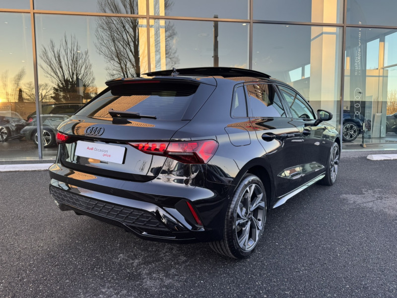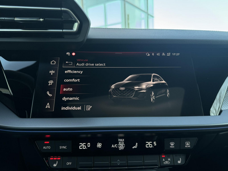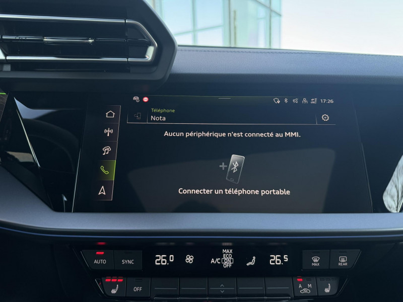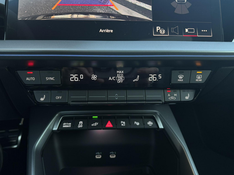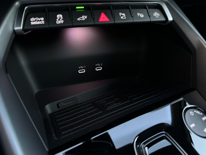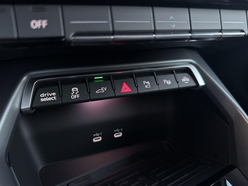 Applications décoratives en aluminium Spectre foncé (au tableau de bord) / Audi park assist plus avec caméra 360° L'aide au stationnement plus peut aider à entrer et à sortir des places de stationnement qui peuvent être limitées par des véhicules ou des objets. Le système prend le contrôle de la direction, de l'accélération, du freinage et du changement de vitesse / Boîte automatique S Tronic 6 vitesses / Jantes en alliage léger 18'', 5 branches en Y, Gris Graphite, tournées brillantes 8,0 J x 18" 225/40 R18 / Jantes en alliage léger 18'', 5 branches en Y, Gris Graphite, tournées brillantes 8,0 J x 18" 225/40 R18 / Pack assistance M Caméra de recul / Pack climatisation plus Sièges AV chauffants, Climatisation confort automatique 3 zones / Pack connectivité Audi virtual cockpit plus, MMI Navigation plus, Audi Connect, Audi sound system, Audi Smartphone Interface / Pack extérieur S line / Pack intérieur S line / Pack éclairage d'ambiance plus 30 couleurs diff. pour le profil de couleur personnalisé. l'éclairage de contour du tableau de bord, l'éclairage d'ambiance des portes AV et AR, l'éclairage de contour des portes AV et AR, le compartiment de rangement de la console centrale, l'éclairage des contours de la console centrale, porte-gobelets éclairés. en blanc :éclairage d'entrée sous les portes et des caves à pieds AV et AR - Miroirs de courtoisie éclairés, module de toit, à l'AV/AR, y les liseuses, Eclairage du compartiment / Phares à LED avec clignotants dynamiques AR / Phares à LED avec clignotants dynamiques AR / Rétroviseur intérieur jour/nuit automatique sans encadrement / Rétroviseurs extérieurs réglables, dégivrants, rabattables électriquement avec fonction rabat automatique / Volant cuir Sport multifonctions Plus 3 branches avec méplat et palettes de commande au volant / 2 ports de charge USB AR / Accoudoir central coulissant en longueur, avec inclinaison réglable / Airbags latéraux à l'AV et système d'airbags de tête / Appel d'urgence & service Audi connect / Appui lombaire à 4 axes pour les sièges AV : réglages électrique, horizontal et vertical / Audi Drive Select / Audi Hold Assist / Audi phone box light / Audi pre sense front / Boîtiers de rétroviseurs extérieurs dans la couleur de la carrosserie / Clé confort incluant déverrouillage du coffre par capteur (sans safelock) - Accès et démarrage du véhicule mains libres (keyless access) - Déverrouillage du hayon via la touche "coffre" de la télécommande ou en simulant un mouvement de pied dans la zone à l'AR du véhicule (ouverture et fermeture). / Cléà fréquence radio (sans safelock) Verrouillage central "Keyless-Go" verrouille et déverrouille les portes, le capot de coffre et la trappe à carburant ; incluant ouverture/fermeture confort des vitres / Commande de désactivation de l'airbag passager AV / Contrôle de la traction (TCS) / Câble de recharge mode 3 pour recharge publique 11kW / Câble de recharge type E/F (8A) / Câbles de recharge pour téléphone portable compatibles Apple et Android / Direction assistée électromécanique, asservie à la vitesse / Dispositif de limitation de vitesse / Détecteur de pluie et de luminosité / Détection de signalisation routière par caméra / Ecrous de roues antivol / I-Size et Top Tether pour les sièges AR extérieurs / Kit réparation / MMI Radio Plus / Outillage de bord / Pare-brise à vitrage acoustique / Rappel de ceinture de sécurité avec dispositif AR de détection d'occupation du siège / Sièges AV réglables manuellement Hauteur et positionnement en longueur, Inclinaison de dossier, Hauteur des appuie-tête et des ceintures / Système de recharge e-tron compact / Système Start & Stop avec récupération d'énergie au freinage / Sécurité enfant électrique / Tapis de sol AV/AR / Trousse de secours, triangle de présignalisation et 2 vestes de sécurité / Vitrage Privacy : lunette AR, vitres de portières AR et vitres latérales AR surteintées