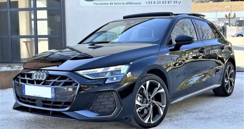 Audi A3 SPORTBACK 35 TFSI 150CH HYBRIDE S LINE S TRONIC 7, (Berline), NOIR, 8cv, 5 portes, mise en circulation le 01-03-2025, première main, garantie 12 mois (12 MOIS). 5 places, couleur intérieur : NOIR, longueur : 4,35 mètres, boîte de vitesse : automatique OPTIONS ET EQUIPEMENTS : Audio - Télécommunications - 10 Haut parleurs - Appel d'Assistance Localisé - Appel d'Urgence Localisé - Borne Wi-Fi - Commandes du système audio au volant - Commandes vocales - Fonction MP3 - Interface Media - Kit mains-libres Bluetooth - Prise USB - Radio - Radio numérique DAB - Système audio et info-divertissement Conduite - Aide au démarrage en côte - Arrêt et redémarrage auto. du moteur - Capteur de luminosité - Capteur de pluie - Commande du comportement dynamique - Démarrage sans clé - Limiteur de vitesse - Palettes changement vitesses au volant - Régulateur de vitesse adaptatif Extérieur - Becquet arrière - Caméra de recul - Diffuseur AR noir - Eclairage statique d'intersection - Feux arrière à LED - Feux de jour à LED - Feux de position à LED - Jantes Alu - Pare-brise acoustique - Phares Matrix LED+clignotants dyn AV/AR - Phares avant LED - Phares directionnels - Poignées ton carrosserie - Radar de stationnement AR - Radar de stationnement AV - Rampes de pavillon noires - Répétiteurs de clignotant dans rétro ext - Rétroviseurs dégivrants - Rétroviseurs ext. indexés à la marche AR - Rétroviseurs rabattables automatique - Système d'assistance au stationnement - Système d'éclairage intelligent à LED - Système de mesure de place disponible - Toit ouvrant panoramique en verre Intérieur - Accoudoir central AV avec rangement - Bacs de portes arrière - Bacs de portes avant - Banquette 60/40 - Banquette AR rabattable - Banquette arrière 3 places - Boite à gants fermée - Clim automatique - Compte tours - Ecran couleur - Ecran multifonction couleur - Filtre à Pollen - Fixations Isofix aux places arrières - Inserts de porte métal - Inserts de tableau de bord métal - Lampe de coffre - Lampes de lecture à l'arrière - Lampes de lecture à l'avant - Lunette AR dégivrante - Lunette arrière surteintée - Miroir de courtoisie conducteur éclairé - Miroir de courtoisie passager éclairé - Ordinateur de bord - Rétroviseur intérieur électrochrome - Siège conducteur réglable en hauteur - Siège passager réglable en hauteur - Sièges avant sport - Tablette cache bagages - Température extérieure - Verrouillage centralisé des portes - Verrouillage centralisé à distance - Vitres arrière surteintées - Vitres arrière électriques - Vitres avant électriques - Volant cuir - Volant multifonction - Volant sport Sécurité - ABS - AFIL - Aide au freinage d'urgence - Airbag conducteur - Airbag passager - Airbag passager déconnectable - Airbags latéraux avant - Airbags rideaux - Antidémarrage électronique - Antipatinage - Ceintures avant ajustables en hauteur - Contrôle élect. de la pression des pneus - EBD - ESP - Reconnaissance panneaux de signalisation Autres équipements et informations : - Noir Mythic métallisé - Audi phone box Kilométrage garanti. Référence annonce : 1004