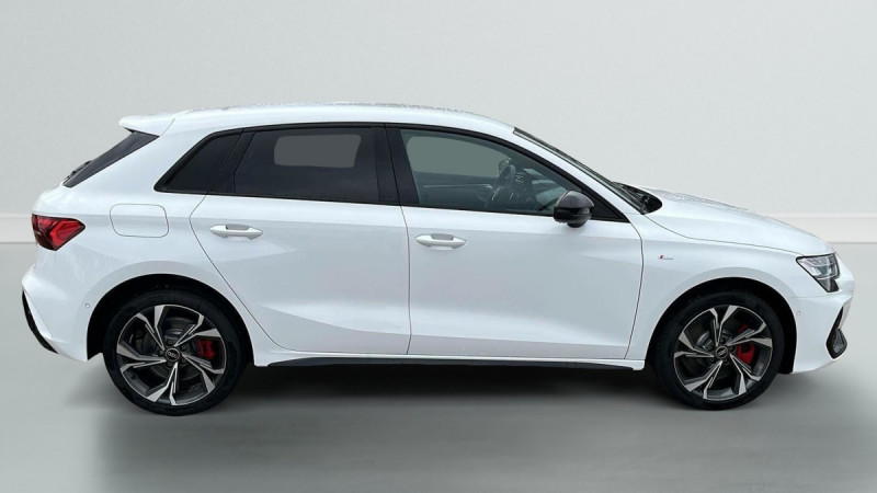 Commande de désactivation de l'airbag passager AV / Boîtiers de rétroviseurs extérieurs dans la couleur de la carrosserie / Boîtiers de rétroviseurs extérieurs en Noir / Détecteur de pluie et de luminosité / Volant cuir Sport multifonctions Plus 3 branches avec méplat et palettes de commande au volant / Vitrage Privacy : lunette AR, vitres de portières AR et vitres latérales AR surteintées / Audi Drive Select / Direction assistée électromécanique, asservie à la vitesse / Rétroviseur intérieur jour/nuit automatique sans encadrement / Kit réparation / Sécurité enfant électrique / Phares à LED avec clignotants dynamiques AR / Appui lombaire à 4 axes pour les sièges AV : réglages électrique, horizontal et vertical / Audi phone box light / Audi Hold Assist / Jantes en alliage léger 18'', 5 branches en Y, Gris Graphite, tournées brillantes 8,0 J x 18" 225/40 R18 / Clé confort incluant déverrouillage du coffre par capteur (sans safelock) - Accès et démarrage du véhicule mains libres (keyless access) - Déverrouillage du hayon via la touche "coffre" de la télécommande ou en simulant un mouvement de pied dans la zone à l?AR du véhicule (ouverture et fermeture). / Rétroviseurs extérieurs réglables, dégivrants, rabattables électriquement avec fonction rabat automatique / Accoudoir central coulissant en longueur, avec inclinaison réglable / Pare-brise à vitrage acoustique / MMI Radio Plus / Audi pre sense front / Dispositif de limitation de vitesse / Outillage de bord / Rappel de ceinture de sécurité avec dispositif AR de détection d'occupation du siège / Pack extérieur S line / 2 ports de charge USB AR / I-Size et Top Tether pour les sièges AR extérieurs / Pack intérieur S line / Airbags latéraux à l'AV et système d'airbags de tête / Sellerie tissu "Pouls" / Combinaison tissue pouls/en matière synthétiques avec estampage S / Pack Esthétique Noir Plus Reprend tous les éléments de Pack Esthétique Noir + anneaux Audi en noir sur l'AV et l'AR du véhicule et identification du modèle/moteur en noir : Pack Esthétique Noir Anneaux Audi en noir AV et AR du véhicule et identification modèle/moteur en noir / Applications décoratives en aluminium Spectre foncé (au tableau de bord) / Détection de signalisation routière par caméra / Pack assistance M Caméra de recul : Caméra de recul / Pack climatisation plus Sièges AV chauffants, Climatisation confort automatique 3 zones : Sièges AV chauffants Climatisation automatique Confort 3 zones / Pack connectivité Audi virtual cockpit plus, MMI Navigation plus, Audi Connect, Audi sound system, Audi Smartphone Interface : Audi Sound System Audi Virtual Cockpit Plus MMI Navigation plus avec MMI touch Audi connect Navigation & Infotainment Audi smartphone interface / Pack éclairage d'ambiance plus 30 couleurs diff. pour le profil de couleur personnalisé. l'éclairage de contour du tableau de bord, l'éclairage d'ambiance des portes AV et AR, l'éclairage de contour des portes AV et AR, le compartiment de rangement de la console centrale, l'éclairage des contours de la console centrale, porte-gobelets éclairés. en blanc :éclairage d'entrée sous les portes et des caves à pieds AV et AR - Miroirs de courtoisie éclairés, module de toit, à l'AV/AR, y les liseuses, Eclairage du compartiment : Miroirs de courtoisie éclairés 30 couleurs au choix pour un profil de couleur personnalisable Module de toit à LED, AV/AR y compris liseuses Eclairage du compartiment à bagages Eclairage des caves à pieds, à l'AV et à l'AR, en blanc Eclairage d'entrée sous les portes, à l'AV et à l'AR, en blanc Eclairage des contours de la console centrale Eclairage des contours du tableau de bord Eclairage d'ambiance des portes AV/AR Eclairage de contour des portes AV et AR Eclairage du compartiment de rangement de la console centrale Porte-gobelets éclairés / Etriers de freins rouges / Câble de recharge mode 3 pour recharge publique 11kW / Câble de recharge prise domestique / Contrôle de la traction (TCS) / Cléà fréquence radio (sans safelock) Verrouillage central "Keyless-Go" verrouille et déverrouille les portes, le capot de coffre et la trappe à carburant ; incluant ouverture/fermeture confort des vitres / Boîte automatique S Tronic 6 vitesses / Audi park assist plus avec caméra. L'aide au stationnement plus peut aider à entrer et à sortir des places de stationnement qui peuvent être limitées par des véhicules ou des objets. Le système prend le contrôle de la direction, de l'accélération, du freinage et du changement de vitesse / Pack intérieur sport combinaison tissu/matière synthétique Sièges sport à l'AV, Sellerie en combinaison tissu Pouls/similicuir avec estampagne S, Pédalier en acier inoxydable, Enjoliveurs de seuil de porte avec inserts en aluminium à l'AV, Dossier de banquette AR rabattable 60/40, Application de volant en style chrome, emblème S, poignées de volant en cuir perforé et couture contrastée, Pavillon en tissu noir, Accoudoir en matériaux synthétiques, Style aluminium à l'intérieur : Ciel de pavillon en tissu Noir Sièges AV Sport Pédalier et repose-pieds en acier inoxydable Style aluminium à l'intérieur Dossier de banquette AR rabattable 40:60 Enjoliveurs de seuil de porte avec inserts en aluminium à l'AV, éclairés, monogramme S Accoudoir de portière en matière synthétiques Sellerie tissu "Pouls" / Combinaison tissue pouls/en matière synthétiques avec estampage S Application de volant en style chrome, emblème S, poignées de volant en cuir perforé et couture contrastée / Système Start & Stop avec récupération d'énergie au freinage /