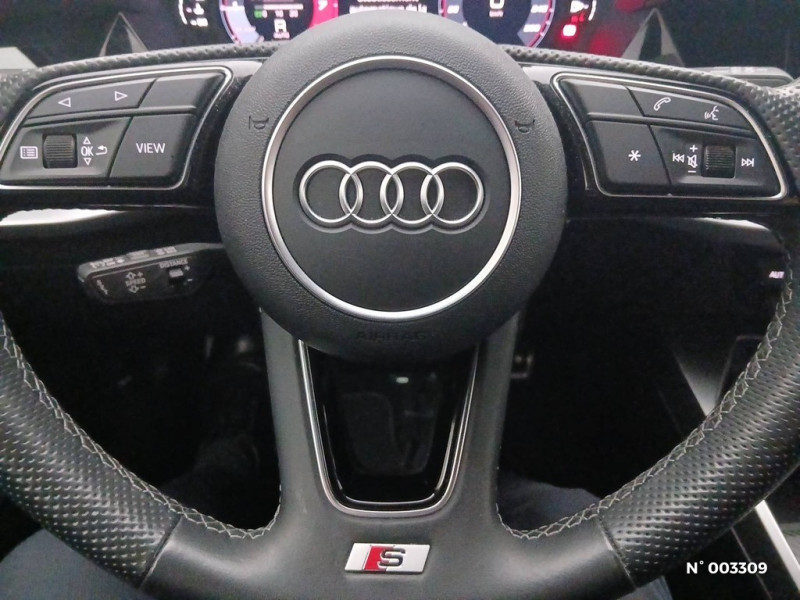 Système d'information du conducteur avec contrôle autocheck, fréquence radio, 2 seuils de vitesses programmables, affichage numérique de la vitesse, température extérieure, ordinateur de bord, contrôle de fermeture des portes et du capot de coffre / Climatisation automatique Confort, sans CFC, avec réglage asservi à la position du soleil et réglage de température gauche/droite séparé - régulation électronique de la température, de la quantité et de la répartition de l'air - mode recyclage de l'air ambiant automatique - filtration de l'air par détecteur de pollution - filtre antipollution et antipollen / Airbags de tête Sideguard / Baguettes de protection latérales couleur carrosserie / Châssis Sport, carrosserie surbaissée avec suspension et amortisseurs plus fermes. Véhicule rabaissé de 15mm par rapport à un chassis Sport / Patères (2) sur les montants de pavillon centraux / ESP: Programme électronique de stabilisation avec amplificateur hydraulique de freinage d'urgence, relie ABS, EBV, ASR et EDS / Outillage de bord / Vitres AV/AR électriques avec protection antipincement, fonction ouverture/fermeture par impulsion et ouverture/fermeture confort par le verrouillage centralisé / Régulateur de vitesse, maintient constante n'importe quelle vitesse à partir d'environ 30 km/h dans la mesure ou la puissance du moteur ou le frein moteur le permettent, commande par manette séparée / Rétroviseurs extérieurs, avec rappel de clignotant à diodes, réglables électriquement, boîtiers dans la couleur de carrosserie, et mirroir convexe côté passager / Montant de pavillon B noir brillant / Système Start & Stop avec récupération d'énergie au freinage / EDS / TMS : Tire mobility system / Crochets pour sacs à gauche et à droite dans le coffre / Boîte à gants grand volume côté passager AV éclairée / Tableau de bord capitonné, monochrome ou bicolore / Protection antidémarrage intégrée à la commande du moteur et activation auto par clé de contact / Audi Backguard Grâce à la forme particulière des sièges, la partie supérieure du corps est mieux réceptionnée et la tête soutenue plus tôt en cas de collision AR; assure une meilleure protection et réduit les risques de traumatisme cervical / Poignées de maintien (4), encastrées dans le pavillon, rabattables avec amortisseurs / Système de ventilation : 4 diffuseurs ronds style aluminium sur le tableau de bord / Tapis complémentaires AV en velours assortis à la couleur de la moquette / Triangle de présignalisation dans le coffre, sous le plancher de chargement / Jantes en aluminium coulé style 5 branches, polies, 7,5Jx17", avec pneus 225/45 R17 / Rétroviseurs extérieurs escamotables électriquement, dégivrants de deux côtés, et buses de lave-glaces dégivrantes / Pare-soleil pour lunette AR rabattable manuellement / Vérins pneumatiques sur le capot moteur et le capot de coffre / Repose-pied à côté de la pédale d'embrayage / Airbags grand volume conducteur et passager AV, airbags latéraux AV intégrés aux dossiers des sièges / Essuie-glace AV 2 vitesses, intermittence réglable à 4 positions asservie à la vitesse, commande de balayage coup par coup et de lavage-balayage automatique, balayage complémentaire automatique environ 5 secondes après le dernier balayage / Phares halogènes à surfaces lisses sous vitre transparente, feux diurnes, réglage électrique du site des phares et commande de feux de stationnement / Sortie d'échappement visible, double sur Diesel et sur versions essence à partir de 160 ch / Baguettes de seuil de portes avec inserts en aluminium et inscription Audi / Sièges AV sport avec bourrelets latéraux fortement marqués assurant un meillleur maintien dans les virages / Instrumentation avec éclairage réglable : indicateur de niveau d'huile moteur et d'eau de refroidiss ement, compte-tours avec montre digitale et dateur, tachymètre à cadran non proportionnel, compteur kilométrique et totalisateur kilométrique journalier, jauge de carburant, témoins de contrôle, indicateur d'intervalle de révisions / Tapis complémentaires AR / Détecteur d'occupation du siège conducteur / Sellerie en tissu Dynamisme / Préparation Audi Exclusive pour iPod / Téléphone : préparation pour téléphone 2W bi-bande (D et E), commande sur volant multifonction, main libre, interface Bluetooth / Eclairage blanc, réglable, sur les instruments; éclairage rouge sur les commandes et le tableau de la climatisation / Détecteur d'occupation des sièges AV / Console centrale avec commande du chauffage et vide-poches / Soft Touch : Assistance électrique permettant un déverrouillage sans effort du capot de coffre / Réservoir de carburant situé dans une zone protégée / Autoradio Concert avec lecteur CD en façade et compatibilité MP3, prise AUX-IN, mémoire pour 12 stations, réception FM et AM (MO), clavier à touches douces et écran trois lignes, volume sonore asservi à la vitesse, phases diversifiées, 10 HP actifs incluant HP central et système Bass Reflex, puissance totale 140W / Système d'information du conducteur avec contrôle autocheck, fréquence radio, 2 seuils de vitesses programmables, affichage numérique de la vitesse, température extérieure, ordinateur de bord, contrôle de fermeture des portes et du capot de coffre, indicateur de changement de vitesse / Témoins de contrôle pour : Airbag, ABS, ESP, ASR, frein à main tiré, électronique de l'EDS, alternat eur, éclairage, feux de route, clignotants, électronique moteur, pression d'huile, réserve de carburant, niveau et température d'eau, indicateur d'intervalle de révisions, système de préchauffage sur TDI. Autres témoins de contrôle sur les différentes commandes : projecteurs antibrouillard/feu AR de brouillard, feux de détresse et dégivrage de lunette AR / Direction électromécanique à assistance variable / Phares antibrouillard ellipsoïdaux intégrés au bouclier AV / ASR 