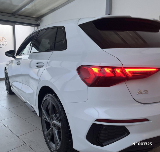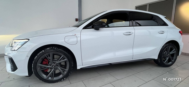 MMI Navigation plus avec MMI touch / Pack Esthétique Noir / Pare-chocs PHEV Competition / MMI Radio Plus / Pare-brise à vitrage acoustique / Phares à LED avec clignotants dynamiques AR / Rétroviseur intérieur jour/nuit automatique sans encadrement / Rappel de ceinture de sécurité avec dispositif AR de détection d'occupation du siège / Régulateur de vitesse plus limiteur de vitesse / Sécurité enfant électrique / Sellerie tissu "Pouls" / Combinaison tissue pouls/en matière synthétiques avec estampage S / Seuils de portes AV avec insert en aluminium et illuminé / Système Start & Stop avec récupération d'énergie au freinage / Sièges AV réglables manuellement : hauteur d'assise, positionnement en longueur, inclinaison du dossier, hauteur des appuie-tête et hauteur des ceintures / Tapis de sol, AV et AR, en velours, noir avec surpiqûres / Pédalier et repose-pieds en acier inoxydable / Trousse de secours, triangle de présignalisation et 2 vestes de sécurité / Volant cuir multifonctions Plus 3 branches avec palettes de commande au volant / Vitrage Privacy : lunette AR, vitres de portières AR et vitres latérales AR surteintées / Logo S / Frein à main en cuir synthétique / Accoudoir central coulissant en longueur, avec inclinaison réglable / 2 ports de charge USB AR / Alerte de sortie de voie / Airbags latéraux AV et système d'airbags de tête / Accoudoir de portière en matière synthétiques / Audi Connect navigation et divertissement plus / Applications décoratives en aluminium Spectre foncé / Audi Drive Select / Audi park assist : cherche à l'aide de capteurs à ultrasons les places de stationnement (bataille et créneau) appropriées le long de la chaussée, calcule le créneau idéal et gère le braquage automatiquement / Audi virtual cockpit : combiné d'instruments entièrement numérique de 10,25'' / Audi sound system : 10 HP incluant un HP central et un subwoofer, amplificateur à 6 canaux avec une puissance totale de 180 watts / Audi smartphone interface (Apple CarPlay ou Google Android Auto) / Audi pre sense front / Détecteur de pluie et de luminosité / Direction assistée électromécanique, asservie à la vitesse / Câbles de recharge pour téléphone portable compatibles Apple et Android / Commande de désactivation de l'airbag passager AV / Ciel de pavillon en tissu noir / Cléà fréquence radio (sans safelock) / Câble de recharge HH Type E (8 A) / Dispositif de limitation de vitesse / Eclairage intérieur Module de pavillon à l'AV et à l'AR, incluant spots de lecture, Boîte à gants éclairée, Éclairage de coffre à droite, / Extérieur Sport / Etriers de freins rouges / Ecrous de roues antivol / Interface Bluetooth / Kit réparation / Jantes en alliage léger 18'', 5 branches doubles en V (style S), Gris Graphite 8,0J x 18", pneus 225/40 R18 / I-Size et Top Tether pour les sièges AR extérieurs / Outillage de bord