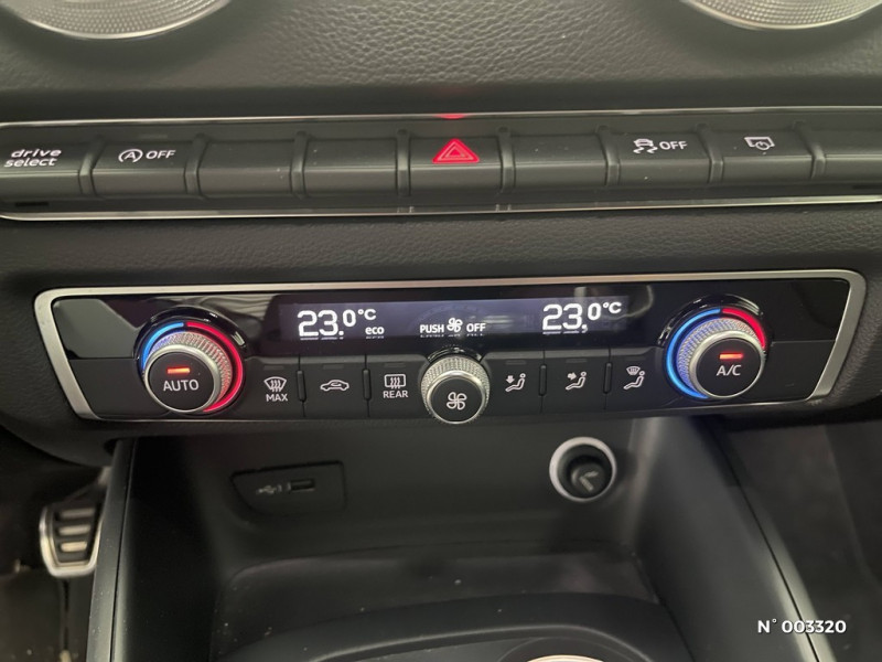 Airbags grand volume conducteur et passager AV, airbags latéraux AV intégrés aux dossiers des sièges / Détecteur de luminosité, incluant allumage automatique des phares et fonction Coming Home/Leaving ho me, avec rétroviseur intérieur jour/nuit automatique et détecteur de pluie / Protection anticollision latérale dans les portières, constituée de profilés rigides en aluminium / Pommeau et soufflet de levier de vitesse en cuir. Pommeau avec bague décoratif style aluminium / Applications décoratives platine micrométallique / Volant Sport multifonction en cuir style 3 branches, incluant pommeau/soufflet de levier de vitesse et poignée de frein à main en cuir; commande de boîte de vitesses sur modèles séquentiels S tronic / Jantes en aluminium coulé style 5 branches en Etoile, 7.5Jx17", pneus 225/45 R17 / Audi Hill Hold Assist (Assistant de démarrage en pente) / Montant de pavillon B noir brillant / Ecrous antivol / Sideguard : airbags de tête / Essuie-glace AR avec commande de lavage-balayage automatique / Vide-poches sous le siège passager AV, verrouillables, sur les habillages des portières et des côtés ainsi que sur la console centrale / Porte-boissons AV avec jalousie, double, sur le tunnel central / Ceintures de sécurité 3 points à enrouleur et limiteur de tension à toutes les places et prétensionneurs pyrotechniques à l'AV / Monogrammes TTS en noir brillant sur la calandre et le capot de coffre / Jantes en aluminium coulé style 5 branches, polies, 7.5Jx17" avec pneus 225/45 R17 / Cache-bagages / Commande des feux pour feux de stationnemment, feux de route, projecteurs antibrouillard et feux AR de brouillard / Vitres athermiques teintées vertes et pare-brise en verre feuilleté / Appuie-têtes à toutes les places, actifs à l' AV, réglables à l'AV et à l'AR / 3ème feu stop surélevé sur la lunette AR / Prise de courant à l'AV, avec vide-poches sur la console centrale / Trousse à pharmacie dans le vide-poches du siège passager AV / Freins à disques AV et AR, ventilés à l'AV / BAS : amplificateur hydraulique de freinage d' urgence / Feux AR rouges, avec auréole de lumière continue en tube de fibre optique éclairés par LED, feu de recul blanc avec feu AR de brouillard / Témoins de contrôle pour : Airbag, ABS, ESP, ASR, frein à main tiré, électronique de l'EDS, alternat eur, éclairage, feux de route, clignotants, électronique moteur, pression d'huile, réserve de carburant, niveau et température d'eau, indicateur d'intervalle de révisions, système de préchauffage sur TDI. Autres témoins de contrôle sur les différentes commandes : projecteurs antibrouillard/feu AR de brouillard, feux de détresse et dégivrage de lunette AR / Direction électromécanique à assistance variable / Sièges AV avec positions AV/AR et inclinaison du dossier réglables manuellement; appui-têtes réglabl es et ceintures réglables en hauteur / Singleframe, encadrement décoratif chromé sur la calandre avec anneaux Audi anodisés au centre / Châssis Sport, carrosserie surbaissée avec suspension et amortisseurs plus fermes. Véhicule rabaissé de 15mm par rapport à un chassis Sport / Patères (2) sur les montants de pavillon centraux / ESP: Programme électronique de stabilisation avec amplificateur hydraulique de freinage d'urgence, relie ABS, EBV, ASR et EDS / Outillage de bord / Vitres AV/AR électriques avec protection antipincement, fonction ouverture/fermeture par impulsion et ouverture/fermeture confort par le verrouillage centralisé / Lunette AR dégivrante avec minuterie, dégivrage complémentaire en fin de balayage de l'essuie-glace / Moquette / Site des phares réglable manuellement / Rétroviseur intérieur jour/nuit dans la couleur du ciel de pavillon / Catadioptres de portières passifs / Accoudoir central AV avec vide-poches relevable et inclinaison réglable / Oeilletons de fixation dans le coffre / Colonne de direction de sécurité complète le potentiel de protection des ceintures et des airbags / Pare-soleil gauche/droite rabattables et pivotants avec miroir de courtoisie occutable, 3 ème pare-soleil rabattable au-dessus du rétroviseurs intérieur / Sellerie en tissu Dynamique / Pare-chocs couleur carrosserie / Poignées de portes couleur carrosserie / Airbags (conducteur, passager avant, airbag latéral) : airbags grand volume côté conducteur et passa Airbags (conducteur, passager avant, airbag latéral) : airbags grand volume côté conducteur et passager avant, airbags latéraux avant intégrés aux dossiers de sièges / Indicateur de température extérieure / Avertisseur sonore 2 tons / Système d'information du conducteur avec contrôle autocheck, fréquence radio, 2 seuils de vitesses programmables, affichage numérique de la vitesse, température extérieure, ordinateur de bord, contrôle de fermeture des portes et du capot de coffre / Climatisation automatique Confort, sans CFC, avec réglage asservi à la position du soleil et réglage de température gauche/droite séparé - régulation électronique de la température, de la quantité et de la répartition de l'air - mode recyclage de l'air ambiant automatique - filtration de l'air par détecteur de pollution - filtre antipollution et antipollen / Détecteur d'occupation du siège conducteur / Airbags de tête Sideguard / Baguettes de protection latérales couleur carrosserie / Tapis complémentaires AV en velours assortis à la couleur de la moquette / Essuie-glace AV 2 vitesses, intermittence réglable à 4 positions asservie à la vitesse, commande de balayage coup par coup et de lavage-balayage automatique, balayage complémentaire automatique environ 5 secondes après le dernier balayage / Phares halogènes à surfaces lisses sous vitre transparente, feux diurnes, réglage électrique du site des phares et commande de feux de stationnement / Sortie d'échappement visible, double sur Diesel et sur versions essence à partir de 160 ch / Baguettes de seuil 