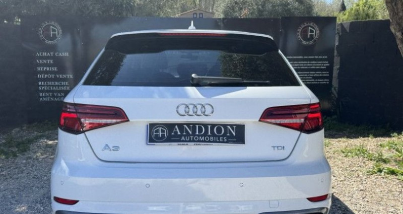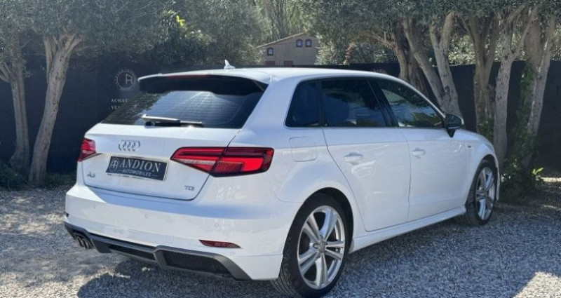 Audi A3 SPORTBACK 2.0 TDI 150CH FAP S LINE S TRONIC 6, (Berline), BLANC, 8cv, 5 portes, mise en circulation le 16-12-2016, garantie 12 mois (12 MOIS). 5 places, couleur intérieur : NOIR, longueur : 4,31 mètres, boîte de vitesse : automatique OPTIONS ET EQUIPEMENTS : Audio - Télécommunications - 8 Haut parleurs - Kit mains-libres Bluetooth - Pré-équipement Kit Bluetooth - Radio - Volume automatique de la radio Conduite - Capteur de luminosité - Capteur de pluie - Régulateur de vitesse Extérieur - Becquet arrière - Echappement à double sortie - Feux arrière à LED - Feux de freinage d'urgence - Feux de jour à LED - JA Audi Sport 5 branches Wing titane 19 - Jantes Alu - Phares bi-xénon - Phares à LED - Répétiteurs de clignotant dans rétro ext - Rétroviseurs électriques - Sortie d'échappement chromée Intérieur - Banquette AR rabattable - Clim automatique bi-zones - Ecran multifonction couleur - Filets de coffre - Fixations Isofix aux places arrières - Inserts de porte métal - Ordinateur de bord - Sièges Sport S - Sièges avant sport - Vitres avant électriques - Volant réglable en profondeur et hauteur - Volant sport - Volant, pommeau en cuir Audi exclusive Sécurité - ABS - Aide au freinage d'urgence - Airbag genoux - Airbag passager - Airbags latéraux avant - Contrôle de freinage en courbe - Contrôle élect. de la pression des pneus - ESP Autres équipements et informations : - Volant - pommeau en cuir Audi exclusive Kilométrage garanti. Frais de mise a la route 389,00€ Reprise possible sur : golf, serie 1, Classe A, Polo, seat leon, 308, Megane, Tous nos véhicules sont visibles sur parc, prêts à la vente sans délai, révisés et sans frais supplémentaires à prévoir, avec contrôle technique valide. Pour l’estimation de votre reprise, merci de nous fournir les informations suivantes : Modèle, année, finition, motorisation, kilométrage. Garantie disponible: De 12 à 48 mois. Financement : De 12 à 84 mois, sous réserve d’acceptation de votre dossier. Attention : Un crédit vous engage et doit être remboursé. Vérifiez vos capacités de remboursement avant de vous engager. Livraison : Partout en France métropolitaine, hors DOM-TOM et Corse. Services gratuit : Récupération à la gare ou à l’aéroport. Référence annonce : 585