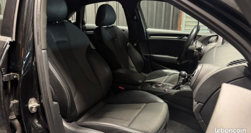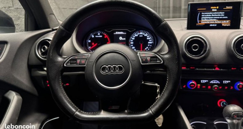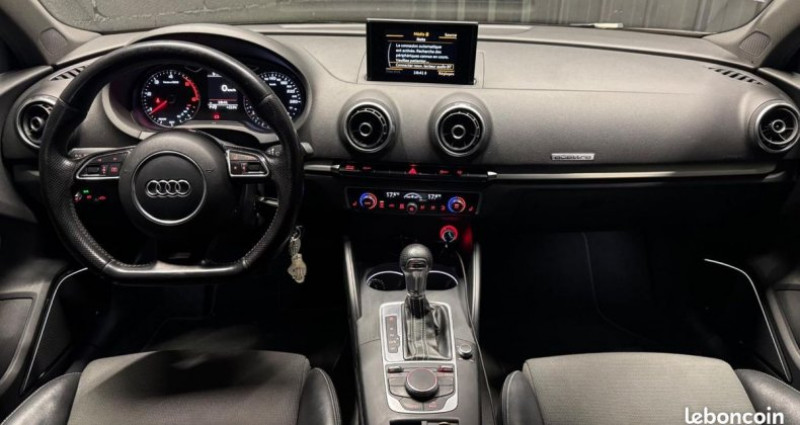 Audi A3 2.0 TDI 185 S-LINE QUATTRO S-TRONIC BVA berline, noir, 10 cv, 4 portes, première mise en circulation le 15/02/2016, garantie 6 mois. - NOS SERVICES ET PRESTATIONS COMPLÉMENTAIRES - - Visite virtuelle : avant de vous déplacer, visualisez votre futur véhicule sous toutes ses coutures . Contactez-nous pour en voir plus ! - Extension de garantie jusqu'à 60 mois. - Solutions de Financement de 12 à 84 mois. - Livraison dans toute la France métropolitaine (sur devis). - Reprise possible de votre ancien véhicule. - Les informations délivrées par cette annonce sont non contractuelles et données à titre indicatif. Packs disponibles (véhicules éligibles au Label) - Pack Clés en Main - 691 € TTC(¹)(²) Démarches (hors carte grise) | 1/4 de carburant | Nettoyage First | Garantie 6 mois | Label inclus? - Pack Sérénité - 891 € TTC(¹)(²) Démarches (hors carte grise) | 1/2 de carburant | Nettoyage Confort | Garantie 12 mois | Label inclus? - Pack Prestige - 1.091 € TTC(¹)(²) Démarches (hors carte grise) | Plein complet | Nettoyage Prestige | Garantie 12 mois | Label inclus? + Surprise du chef - (¹) Les véhicules non éligibles au Label bénéficient de tarifs préférentiels. Veuillez contacter votre conseiller pour obtenir les conditions tarifaires applicables. (²) Tarif pour les véhicules deux roues motrices dont la valeur de vente est inférieure à 60 000 € TTC. - Véhicule visible sur rendez vous 5 places OPTIONS ET ÉQUIPEMENTS : Audio - Télécommunications : - Disque dur multimédia - Info trafic - Bluetooth - Prise audio usb - commandes vocales - prise audio auxiliaire Conduite : - Boîte de vitesse séquentielle - Choix du mode de conduite - Différentiel autobloquant - Frein de parking auto - Stop & Start - détecteur de pluie - palettes au volant - sièges sport - suspension sport Extérieur : - Echappement à double sortie - Pack extérieur S line - Phares AV de jour à LED - jantes : aluminium - phares à LED - rétroviseurs rabattables - système d'aide au stationnement Intérieur : - Eclairage d'ambiance - Filet de rangement dans le coffre - Pédalier sport - Sièges AV électriques - Porte gobelet avant - accoudoir central - banquette 1/3 - 2/3 - climatisation : automatique - climatisation multi zone - fermeture centralisée - non fumeur - ordinateur de bord - pare-brise chauffant - sièges chauffants - vitres surteintées - vitres électriques - volant réglable hauteur - volant réglable profondeur - volant sport Pack : - Boîte de vitesse automatique - Mode Eco - Mode confort - Mode sport - 4 roues motrices - nombre de rapports : 6 vitesses - volant multifonctions - volant réglable Sellerie : - Sellerie semi-cuir Sécurité : - Airbags - Alerte franchissement de lignes - Contrôle de pression des pneus - ABS - Aide au demarrage en pente - ESP - aide au freinage d'urgence - fixations ISOFIX Autres équipements et informations : - Double des clés - Factures d'entretien - Mode normal - Classe Crit'air : 2 - Puissance kilowatt : 135 kw - USB - dimension des jantes : 18 pouces - puissance réelle : 184 ch - émission CO2 : 129 g/km - état : excellent Référence annonce : d148482