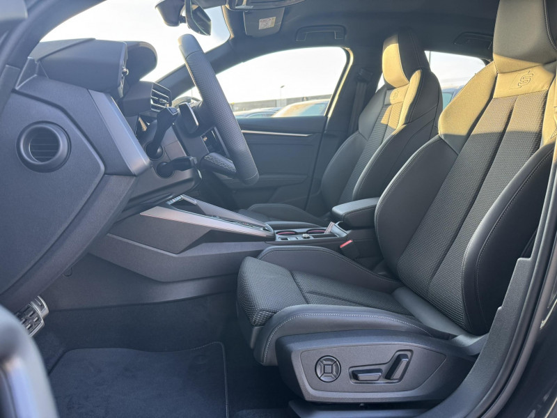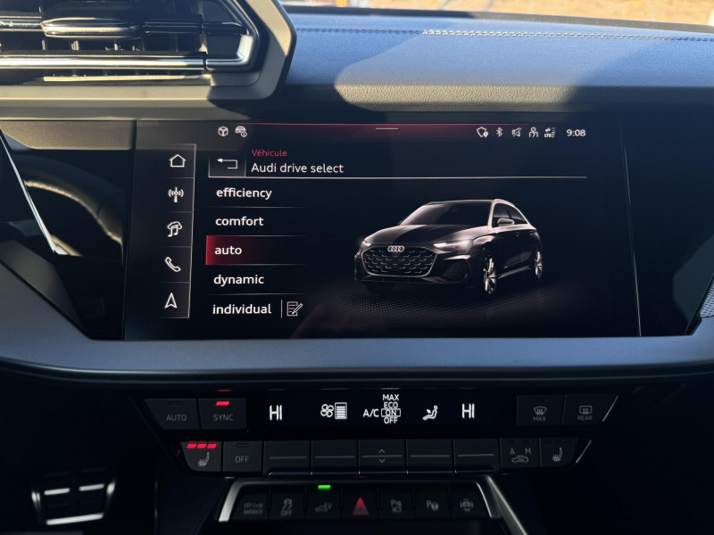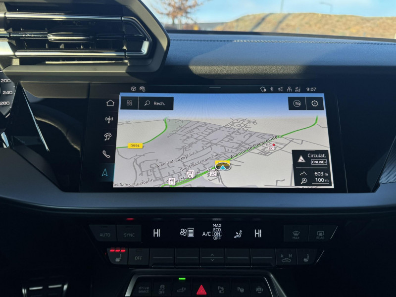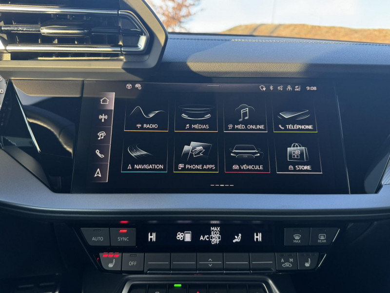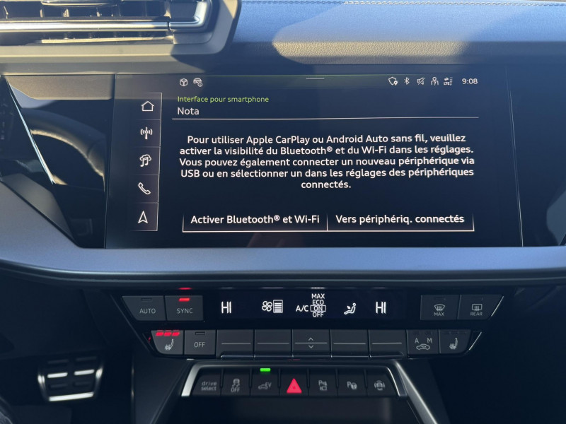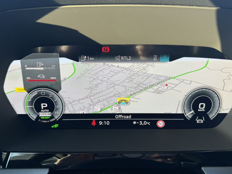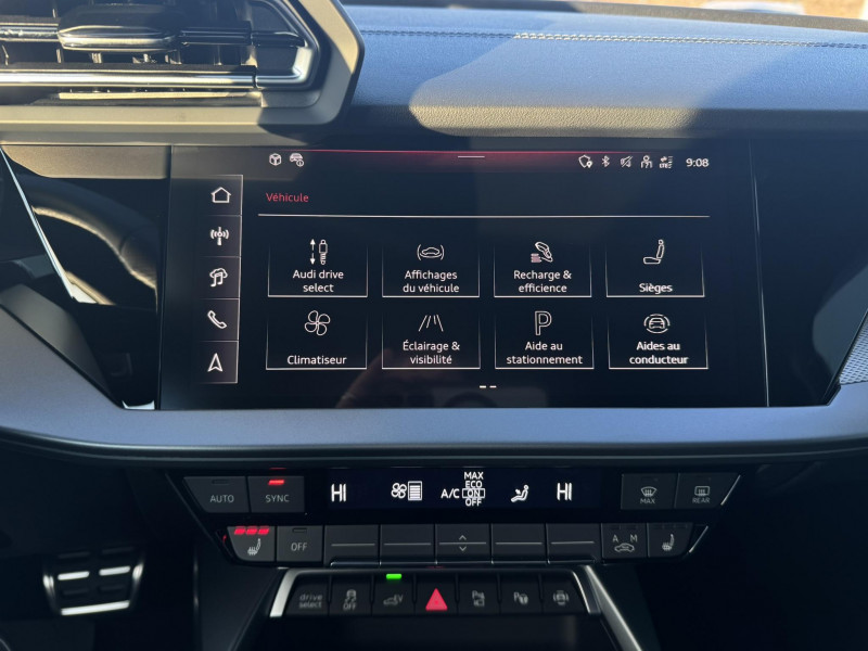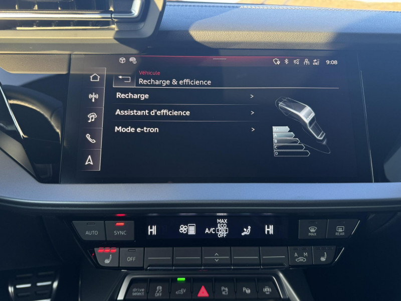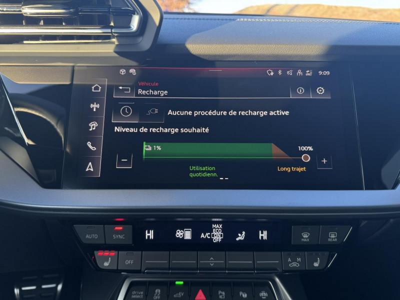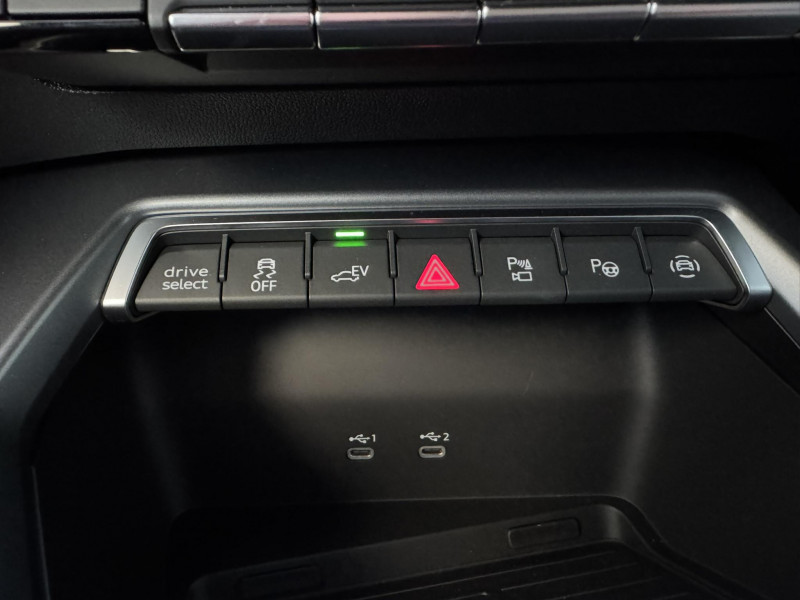 Applications décoratives en aluminium Spectre foncé (au tableau de bord) / Applications décoratives en aluminium Spectre foncé (au tableau de bord) / Audi connect Navigation & Infotainment / Audi park assist : cherche à l'aide de capteurs à ultrasons les places de stationnement (bataille et créneau) appropriées le long de la chaussée, calcule le créneau idéal et gère le braquage automatiquement / Audi Virtual Cockpit Plus / Jantes en alliage léger 17'' style "wing" à 5 bras 7,0 J x 17", pneus 205/55 R17 / MMI Navigation plus avec MMI touch / Pack assistance M Caméra de recul / Pack assistance M Caméra de recul / Pack Brillance Extérieur Baguette sur les entourages de vitre en aluminium anodisé, Rrevêtement noir brillant sur les montants de pavillon centraux et AR / Pack Brillance Extérieur Baguette sur les entourages de vitre en aluminium anodisé, Rrevêtement noir brillant sur les montants de pavillon centraux et AR / Pack connectivité Audi virtual cockpit plus, MMI Navigation plus, Audi Connect, Audi sound system, Audi Smartphone Interface / Pack èclairage d'ambiance - Module de toit, à l'AV et à l'AR, y compris les liseuses - Miroirs de courtoisie éclairés - Eclairage des caves à pieds, à l'AV et à l'AR - Eclairage du compartiment à bagage / Phares à LED avec clignotants dynamiques AR / Phares à LED avec clignotants dynamiques AR / Rétroviseur intérieur jour/nuit automatique sans encadrement / Rétroviseurs extérieurs réglables, dégivrants, rabattables électriquement avec fonction rabat automatique / Style aluminium à l'intérieur / Volant cuir multifonctions Plus 3 branches avec palettes de commande au volant / 2 ports de charge USB AR / Accoudoir central coulissant en longueur, avec inclinaison réglable / Accoudoir de portière en matériaux synthétiques / Airbags latéraux à l'AV et système d'airbags de tête / Appuis lombaires à 4 axes pour les sièges AV / Audi Connect Appel d'urgence & Service / Audi Drive Select / Audi phone box light / Audi pre sense front / Audi smartphone interface / Audi Sound System / Boîtiers de rétroviseurs extérieurs dans la couleur de la carrosserie / Ciel de pavillon en tissu Gris Acier / Clé confort incluant déverrouillage du coffre par capteur (sans safelock) / Clé confort incluant déverrouillage du coffre par capteur (sans safelock) / Cléà fréquence radio (sans safelock) / Commande de désactivation de l'airbag passager AV / Câble de recharge mode 3 pour recharge publique 11kW / Câble de recharge type E/F (8A) / Câbles de recharge pour téléphone portable compatibles Apple et Android / Direction assistée électromécanique, asservie à la vitesse / Dispositif de limitation de vitesse / Dossier de banquette AR, rabattable en trois parties / Détecteur de pluie et de luminosité / Détection de signalisation routière par caméra / Ecrous de roues antivol / I-Size et Top Tether pour les sièges AR extérieurs / Kit réparation / MMI Radio Plus / Outillage de bord / Pare-brise à vitrage acoustique / Rappel de ceinture de sécurité avec dispositif AR de détection d'occupation du siège / Sièges AV réglables manuellement Hauteur et positionnement en longueur, Inclinaison de dossier, Hauteur des appuie-tête et des ceintures / Sièges standard à l'AV / Système de recharge e-tron compact / Système Start & Stop avec récupération d'énergie au freinage / Sécurité enfant électrique / Tapis de sol AV/AR / Trousse de secours, triangle de présignalisation et 2 vestes de sécurité