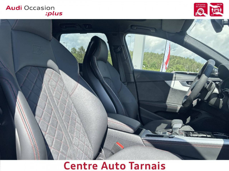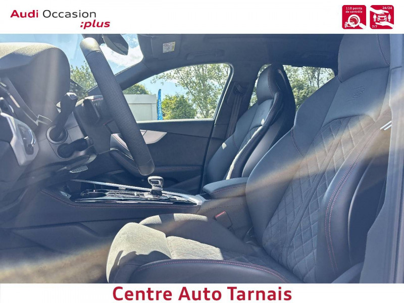 Applications décoratives en Aluminium brossé mat / Audi Virtual cockpit plus combiné d'instruments entièrement numérique de 12,3" en résolution Full HD, affichage flexible et fonctionnel des informations en fonction des besoins du conducteur, intégration des fonctionnalités MMI dans le combiné d'instruments, affichage de la carte de navigation en modèle de terrain 3D sur l'écran couleur, incluant recommandation de repos, possibilité d'affichage en mode Dynamique, Sport ou Classique haute résolution / Blocs de feux AR à LED avec clignotants séquentiels Clignotants, feux stop, feux AR, feux de recul et feux de plaque arrière à LED / Ceintures de sécurité, automatiques à 3 points pour tous les sièges, contrôle de port de ceinture AV / Clé confort incluant déverrouillage du coffre par capteur (sans Safelock) - Accès et démarrage du véhicule mains libres (keyless access) - Déverrouillage du hayon via la touche coffre de la télécommande - Inclut le déverrouillage du coffre par capteur à l'aide du pied - Ouverture et fermeture du hayon assistéélectriquement / Frein de stationnement électromécanique / Jantes en aluminium coulé Audi Sport 5 branches trapézoïdal, finition titane mat, polies brillant Dimension : 8,0 J x 18" Pneus : 245/40 R 18 / Moulures de seuil avec insert en aluminium AV, éclairées, avec inscription S / Navigation MMI plus avec MMI touch / Pack Assistance Ville - Audi side assist : assistant de changement de voie par affichage LED dans le rétroviseur extérieur correspondant - Audi pre sense AR incluant Audi pre sense basic - Audi parking system plus : aide au stationnement AV et AR - Caméra de recul - Avertisseur de sortie du véhicule - Assistant de sortie de stationnement perpendiculaire en marche AR / Pack Eclairage d'Ambiance plus 3 profils de couleur prédéfinis ; un profil de couleur supplémentaire, interactif et personnalisé. 30 couleurs sont disponibles au choix pour un profil de couleur personnalisé. Les adaptations de teintes s'appliquent aux éclairages de contour et d'ambiance : . Éclairage des seuils de portières AR (blanc) . Porte-boissons à l'AV (multicolore) . Éclairage d'ambiance des portières AV/AR (multicolore) . Éclairage de contour des portières AV/AR (multicolore) / Pack Esthétique Noir Apporte une touche noire à l'extérieur, au niveau de l'Audi singleframe et des parechocs AV et AR. La version varie selon le modèle et l'équipement / Pack Rangement et Coffre Inclut les éléments suivants dans l'habitacle : Filet de rangement au dos des sièges AV . Porte-gobelets dans l'accoudoir central à l'AR . Vide-poches côté conducteur . Boîte à gants verrouillable Dans le coffre: Filet de coffre, filet dans le logement gauche, sangle de serrage à droite / Pack Side Assist Assistant de changement de voie de circulation (dans les limites du système) via affichage par LED dans le rétroviseur extérieur correspondant (à partir d'environ 15 km/h et jusqu'à 250 km/h) - Audi pre sense AR incluant Audi pre sense basic : un système détecte les collisions potentielles à l'AR et à titre préventif tend les ceintures, ferme les vitres (et le toit ouvrant si installé) et allume les feux de détresse / Phares Matrix LED, feux AR à LED et lave-phares / Projecteurs à LED Feux de croisement, feux de route, feux diurnes et feux de position à LED,clignotants à ampoules, avec éclairage tout-temps / Préparation pour crochet d'attelage / Préparation pour l'activation de la fonction de navigation / Rétroviseur intérieur sans encadrement jour/nuit automatique / Rétroviseurs extérieurs couleur carrosserie avec clignotants à LED intégrés / Rétroviseurs extérieurs réglables et escamotables électriquement, jour/nuit automatique, dégivrants des deux côtés et buses de lave-glaces dégivrantes / Volant Sport contour en cuir style 3 branches à méplat avec multifonctions plus Avec emblème S et surpiqûres contrastées spécifiques S / 8 HP passifs / Accoudoir central confort AV avec inclinaison réglable et coulissant en longueur / Airbags latéraux à l'AV et système d'airbags de tête / Antipatinage ASR pour une motricité optimale, empêche le patinage des roues motrices / Appel d'urgence et service Audi connect avec commande du véhicule / Appui lombaire à 4 axes pour les sièges AV: réglages électrique, horizontal et vertical / Audi Connect avec carte SIM intégrée (e-SIM) et licence d'utilisation pour 3 ans / Audi Drive Select / Audi Hold Assist / Audi Park Assist / Audi Parking System Plus / Audi Phone Box avec charge du téléphone par induction (standard Qi) / Audi Pre Sense city / Audi smartphone interface (Apple CarPlay ou Google Android Auto) / Audi Sound System 10 HP incluant 1 HP central et 1 subwoofer, amplificateur à 6 canaux avec une puissance totale de 180 watts / Avertissement de sortie de voie / Blocage électronique de différentiel EDS / Ciel de pavillon en tissu noir / Clé Audi connect (Smartkey) Votre smartphone se transforme en clé numérique pour votre véhicule. Permet de gérer les fonctionnalités suivantes : - Verrouillage/Déverrouillage du véhicule : en positionnant le téléphone à proximité de la poignée de portière - Démarrage du moteur : en plaçant l'appareil Android sur le support universel pour téléphone portable situé sur l'accoudoir central à l'AV - La clé Audi connect fonctionne avec la technologie Near Field Communication (NFC) - Possibilité d'attribuer jusqu'à 5 clés / Coffre à ouverture et fermeture électriques / Colonne de direction de sécurité / Commande de désactivation de l'airbag passager AV / Contrôle électronique de stabilisation (ESC) / Câbles de recharge pour téléphone portable, compatibles iPhone et Android / Diffuseur avec finition symétrique des sorties d'échappement de style en chrome à gauche et à droite / Direction assistée électromécanique / Dispositif anti-erreur de carburant / Dossier de banquette AR r