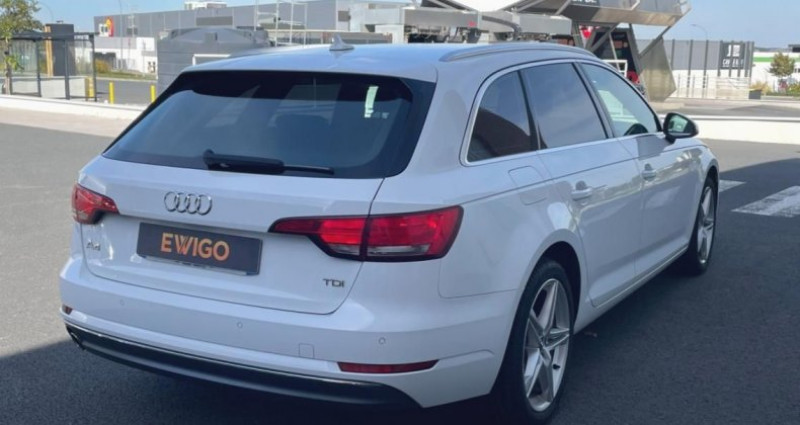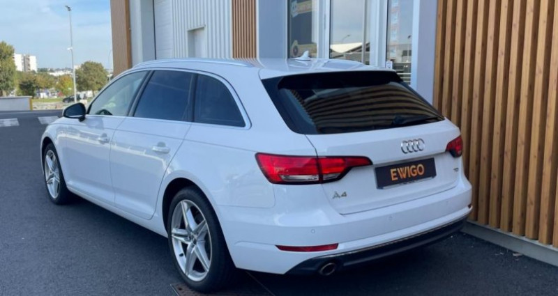 Audi A4 AVANT 2.0 TDI 150 S-LINE S-TRONIC BVA VIRTUAL COCKPIT / HAYON ELECTRIQUE break, blanc, 8 cv, 5 portes, première mise en circulation le 28/03/2017. - NOS SERVICES ET PRESTATIONS COMPLÉMENTAIRES - - Visite virtuelle : avant de vous déplacer, visualisez votre futur véhicule sous toutes ses coutures . Contactez-nous pour en voir plus ! - Extension de garantie jusqu'à 60 mois. - Solutions de Financement de 12 à 84 mois. - Livraison dans toute la France métropolitaine (sur devis). - Reprise possible de votre ancien véhicule. - Les informations délivrées par cette annonce sont non contractuelles et données à titre indicatif. Packs disponibles (véhicules éligibles au Label) - Pack Clés en Main - 691 € TTC(¹)(²) Démarches (hors carte grise) | 1/4 de carburant | Nettoyage First | Garantie 6 mois | Label inclus? - Pack Sérénité - 891 € TTC(¹)(²) Démarches (hors carte grise) | 1/2 de carburant | Nettoyage Confort | Garantie 12 mois | Label inclus? - Pack Prestige - 1.091 € TTC(¹)(²) Démarches (hors carte grise) | Plein complet | Nettoyage Prestige | Garantie 12 mois | Label inclus? + Surprise du chef - (¹) Les véhicules non éligibles au Label bénéficient de tarifs préférentiels. Veuillez contacter votre conseiller pour obtenir les conditions tarifaires applicables. (²) Tarif pour les véhicules deux roues motrices dont la valeur de vente est inférieure à 60 000 € TTC. - Véhicule visible sur rendez vous 5 places OPTIONS ET ÉQUIPEMENTS : Audio - Télécommunications : - Android auto - Apple CARPLAY - Reconnaissance vocale - Bluetooth - GPS - Prise audio usb - prise audio auxiliaire - radio numérique - système de navigation Conduite : - Choix du mode de conduite - Détecteur de pluie - Essuies glaces automatiques - Frein de parking auto - Frein de parking électrique - Front assist - Accès et démarrage sans clé - Stop & Start - démarrage sans clé - détecteur de pluie - limiteur de vitesse - palettes au volant Extérieur : - Aide au parking AR - Capteurs d'aide au stationnement arrière - Capteurs d'aide au stationnement avant - Ceinture de vitrage chromée - Hayon électrique - Pack extérieur S line - Phares AV de jour à LED - Sortie d'échappement chromée - jantes : aluminium - jantes alliage - phares à LED - rétroviseurs électriques - système d'aide au stationnement Intérieur : - Accoudoir central AV - Accoudoir central AV +AR - Climatisation multi-zones - Double vitrage - Eclairage d'ambiance - Miroir de courtoisie chauffeur éclairé - Miroir de courtoisie passager éclairé - Pédalier sport - Porte gobelet avant - accoudoir central - accoudoir central arrière - banquette 1/3 - 2/3 - climatisation : automatique - climatisation multi zone - direction assistée - fermeture centralisée - non fumeur - ordinateur de bord - verrouillage à distance - vitres surteintées - vitres électriques - volant réglable hauteur Pack : - Boîte de vitesse automatique - Intérieur tissu - Mode confort - Mode sport - Sièges arrières 1/3 - 2/3 - Cockpit numérique - GPS couleur - anti démarrage - volant multifonctions - volant réglable Sécurité : - Airbags - Airbags piéton - Contrôle de pression des pneus - ABS - Aide au demarrage en pente - ESP - aide au freinage d'urgence - airbag arrière - airbag coté passager - airbags latéraux - anti-patinage - fixations ISOFIX - phares antibrouillard - roue de secours - système d'appel d'urgence Autres équipements et informations : - Carnet d'entretien - Double des clés - Entretien constructeur - Factures d'entretien - Gravure des vitres - Mode normal - Phares AV de jour - Classe Crit'air : 2 - GPS tactile - Puissance kilowatt : 110 kw - USB - nombre de rapports : 7 vitesses - puissance réelle : 150 ch - émission CO2 : 112 g/km Référence annonce : d147573