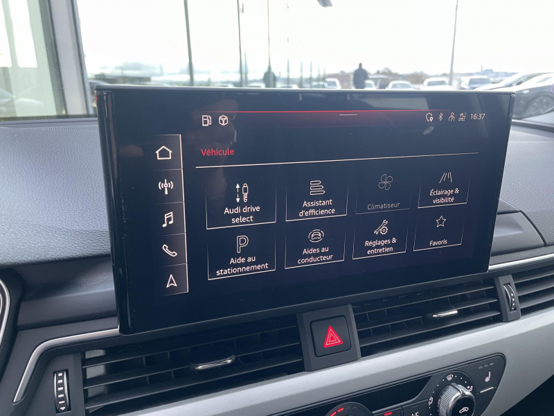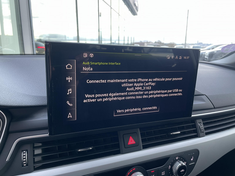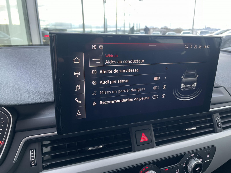Ceintures de sécurité, automatiques à 3 points pour tous les sièges, contrôle de port de ceinture AV / Frein de stationnement électromécanique / Jantes en aluminium forgé style 10 branches, 7.5Jx17'' avec pneus 225/50 R17 / Moulures de seuil avec insert en aluminium dans les ouvertures des portières AV / Navigation MMI plus avec MMI touch / Phares AV à LED (feux de croisement, feux de route, feux diurnes et feux de position LED, clignotants à ampoule, avec éclairage tout-temps) / Phares à LED, avec clignotants AR à LED dynamiques / Préparation pour crochet d'attelage / Préparation pour l'activation de la fonction de navigation / Rétroviseur intérieur sans encadrement jour/nuit automatique / Rétroviseurs extérieurs avec feux clignotants à LED intégrés et dans la teinte du véhicule / Rétroviseurs extérieurs réglables et escamotables électriquement, jour/nuit automatique, dégivrants des deux côtés et buses de lave-glaces dégivrantes / Volant en cuir style 3 branches avec multifonctions / 8 HP passifs / Accoudoir central confort AV avec inclinaison réglable et coulissant en longueur / Airbags latéraux à l'AV et système d'airbags de tête / Antipatinage ASR pour une motricité optimale, empêche le patinage des roues motrices / Appel d'urgence et service Audi connect avec commande du véhicule / Applications décoratives argent flex métallique / Appui lombaire à 4 axes pour les sièges AV: réglages électrique, horizontal et vertical / Audi Connect avec carte SIM intégrée (e-SIM) et licence d'utilisation pour 3 ans / Audi Drive Select / Audi Parking System Plus / Audi Pre Sense city / Audi smartphone interface (Apple CarPlay ou Google Android Auto) / Blocage électronique de différentiel EDS / Châssis : pour une bonne dynamique de conduite couplée à un confort de conduite souverain / Ciel de pavillon en tissu selon la couleur intérieure choisie / Coffre à ouverture et fermeture électriques / Colonne de direction de sécurité / Commande de désactivation de l'airbag passager AV / Contrôle électronique de stabilisation (ESC) / Câbles de recharge pour téléphone portable, compatibles iPhone et Android / Direction assistée électromécanique / Dossier de banquette AR rabattable en 3 parties 40 : 20 : 40 ou complètement / Détecteur de pluie et de luminosité / Eclairage intérieur / Ecrous de roues antivol / Filet de séparation vertical amovible / Finition extérieure Design / Fixation pour sièges enfants ISOFIX et Top Tether pour les places AR extérieures / Identification du modèle selon le nouveau marquage de puissance / Interface Bluetooth / Keyless Go: démarrage et arrêt du moteur par touche moteur Start/Stop sur la console centrale / Limitation de la vitesse maximale à 210 km/h / Plancher de chargement réversible / Pneus à roulage optimisé (faible résistance au roulement), 225/50 R 17 - Vmax = 210 km/h / Prise 12 V dans le coffre / Rampes de pavillon Noires / Recommandation de repos / Récupération Permet de réaliser des économies de carburant en récupérant l'énergie de décélération et de freinage / S tronic, boîte séquentielle 7 vitesses à double embrayage avec commande électrohydraulique / Sièges AV réglables manuellement en hauteur et en profondeur ; réglage manuel des appuie-tête en hauteur / Système d'information du conducteur avec écran couleur haute résolution de 7" / Sécurité enfants / Tapis complémentaires AV/AR / Tire Mobility System Compresseur et produit de colmatage en cas de crevaison / Trousse de secours avec triangle de présignalisation / Vide-poches dans les contre-portes à l'AV et à l'AR