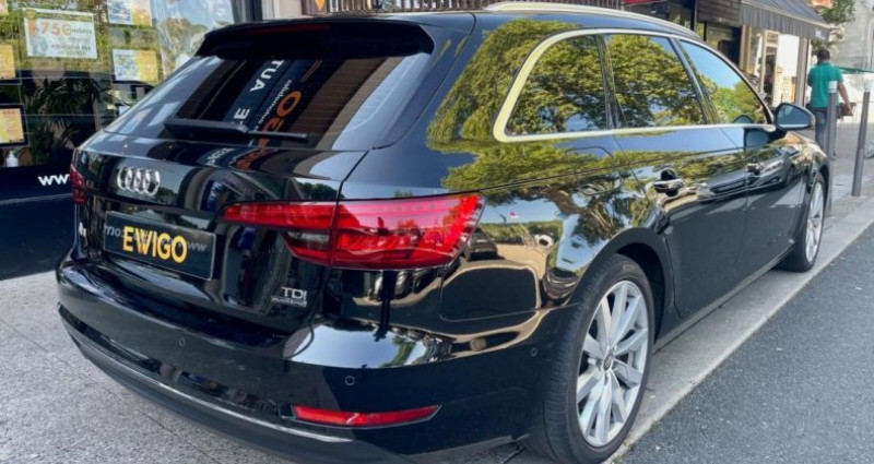 Audi A4 Avant V (B9) 3.0 V6 TDI 272CH DESIGN LUXE QUATTRO TIPTRONIC - BANG & OLUFSEN AUDI TABLET break, noir, 16 cv, 5 portes, première mise en circulation le 04/11/2015, garantie 6 mois. - NOS SERVICES ET PRESTATIONS COMPLÉMENTAIRES - - Visite virtuelle : avant de vous déplacer, visualisez votre futur véhicule sous toutes ses coutures . Contactez-nous pour en voir plus ! - Extension de garantie jusqu'à 60 mois. - Solutions de Financement de 12 à 84 mois. - Livraison dans toute la France métropolitaine (sur devis). - Reprise possible de votre ancien véhicule. - Les informations délivrées par cette annonce sont non contractuelles et données à titre indicatif. Packs disponibles (véhicules éligibles au Label) - Pack Clés en Main - 691 € TTC(¹)(²) Démarches (hors carte grise) | 1/4 de carburant | Nettoyage First | Garantie 6 mois | Label inclus? - Pack Sérénité - 891 € TTC(¹)(²) Démarches (hors carte grise) | 1/2 de carburant | Nettoyage Confort | Garantie 12 mois | Label inclus? - Pack Prestige - 1.091 € TTC(¹)(²) Démarches (hors carte grise) | Plein complet | Nettoyage Prestige | Garantie 12 mois | Label inclus? + Surprise du chef - (¹) Les véhicules non éligibles au Label bénéficient de tarifs préférentiels. Veuillez contacter votre conseiller pour obtenir les conditions tarifaires applicables. (²) Tarif pour les véhicules deux roues motrices dont la valeur de vente est inférieure à 60 000 € TTC. - Véhicule visible sur rendez vous ! du lundi au vendredi de 9h30 à 12h30 et de 14h00 à 18h00 et le samedi de 9h30 à 12h30 et de 14h00 16h00 Accès en 15 minutes depuis la gare de Lyon Part Dieu. Agence EWIGO LYON NORD CALUIRE 17 Quai Clemenceau, Place de la Rochette 69300 CALUIRE ET CUIRE [Coordonnées masquées] [Coordonnées masquées] 5 places OPTIONS ET ÉQUIPEMENTS : Audio - Télécommunications : - Android auto - Apple CARPLAY - Info trafic - Système Audio Bang & Olufsen - Bluetooth - GPS - Prise audio usb - lecteur carte SD Conduite : - Accès et démarrage sans clé - Accès main libre - Boîte de vitesse séquentielle - Essuies glaces automatiques - Frein de parking auto - Frein de parking électrique - Indicateur de limitation de vitesse - Park assist - Système d'accès sans clé - Stop & Start - affichage tête haute - allumage automatique des feux - démarrage sans clé - détecteur de pluie - limiteur de vitesse - palettes au volant - régulateur de vitesse Couleur : - Peinture métallisée Extérieur : - Caméra AV + AR - Clignotants dynamiques AV /AR - Echappement à double sortie - Hayon électrique - Phares AV de jour à LED - Ouverture du coffre à distance - caméra de recul - jantes : aluminium - projecteurs xénon - rétroviseurs rabattables - rétroviseurs électriques - système d'aide au stationnement Intérieur : - Eclairage d'ambiance - Inserts aluminium - Miroir de courtoisie chauffeur éclairé - Miroir de courtoisie passager éclairé - Pédalier sport - Sièges AV électriques - Volant alu/cuir - Porte gobelet avant - accoudoir central - banquette 1/3 - 2/3 - climatisation - climatisation multi zone - fermeture centralisée - non fumeur - ordinateur de bord - rétroviseur interieur electrochrome - vitres surteintées - vitres électriques - volant réglable hauteur - volant réglable profondeur Pack : - Boîte de vitesse automatique - Mode Eco - Mode confort - Mode sport - Recharge sans fil par induction - Tableau de bord cuir - 4 roues motrices - GPS couleur - nombre de rapports : 8 vitesses - volant multifonctions - volant réglable Sellerie : - Sellerie cuir Sécurité : - Airbags - Alerte franchissement de lignes - Contrôle de pression des pneus - Contrôle du freinage en courbe - Détection somnolence - Radar anti-collision - Système de lecture des sms - ABS - Aide au demarrage en pente - ESP - airbags latéraux - avertisseur d'angle mort - fixations ISOFIX - roue de secours Autres équipements et informations : - Appui-tête DVD - Carnet d'entretien dématérialisé - Double des clés - Factures d'entretien - Reprise possible sur Giulia; A4; A5; Série 3; Série 4; DS5; Mondeo; Civic; Accord; Optima; CLA; Classe C; Insignia; 508; Talisman; Octavia; Superb; Passat; S60 - Réseau WIFI - Classe Crit'air : 2 - Puissance kilowatt : 200 kw - USB - dimension des jantes : 18 pouces - puissance réelle : 272 ch - émission CO2 : 139 g/km - état : excellent Référence annonce : d064637-LBC