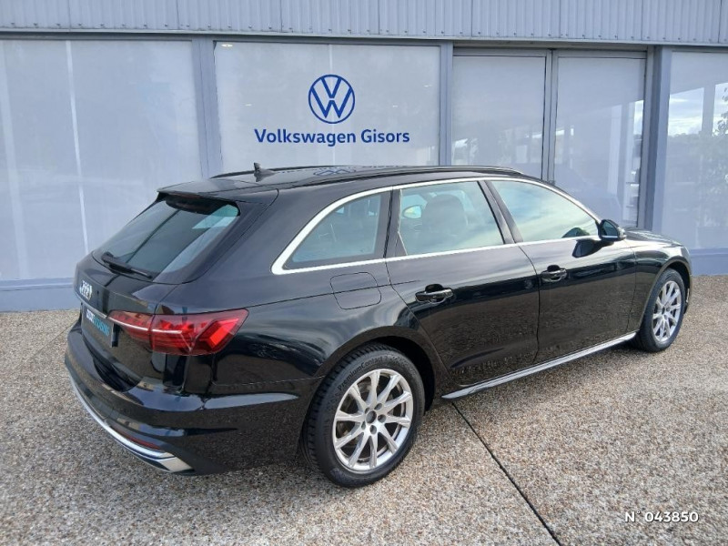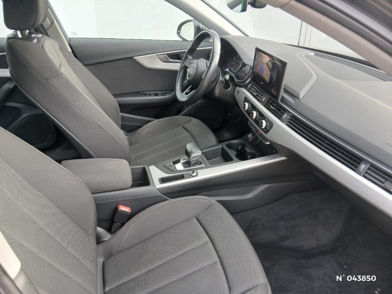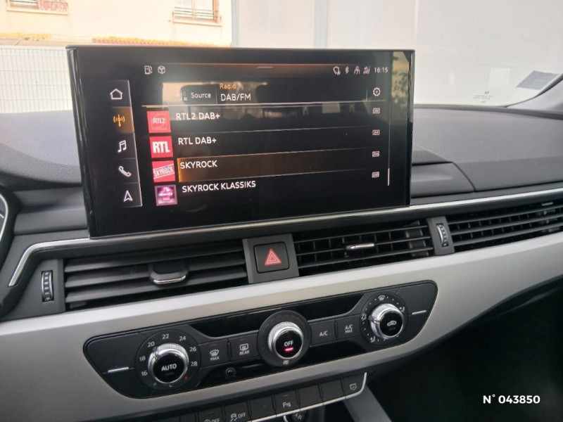 S tronic, boîte séquentielle 7 vitesses à double embrayage avec commande électrohydraulique / Sécurité enfants / Sellerie tissu Index / Sièges AV réglables manuellement en hauteur et en profondeur ; réglage manuel des appuie-tête en hauteur / Système d'information du conducteur avec écran couleur haute résolution de 7" / Tapis complémentaires AV/AR / Tire Mobility System Compresseur et produit de colmatage en cas de crevaison / Trousse de secours avec triangle de présignalisation / Vide-poches dans les contre-portes à l'AV et à l'AR / Volant en cuir style 3 branches avec multifonctions / 8 HP passifs / Plancher de chargement réversible / Pneus à roulage optimisé (faible résistance au roulement), 225/50 R 17 - Vmax = 210 km/h / Préparation pour crochet d'attelage / Préparation pour l'activation de la fonction de navigation / Prise 12 V dans le coffre / Rampes de pavillon Noires / Recommandation de repos / Récupération Permet de réaliser des économies de carburant en récupérant l'énergie de décélération et de freinage / Réservoir AdBlue de 12 l / Rétroviseur intérieur sans encadrement jour/nuit automatique / Rétroviseurs extérieurs avec feux clignotants à LED intégrés et dans la teinte du véhicule / Ceintures de sécurité, automatiques à 3 points pour tous les sièges, contrôle de port de ceinture AV / Châssis : pour une bonne dynamique de conduite couplée à un confort de conduite souverain / Rétroviseurs extérieurs réglables et escamotables électriquement, jour/nuit automatique, dégivrants des deux côtés et buses de lave-glaces dégivrantes / Appui lombaire à 4 axes pour les sièges AV: réglages électrique, horizontal et vertical / Audi Connect avec carte SIM intégrée (e-SIM) et licence d'utilisation pour 3 ans / Audi Drive Select / Audi Parking System Plus / Audi Parking System: Signal acoustique d'aide au stationnement AR / Audi Pre Sense city / Audi smartphone interface (Apple CarPlay ou Google Android Auto) / Baguette enjoliveuse AR en argent aluminium mat / Blocage électronique de différentiel EDS / Câbles de recharge pour téléphone portable, compatibles iPhone et Android / Calandre en noir titane laqué avec lamelles en argent aluminium mat / Accoudoir central confort AV avec inclinaison réglable et coulissant en longueur / Airbags latéraux à l'AV et système d'airbags de tête / Antipatinage ASR pour une motricité optimale, empêche le patinage des roues motrices / Appel d'urgence et service Audi connect avec commande du véhicule / Applications décoratives argent flex métallique / Ciel de pavillon en tissu selon la couleur intérieure choisie / Coffre à ouverture et fermeture électriques / Colonne de direction de sécurité / Commande de désactivation de l'airbag passager AV / Contrôle électronique de stabilisation (ESC) / Détecteur de pluie et de luminosité / Diffuseur AR en noir titane mat / Diffuseur avec finition symétrique des sorties d'échappement de style en chrome à gauche et à droite / Direction assistée électromécanique / Dispositif anti-erreur de carburant / Dossier de banquette AR rabattable en 3 parties 40 : 20 : 40 ou complètement / Eclairage intérieur / Ecrous de roues antivol / Extensions de bas de caisse couleur carrosserie / Filet de séparation vertical amovible / Finition extérieure Design / Fixation pour sièges enfants ISOFIX et Top Tether pour les places AR extérieures / Frein de stationnement électromécanique / Grilles d'entrée d'air latérales en noir mat grainé avec insert en argent aluminium mat / Identification du modèle selon le nouveau marquage de puissance / Interface Bluetooth / Jantes en aluminium forgé style 10 branches, 7.5Jx17'' avec pneus 225/50 R17 / Jantes en aluminium forgé style 10 branches, 7.5Jx17'' avec pneus 225/50 R17 / Keyless Go: démarrage et arrêt du moteur par touche moteur Start/Stop sur la console centrale / Limitation de la vitesse maximale à 210 km/h / Moulures de seuil avec insert en aluminium dans les ouvertures des portières AV / Navigation MMI plus avec MMI touch / Pack Brillance / Phares à LED, avec clignotants AR à LED dynamiques / Phares AV à LED (feux de croisement, feux de route, feux diurnes et feux de position LED, clignotants à ampoule, avec éclairage tout-temps)