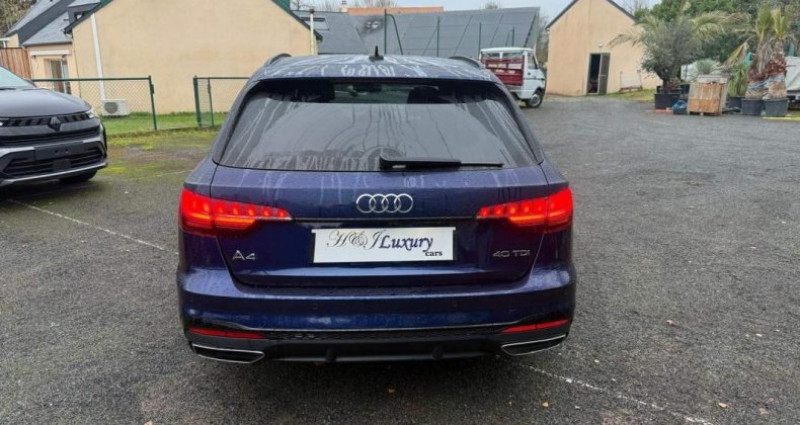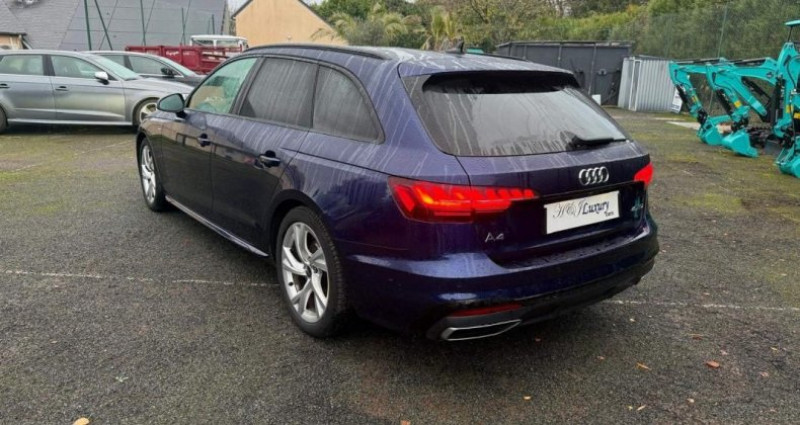 Audi A4 Avant 40 TDI 204 S tronic 7 S line break, bleu fonce, 11 cv, 5 portes, couleur intérieure : gris, première mise en circulation le 16/05/2024, garantie 12 mois. 5 places OPTIONS ET ÉQUIPEMENTS : Audio - Télécommunications : - Audi Sound System - Audi smartphone interface (Apple CarPlay ou Google Android Auto) - Navigation MMI plus avec MMI touch - radio numérique Conduite : - Audi Drive Select - Blocage electronique de differentiel EDS - Limitation de la vitesse maximale a 210 km/h - Systeme Start & Stop - Stop & Start - châssis sport - clé mains-libres - détecteur de pluie - régulateur de vitesse Couleur : - Peinture metallisee Extérieur : - Assistant de feux de route - Audi Parking System Plus - Coffre a ouverture et fermeture electriques - Finition exterieure S Line - Pack Brillance - Phares AV a LED (feux de croisement - Rampes de pavillon en Aluminium poli - S tronic - feux de route - feux diurnes et feux de position LED - caméra de recul - phares à LED - toit panoramique Intérieur : - Appui lombaire a 4 axes pour les sieges AV: reglages electrique - Filet de separation vertical amovible - Pack Eclairage ambiance - Pack Rangement et Coffre - Pare-soleil cotes conducteur et passager AV - Pedalier et repose-pieds en acier inoxydable - Plancher de chargement reversible - Prise 12 V dans le coffre - Retroviseur interieur sans encadrement jour/nuit automatique - Sieges AV Sport - Sieges AV chauffants - Vitres athermiques - accoudoir central - climatisation : automatique - direction assistée - intérieur : cuir - vitres surteintées - volant cuir - volant sport Pack : - Applications decoratives en Aluminium brosse mat - Augmentation de la capacite du reservoir d'AdBlue a 24 litres - Cables de recharge pour telephone portable - Camera multifonction - Ceintures de securite - Ciel de pavillon en tissu noir - Colonne de direction de securite - Eclairage interieur - Ecrous de roues antivol - Feux AR a LED - Identification du modele selon le nouveau marquage de puissance - Moulures de seuil avec insert en aluminium AV - Pneus a roulage optimise (faible resistance au roulement) - Preparation pour crochet d'attelage - Preparation pour l'activation de la fonction de navigation - Reservoir AdBlue de 12 l - Securite enfants - Surfaces daccentuation facon verre en noir - Tapis complementaires AV/AR - Trousse de secours avec triangle de presignalisation - Vide-poches dans les contre-portes a l'AV et a l'AR - avec inscription S - ASR - Cockpit numérique - Sieges arrières rabattable - anti démarrage - clignotants LED - frein parking automatique Sécurité : - Airbags grand volume conducteur et passager AV - Avertissement de sortie de voie - Controle electronique de stabilisation (ESC) - Systeme de lecture des panneaux de signalisation par camera - Tire Mobility System - Affichage de controle de pression des pneus - Protection proactive des occupants - airbag coté passager - airbags latéraux - anti-patinage - fixations ISOFIX Autres équipements et informations : - 245/40 R 18 - Vmax = 210 km/h - Appel d'urgence et service Audi connect avec commande du vehicule - Audi Connect avec carte SIM integree (e-SIM) et licence d'utilisation pour 3 ans - Diffuseur avec finition symetrique des sorties dechappement de style en chrome a gauche et a droite - Dispositif anti-erreur de carburant - Recuperation - Sellerie Combinaison Cuir/Sequence S line - Sieges AV reglables manuellement en hauteur et en profondeur ; reglage manuel des appuie-tete - automatiques a 3 points pour tous les sieges - boite sequentielle 7 vitesses a double embrayage avec commande electrohydraulique - compatibles iPhone et Android - controle de port de ceinture AV - eclairees - horizontal et vertical - Classe Crit'air : 2 - Puissance kilowatt : 150 kw - dimension des jantes : 18 pouces - puissance réelle : 204 ch Référence annonce : e4v6avy