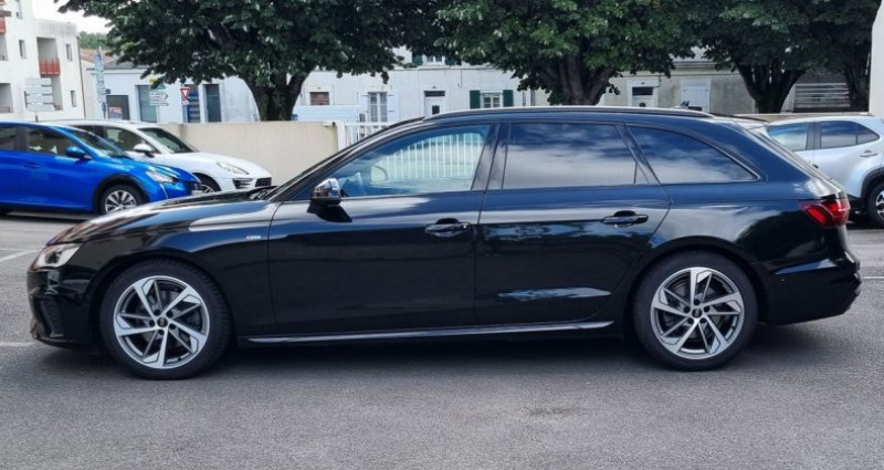 AUDI A4 AVANT 35 TDI 163 CV S-TRONIC7 S-EDITION S-LINE , NOIR , 9 cv, 5 portes, 5 places, mise en circulation le 28/07/2023 - GARANTIE AUDI jusqu'au 19/09/2026 - Extension de garantie possible 12-24-36 ou 48 mois **** ORIGINE FRANCE , Entretien AUDI **** OPTIONS ET EQUIPEMENTS : Extérieur et sécurité : - Feux AV Matrix LED - allumage des phares automatique - Passage plein phare/COD automatique - Feux de jour LED - Détecteur de pluie - rétroviseurs électriques rabattables dégivrant - jantes alliage 18 p - Radar de stationnement Avant et Arrière - Caméra de recul - Régulateur de vitesse adaptatif - Limiteur de vitesse - Détecteur d’angle mort - Détecteur de piéton (Front assist) - frein de stationnement électrique et automatique - Line assist (correcteur de trajectoire) - Park assist - Détecteur de fatigue - Coffre Hayon électrique main libre - Pack Esthétique black + - Clignotant dynamique - Toit ouvrant panoramique électrique - Réservoir grande capacité 54 L INTERIEUR ET CONFORT : - Fermeture centralisée (2 clés) - Ouverture et Démarrage sans clé - banquette 2/3-1/3 - Fixation ISOFIX AV et AR - ordinateur de bord - Boite STronic7 avec palettes au volant - Select Mode Sport - confort - eco - Digital COCKPIT - GPS Couleur tactile - RLINK (Application AndroïdAuto et AppleCar) connexion sans fil - Climatisation automatique BI ZONE - Sellerie cuir et alcantara - Siège AV sport S à réglages électrique - sièges avant massant et chauffant - Pack intérieur ambiance avec choix des couleurs - System Start & Stop - volant multifonction - Volant chauffant - prise USB / USBC - Bluetooth - Chargeur induction Audi Phone box - Commande vocale VEHICULE VISIBLE UNIQUEMENT SUR RENDEZ-VOUS MEYER JB AUTOMOBILE 34 Boulevard d’Italie 85000 LA ROCHE SUR YON
