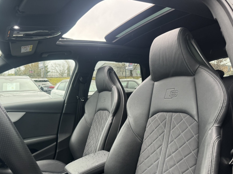 Application décoratives aluminium brossé mat / Audi Virtual cockpit plus / Ceintures de sécurité, automatiques à 3 points pour tous les sièges, contrôle de port de ceinture AV / Eléments de l'habitacle en simili-cuir / Feux AR à LED, clignotants, feux stop, feux AR, feux de recul et feux de plaque AR à LED / Frein de stationnement électromécanique / Jantes en aluminium coulé Audi Sport 5 branches trapézoïdal, finition titane mat, polies brillant Dimension : 8,0 J x 18" Pneus : 245/40 R 18 / Moulures de seuil avec insert en aluminium AV, éclairées, avec inscription S / Navigation MMI plus avec MMI touch / Pack Rangement et Coffre / Préparation pour crochet d'attelage / Préparation pour l'activation de la fonction de navigation / Rétroviseur intérieur sans encadrement jour/nuit automatique / Rétroviseurs extérieurs réglables et escamotables électriquement, jour/nuit automatique, dégivrants des deux côtés et buses de lave-glaces dégivrantes / Volant Sport contour en cuir style 3 branches à méplat avec multifonctions plus Avec emblème S et surpiqûres contrastées spécifiques S / 8 HP passifs / Accoudoir central confort AV avec inclinaison réglable et coulissant en longueur / Airbags latéraux à l'AV et système d'airbags de tête / Antipatinage ASR pour une motricité optimale, empêche le patinage des roues motrices / Appel d'urgence et service Audi connect avec commande du véhicule / Appui lombaire à 4 axes pour les sièges AV: réglages électrique, horizontal et vertical / Audi Connect avec carte SIM intégrée (e-SIM) et licence d'utilisation pour 3 ans / Audi Drive Select / Audi Hold Assist / Audi Parking System Plus: Signal sonore et visuel AV/AR / Audi Pre Sense city / Audi smartphone interface (Apple CarPlay ou Google Android Auto) / Audi Sound System / Blocage électronique de différentiel EDS / Ciel de pavillon en tissu noir / Clé Audi connect (Smartkey) / Clé confort incluant déverrouillage du coffre par capteur (avec safelock) / Coffre à ouverture et fermeture électriques / Colonne de direction de sécurité / Commande de désactivation de l'airbag passager AV / Contrôle électronique de stabilisation (ESC) / Coques de rétroviseurs noir brillant / Câbles de recharge pour téléphone portable, compatibles iPhone et Android / Design extérieur finition S line / Diffuseur avec finition symétrique des sorties d?échappement de style en chrome à gauche et à droite / Direction assistée électromécanique / Dispositif anti-erreur de carburant / Dossier de banquette AR rabattable en 3 parties 40 : 20 : 40 ou complètement / Détecteur de pluie et de luminosité / Ecrous de roues antivol / Filet de séparation vertical amovible / Fixation pour sièges enfants ISOFIX et Top Tether pour les places AR extérieures incluant un point de fixation supplémentaire (Top Tether) / Identification du modèle selon le nouveau marquage de puissance / Interface Bluetooth / Keyless Go: démarrage et arrêt du moteur par touche moteur Start/Stop sur la console centrale / Limitation de la vitesse maximale à 210 km/h / MMI Radio Plus / Plancher de chargement réversible / Pneus à roulage optimisé (faible résistance au roulement), 245/40 R 18 - Vmax = 210 km/h / Prise 12 V dans le coffre / Pédalier et repose-pieds en acier inoxydable / Rampes de pavillon Noires / Recommandation de repos / Récupération Permet de réaliser des économies de carburant en récupérant l'énergie de décélération et de freinage / Réservoir AdBlue de 12 l / S tronic, boîte séquentielle 7 vitesses à double embrayage avec commande électrohydraulique / Sièges AV avec fonction massage / Stores pare-soleil manuels pour les vitres de portières AR / Surfaces d?accentuation façon verre en noir / Système d'information du conducteur (affichage d'un grand nombre d'informations utiles sur un écran TFT monochrome de 5") / Sécurité enfants / Tapis complémentaires AV/AR / Tire Mobility System Compresseur et produit de colmatage en cas de crevaison / Triangle de présignalisation / Vide-poches dans les contre-portes à l'AV et à l'AR / Vitrage acoustique pour les vitres de portières AV / Vitrage Privacy (vitres surteintées)