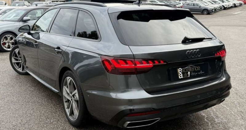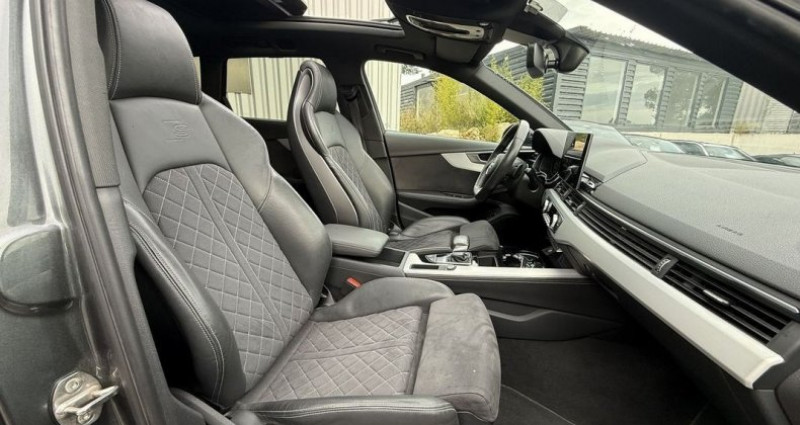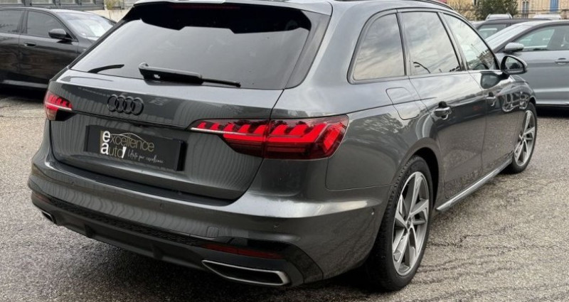 Audi A4 AVANT 40 TDI 204CH S LINE S TRONIC 7, (Break), GRIS C, 11cv, 5 portes, mise en circulation le 28-02-2023. 5 places, longueur : 4,76 mètres, boîte de vitesse : automatique OPTIONS ET EQUIPEMENTS : Audio - Télécommunications - 10 Haut parleurs - Appel d'Urgence Localisé - Borne Wi-Fi - Commandes du système audio au volant - Commandes vocales - Fonction MP3 - GPS Cartographique - Interface Media - Kit mains-libres Bluetooth - Navigateur Internet - Prise USB - Prise auxiliaire de connexion audio - Radio - Radio numérique DAB - Services connectés - TMC Conduite - Arrêt et redémarrage auto. du moteur - Blocage électronique du différentiel - Capteur de luminosité - Capteur de pluie - Chassis Sport - Commande du comportement dynamique - Différentiel autobloquant - Démarrage sans clé - Limiteur de vitesse - Palettes changement vitesses au volant - Régulateur de vitesse - Sièges sport Extérieur - Barres de toit - Boucliers AV et AR couleur caisse - Buses de lave-glace chauffantes - Caméra de recul - Ceinture de vitrage chromée - Coffre assisté électriquement - Coffre avec fermeture à distance - Echappement à double sortie - Eclairage statique d'intersection - Essuie-glace arrière - Feux arrière à LED - Feux de jour à LED - Feux de position à LED - Filtre à particules - Jantes Alu - Phares avant LED - Radar de stationnement AR - Radar de stationnement AV - Répétiteurs de clignotant dans rétro ext - Rétroviseurs dégivrants - Rétroviseurs extérieurs électrochromes - Rétroviseurs rabattables électriquement - Rétroviseurs électriques - Sortie d'échappement chromée Intérieur - Accoudoir central AV avec rangement - Appui-tête conducteur réglable hauteur - Appui-tête passager réglable en hauteur - Bacs de portes arrière - Bacs de portes avant - Banquette 40/20/40 - Banquette AR rabattable - Banquette arrière 3 places - Boite à gants fermée - Boite à gants éclairée et réfrigérable - Clim automatique tri-zones - Commande Climatisation AR - Compte tours - Eclairage d'ambiance - Ecran multifonction couleur - Filets de coffre - Filtre à Pollen - Fixations Isofix aux places arrières - Inserts de porte métal - Inserts de tableau de bord métal - Lampe de coffre - Lampes de lecture à l'arrière - Lampes de lecture à l'avant - Lunette arrière - Miroir de courtoisie conducteur éclairé - Miroir de courtoisie passager éclairé - Ordinateur de bord - Ouverture des vitres séquentielle - Plancher de coffre mobile - Poches d'aumonières - Pommeau de levier vitesse en cuir - Porte-gobelets arrière - Porte-gobelets avant - Prise 12V - Pédalier sport - Rétroviseur intérieur électrochrome - Siège cond. avec réglage lombaire électr - Siège conducteur réglable en hauteur - Siège passager avec réglage lombaire - Siège passager réglable en hauteur - Sièges AV Sport S - Sièges AV chauffants - Sièges AV massants - Sièges avant sport - Stores pare-soleil vitres lat. AR - Température extérieure - Verrouillage centralisé des portes - Verrouillage centralisé à distance - Vitres arrière électriques - Vitres avant électriques - Volant cuir - Volant multifonction - Volant réglable en profondeur et hauteur - Volant sport Sécurité - ABS - AFIL - Airbag conducteur - Airbag passager déconnectable - Airbags latéraux avant - Airbags rideaux AV et AR - Antidémarrage électronique - Antipatinage - Assistance de maintien de trajectoire - Contrôle electronique de stabilité - Contrôle élect. de la pression des pneus - EBD - ESP - Reconnaissance panneaux de signalisation - Système de détection de somnolence - Système de prévention des collisions - Troisième ceinture de sécurité - Témoin de bouclage des ceintures AV Autres équipements et informations : - Blanc Arkona - Toit pano en verre en deux parties - Cuir/Séquence Noir+spq gris Kilométrage garanti. Référence annonce : 10989