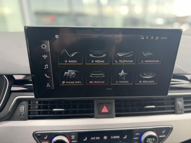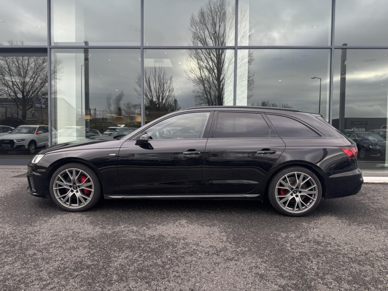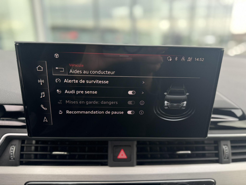 Application décoratives aluminium brossé mat / Audi Virtual cockpit plus / Ceintures de sécurité, automatiques à 3 points pour tous les sièges, contrôle de port de ceinture AV / Eléments de l'habitacle en simili-cuir / Feux AR à LED, clignotants, feux stop, feux AR, feux de recul et feux de plaque AR à LED / Frein de stationnement électromécanique / Jantes en aluminium coulé Audi Sport 5 branches trapézoïdal, finition titane mat, polies brillant Dimension : 8,0 J x 18" Pneus : 245/40 R 18 / Moulures de seuil avec insert en aluminium AV, éclairées, avec inscription S / Navigation MMI plus avec MMI touch / Pack Rangement et Coffre / Préparation pour crochet d'attelage / Préparation pour l'activation de la fonction de navigation / Rétroviseur intérieur sans encadrement jour/nuit automatique / Rétroviseurs extérieurs réglables et escamotables électriquement, jour/nuit automatique, dégivrants des deux côtés et buses de lave-glaces dégivrantes / Volant Sport contour en cuir style 3 branches à méplat avec multifonctions plus Avec emblème S et surpiqûres contrastées spécifiques S / 8 HP passifs / Accoudoir central confort AV avec inclinaison réglable et coulissant en longueur / Airbags latéraux à l'AV et système d'airbags de tête / Antipatinage ASR pour une motricité optimale, empêche le patinage des roues motrices / Appel d'urgence et service Audi connect avec commande du véhicule / Appui lombaire à 4 axes pour les sièges AV: réglages électrique, horizontal et vertical / Audi Connect avec carte SIM intégrée (e-SIM) et licence d'utilisation pour 3 ans / Audi Drive Select / Audi Hold Assist / Audi Parking System Plus: Signal sonore et visuel AV/AR / Audi Pre Sense city / Audi smartphone interface (Apple CarPlay ou Google Android Auto) / Audi Sound System / Blocage électronique de différentiel EDS / Ciel de pavillon en tissu noir / Clé Audi connect (Smartkey) / Clé confort incluant déverrouillage du coffre par capteur (avec safelock) / Coffre à ouverture et fermeture électriques / Colonne de direction de sécurité / Commande de désactivation de l'airbag passager AV / Contrôle électronique de stabilisation (ESC) / Coques de rétroviseurs noir brillant / Câbles de recharge pour téléphone portable, compatibles iPhone et Android / Design extérieur finition S line / Diffuseur avec finition symétrique des sorties d?échappement de style en chrome à gauche et à droite / Direction assistée électromécanique / Dispositif anti-erreur de carburant / Dossier de banquette AR rabattable en 3 parties 40 : 20 : 40 ou complètement / Détecteur de pluie et de luminosité / Ecrous de roues antivol / Filet de séparation vertical amovible / Fixation pour sièges enfants ISOFIX et Top Tether pour les places AR extérieures incluant un point de fixation supplémentaire (Top Tether) / Identification du modèle selon le nouveau marquage de puissance / Interface Bluetooth / Keyless Go: démarrage et arrêt du moteur par touche moteur Start/Stop sur la console centrale / Limitation de la vitesse maximale à 210 km/h / MMI Radio Plus / Plancher de chargement réversible / Pneus à roulage optimisé (faible résistance au roulement), 245/40 R 18 - Vmax = 210 km/h / Prise 12 V dans le coffre / Pédalier et repose-pieds en acier inoxydable / Rampes de pavillon Noires / Recommandation de repos / Récupération Permet de réaliser des économies de carburant en récupérant l'énergie de décélération et de freinage / Réservoir AdBlue de 12 l / S tronic, boîte séquentielle 7 vitesses à double embrayage avec commande électrohydraulique / Sièges AV avec fonction massage / Stores pare-soleil manuels pour les vitres de portières AR / Surfaces d?accentuation façon verre en noir / Système d'information du conducteur (affichage d'un grand nombre d'informations utiles sur un écran TFT monochrome de 5") / Sécurité enfants / Tapis complémentaires AV/AR / Tire Mobility System Compresseur et produit de colmatage en cas de crevaison / Triangle de présignalisation / Vide-poches dans les contre-portes à l'AV et à l'AR / Vitrage acoustique pour les vitres de portières AV / Vitrage Privacy (vitres surteintées)