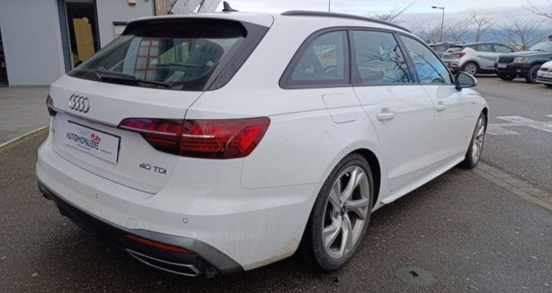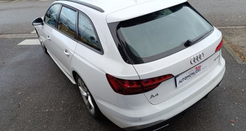 AUDI A4 Avant II Avant 40 2.0 TDi S-tronic7 204 cv BVA S-LINE - PREMIERE Main, Blanc, 11CV, 5 portes, 05/05/2023 - Première main - Etat proche du neuf - Suivi entretien à jour - Pneus Michelin Crossclimate 4S - Boîte automatique S-Tronic 7 - Virtual cockpit - Sièges électriques chauffants intensité variable - Réglage lombaires électriques - Commande de chauffage/clim 3 zones - Disponible rapidement Garantie mécanique - Financement - Paiement sécurisé - Service carte grise - Accueil gare Mulhouse possible - Pack de mise à la route à partir de 299 € en sus, visible sur rendez-vous Alternative à BMW Série 3 Touring, Mercedes-Benz Classe C Break, Volkswagen Passat SW, Volvo V60, Skoda Superb Combi, Peugeot 508 SW, Mazda 6 Wagon Tags : Audi audi AUDI a4 4 Break BREAK break touring tdi TDI 2l 2.0 2.0l 3L avant Avant AVANT A4 Pour vous garantir un accueil personnalisé et un accompagnement de qualité, tous nos véhicules sont visibles uniquement sur rendez-vous. L’AGENCE AUTOMOBILIÈRE accompagne chaque vente dans un esprit de confiance, d’honnêteté et de transparence. Découvrez plus de 5 000 véhicules d'occasion rigoureusement sélectionnés sur notre site. La garantie légale de conformité ne s'applique pas dans une vente entre particuliers. Nous sommes agrées SIV et pouvons réaliser votre carte grise directement à l'agence Prix hors frais de mise en main, contenu détaillé en agence. OPTIONS ET ÉQUIPEMENTS : Audio - Télécommunications : - Android auto - Apple CarPlay - Bluetooth - Commande vocale - GPS - Prise USB - Écran tactile Conduite : - Aide au démarrage en côte - Allumage automatique des feux - Châssis sport - Démarrage sans clé - Détecteur de pluie - Limiteur de vitesse - Palettes au volant - Régulateur de vitesse - Sièges sport - Stop and start Couleur : - Peinture métallisée Extérieur : - Barres de toit - Caméra de recul - Feux de jour - Hayon électrique - Jantes aluminium - Phares Full LED - Radar de stationnement arrière - Radar de stationnement avant et arrière - Rétroviseurs dégivrants Intérieur : - Accoudoir - Banquette rabattable 1/3-2/3 - Climatisation - Climatisation automatique - Climatisation automatique bi-zone - Direction assistée - Fermeture centralisée - Fermeture centralisée à distance - Ordinateur de bord - Ouverture à distance sans clé - Réglage lombaires électriques - Rétroviseur intérieur jour nuit - Sièges chauffants - Trappe à ski - Virtual cockpit - Vitres électriques - Vitres électriques avant et arrière - Volant cuir - Volant sport - Éclairage d'ambiance Pack : - Frein à main électrique - I-cockpit - Intérieur tissus - Sièges électriques - Volant multifonctions Sécurité : - ABS - Airbag(s) - Alerte collision - Anti-brouillards - Détecteur pression des pneus - ESP - Feux de routes automatiques - Fixation Isofix - Freinage actif d'urgence Autres équipements et informations : - Compteur numérique Référence annonce : 188850
