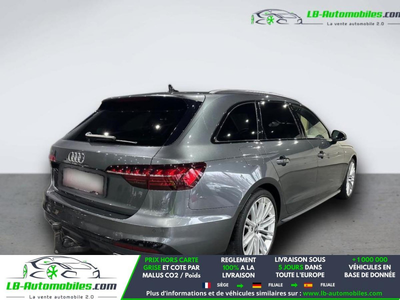 Référence : 1170755 Vos Avantages chez LB-AUTOMOBILES.com / Prix affiché TTC Livré hors carte grise / Livraison sous 10 jours dans toute la France hors 31 / Pas d?avance de frais paiement du véhicule 100% à la livraison par virement. Audi A4 Avant Neuf remisée, Audi A4 Avant Occasion Toulouse Beaupuy 31850, Audi A4 Avant Véhicule sorti de réseau collaborateur, Audi A4 Avant import, Audi A4 Avant importateur, Audi A4 Avant Livraison possible dans toute la France sous 5 jours, Audi A4 Avant, Audi A4 Avant Location Option Achat, Audi A4 Avant LLD, Audi A4 Avant Longue Durée, Audi A4 Avant TVA récupérable. Possibilité d'extension de garantie 12, 24,36 mois, Pour tout autres voitures import neufs ou occasions collaborateur fortement remisée, Mandataire Audi, Mandataire BMW, Mandataire Volkswagen, Mandataire Mercedes, Mandataire Peugeot Espagne, Mandataire Renault Espagne, Porsche import, Mandataire Citroën Espagne, Mandataire Seat Espagne, n'hésitez pas à nous contacter. « Sous réserve de vente préalable et erreur de saisie » Principaux équipements : - ABS - Accoudoir - Android Auto - Antidémarrage - Apple CarPlay - Assistance au freinage d'urgence - Assistance de démarrage en côte - Assistant de man?uvre avec remorque - Assistant feux de route - Attache remorque pivotante - Avertisseur de franchissement de ligne - Bluetooth - Boîte de vitesses robotisée - Capteur de lumière - Capteur de pluie - Carnet d'entretien - Chargement par induction pour smartphones - Commande vocale - Contrôle de la pression des pneus - Diesel avec filtre à particules - Direction assistée - Éclairage adaptatif de virage - Éclairage route non éblouissant - Écran tactile - ESP - Fermeture centralisée - Feux de jour LED - Galerie de toit - Garantie - GPS - Grille de protection pour coffre - Hayon électrique - Isofix - Jantes alliage - Kit de réparation d'urgence des pneus - Kit mains libres - Ordinateur de bord - Pack sport - Phares LED - Pneus été - Port USB - Radio DAB - Réglage électrique des sièges - Régulateur de vitesse adaptatif - Rétroviseur extérieur électrique - Rétroviseur intérieur anti-éblouissement automatique - Rétroviseurs extérieurs rabattables électriquement - Sièges chauffants - Sièges sport - Streaming musical intégré - Support lombaire - Suspension adaptative - Suspension sport - Système antipatinage - Système d'alarme - Système d'appel d'urgence - Système d'avertissement de la distance - Système de détection de la fatigue - Système de limitation de la vitesse - Système de reconnaissance des panneaux de signalisation - Système de sonorisation - Système Stop & Start - Toit ouvrant - Toit panoramique - Traction avant - Tuner/radio - Véhicule non-fumeur - Verrouillage centralisé sans clé - Vitres électriques - Vitres teintées - Volant en cuir - Volant multifonction - WLAN / point d'accès Wi-Fi