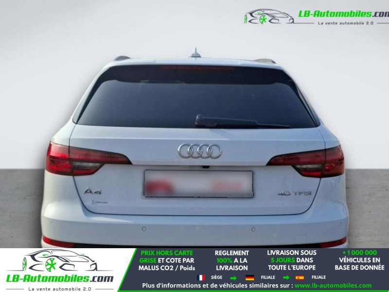 Référence : 1189685 Vos Avantages chez LB-AUTOMOBILES.com / Prix affiché TTC Livré hors carte grise / Livraison sous 10 jours dans toute la France hors 31 / Pas d?avance de frais paiement du véhicule 100% à la livraison par virement. Audi A4 Avant Neuf remisée, Audi A4 Avant Occasion Toulouse Beaupuy 31850, Audi A4 Avant Véhicule sorti de réseau collaborateur, Audi A4 Avant import, Audi A4 Avant importateur, Audi A4 Avant Livraison possible dans toute la France sous 5 jours, Audi A4 Avant, Audi A4 Avant Location Option Achat, Audi A4 Avant LLD, Audi A4 Avant Longue Durée, Audi A4 Avant TVA récupérable. Possibilité d'extension de garantie 12, 24,36 mois, Pour tout autres voitures import neufs ou occasions collaborateur fortement remisée, Mandataire Audi, Mandataire BMW, Mandataire Volkswagen, Mandataire Mercedes, Mandataire Peugeot Espagne, Mandataire Renault Espagne, Porsche import, Mandataire Citroën Espagne, Mandataire Seat Espagne, n'hésitez pas à nous contacter. « Sous réserve de vente préalable et erreur de saisie » Principaux équipements : - ABS - Accoudoir - Antidémarrage - Assistant feux de route - Bluetooth - Capteur de lumière - Carnet d'entretien - Chauffage auxiliaire - Contrôle de la pression des pneus - Direction assistée - ESP - Fermeture centralisée - Feux de jour - Galerie de toit - Garantie - GPS - Hayon électrique - Isofix - Jantes alliage - Kit mains libres - Ordinateur de bord - Phares LED - Point Isofix siège passager - Régulateur de vitesse - Rétroviseur extérieur électrique - Rétroviseurs extérieurs rabattables électriquement - Sièges chauffants - Système antipatinage - Système d'appel d'urgence - Système de limitation de la vitesse - Système Stop & Start - Traction avant - Tuner/radio - Véhicule non-fumeur - Vitres électriques - Vitres teintées - Volant multifonction