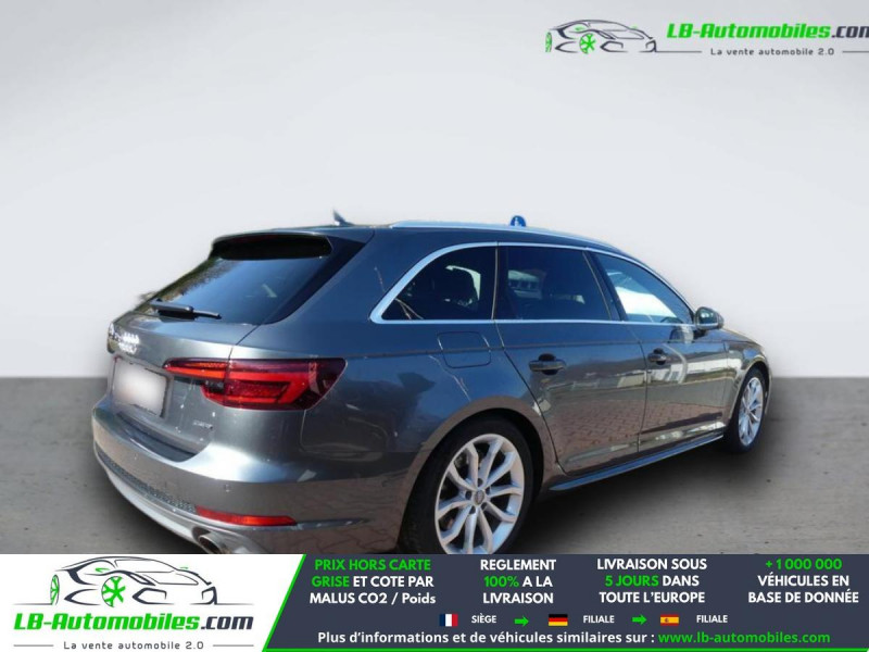 Référence : 1189637 Vos Avantages chez LB-AUTOMOBILES.com / Prix affiché TTC Livré hors carte grise / Livraison sous 10 jours dans toute la France hors 31 / Pas d?avance de frais paiement du véhicule 100% à la livraison par virement. Audi A4 Avant Neuf remisée, Audi A4 Avant Occasion Toulouse Beaupuy 31850, Audi A4 Avant Véhicule sorti de réseau collaborateur, Audi A4 Avant import, Audi A4 Avant importateur, Audi A4 Avant Livraison possible dans toute la France sous 5 jours, Audi A4 Avant, Audi A4 Avant Location Option Achat, Audi A4 Avant LLD, Audi A4 Avant Longue Durée, Audi A4 Avant TVA récupérable. Possibilité d'extension de garantie 12, 24,36 mois, Pour tout autres voitures import neufs ou occasions collaborateur fortement remisée, Mandataire Audi, Mandataire BMW, Mandataire Volkswagen, Mandataire Mercedes, Mandataire Peugeot Espagne, Mandataire Renault Espagne, Porsche import, Mandataire Citroën Espagne, Mandataire Seat Espagne, n'hésitez pas à nous contacter. « Sous réserve de vente préalable et erreur de saisie » Principaux équipements : - 4x4 - ABS - Accoudoir - Antidémarrage - Assistance au freinage d'urgence - Bluetooth - Boîte de vitesses robotisée - Capteur de lumière - Capteur de pluie - Chargement par induction pour smartphones - Contrôle de la pression des pneus - Direction assistée - ESP - Fermeture centralisée - Feux de jour LED - Galerie de toit - GPS - Grille de protection pour coffre - Hayon électrique - Isofix - Jantes alliage - Kit de réparation d'urgence des pneus - Kit mains libres - Lecteur CD - Ordinateur de bord - Phare antibrouillard - Phares LED - Pneus été - Port USB - Radio DAB - Réglage électrique des sièges - Réglage électrique des sièges avec fonction mémoire - Régulateur de vitesse - Rétroviseur extérieur électrique - Rétroviseurs extérieurs rabattables électriquement - Sièges chauffants - Sièges sport - Système antipatinage - Système de détection de la fatigue - Système Stop & Start - Tuner/radio - Verrouillage centralisé sans clé - Vitres électriques - Vitres teintées - Volant multifonction