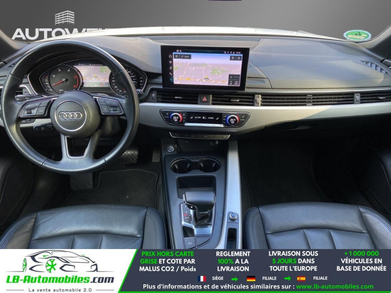 Référence : 1209610 Vos Avantages chez LB-AUTOMOBILES.com / Prix affiché TTC Livré hors carte grise / Livraison sous 10 jours dans toute la France hors 31 / Pas d?avance de frais paiement du véhicule 100% à la livraison par virement. Audi A4 Avant Neuf remisée, Audi A4 Avant Occasion Toulouse Beaupuy 31850, Audi A4 Avant Véhicule sorti de réseau collaborateur, Audi A4 Avant import, Audi A4 Avant importateur, Audi A4 Avant Livraison possible dans toute la France sous 5 jours, Audi A4 Avant, Audi A4 Avant Location Option Achat, Audi A4 Avant LLD, Audi A4 Avant Longue Durée, Audi A4 Avant TVA récupérable. Possibilité d'extension de garantie 12, 24,36 mois, Pour tout autres voitures import neufs ou occasions collaborateur fortement remisée, Mandataire Audi, Mandataire BMW, Mandataire Volkswagen, Mandataire Mercedes, Mandataire Peugeot Espagne, Mandataire Renault Espagne, Porsche import, Mandataire Citroën Espagne, Mandataire Seat Espagne, n'hésitez pas à nous contacter. « Sous réserve de vente préalable et erreur de saisie » Principaux équipements : - ABS - Accoudoir - Android Auto - Antidémarrage - Apple CarPlay - Assistance au freinage d'urgence - Assistance de démarrage en côte - Assistant feux de route - Attache remorque pivotante - Avertisseur de franchissement de ligne - Bluetooth - Boîte de vitesses robotisée - Capteur de lumière - Capteur de pluie - Carnet d'entretien - Commande vocale - Contrôle de la pression des pneus - Diesel avec filtre à particules - Direction assistée - Éclairage adaptatif de virage - Éclairage d'ambiance - Écran tactile - ESP - Fermeture centralisée - Feux de jour LED - Galerie de toit - Garantie - GPS - Grille de protection pour coffre - Hayon électrique - Isofix - Jantes alliage - Kit mains libres - Ordinateur de bord - Pack sport - Phare antibrouillard - Phares LED - Pneus été - Pneus hiver - Point Isofix siège passager - Port USB - Radio DAB - Réglage électrique des sièges - Réglage électrique des sièges avec fonction mémoire - Régulateur de vitesse adaptatif - Rétroviseur extérieur électrique - Rétroviseur intérieur anti-éblouissement automatique - Rétroviseurs extérieurs rabattables électriquement - Sièges chauffants - Streaming musical intégré - Support lombaire - Système antipatinage - Système d'appel d'urgence - Système d'avertissement de la distance - Système de limitation de la vitesse - Système de reconnaissance des panneaux de signalisation - Système de sonorisation - Système Stop & Start - Traction avant - Tuner/radio - Véhicule non-fumeur - Vitres électriques - Vitres teintées - Volant en cuir - Volant multifonction