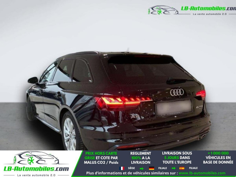 Référence : 1170746 Vos Avantages chez LB-AUTOMOBILES.com / Prix affiché TTC Livré hors carte grise / Livraison sous 10 jours dans toute la France hors 31 / Pas d?avance de frais paiement du véhicule 100% à la livraison par virement. Audi A4 Avant Neuf remisée, Audi A4 Avant Occasion Toulouse Beaupuy 31850, Audi A4 Avant Véhicule sorti de réseau collaborateur, Audi A4 Avant import, Audi A4 Avant importateur, Audi A4 Avant Livraison possible dans toute la France sous 5 jours, Audi A4 Avant, Audi A4 Avant Location Option Achat, Audi A4 Avant LLD, Audi A4 Avant Longue Durée, Audi A4 Avant TVA récupérable. Possibilité d'extension de garantie 12, 24,36 mois, Pour tout autres voitures import neufs ou occasions collaborateur fortement remisée, Mandataire Audi, Mandataire BMW, Mandataire Volkswagen, Mandataire Mercedes, Mandataire Peugeot Espagne, Mandataire Renault Espagne, Porsche import, Mandataire Citroën Espagne, Mandataire Seat Espagne, n'hésitez pas à nous contacter. « Sous réserve de vente préalable et erreur de saisie » Principaux équipements : - ABS - Accoudoir - Android Auto - Antidémarrage - Apple CarPlay - Assistance de démarrage en côte - Assistant feux de route - Avertisseur de franchissement de ligne - Bluetooth - Boîte de vitesses robotisée - Capteur de lumière - Capteur de pluie - Carnet d'entretien - Chargement par induction pour smartphones - Commande vocale - Contrôle de la pression des pneus - Direction assistée - Éclairage d'ambiance - Écran tactile - ESP - Fermeture centralisée - Feux de jour LED - Galerie de toit - GPS - Grille de protection pour coffre - Isofix - Jantes alliage - Kit mains libres - Ordinateur de bord - Package hiver - Pack sport - Phares LED - Port USB - Radio DAB - Réglage électrique des sièges - Régulateur de vitesse adaptatif - Rétroviseur extérieur électrique - Rétroviseur intérieur anti-éblouissement automatique - Siège passager rabattable - Sièges chauffants - Sièges sport - Streaming musical intégré - Support lombaire - Suspension sport - Système antipatinage - Système d'appel d'urgence - Système d'avertissement de la distance - Système de limitation de la vitesse - Système de reconnaissance des panneaux de signalisation - Système de sonorisation - Système Stop & Start - Taxi - Traction avant - Tuner/radio - Verrouillage centralisé sans clé - Vitres électriques - Volant en cuir - Volant multifonction