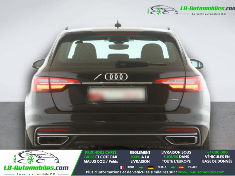 Référence : 1170748 Vos Avantages chez LB-AUTOMOBILES.com / Prix affiché TTC Livré hors carte grise / Livraison sous 10 jours dans toute la France hors 31 / Pas d?avance de frais paiement du véhicule 100% à la livraison par virement. Audi A4 Avant Neuf remisée, Audi A4 Avant Occasion Toulouse Beaupuy 31850, Audi A4 Avant Véhicule sorti de réseau collaborateur, Audi A4 Avant import, Audi A4 Avant importateur, Audi A4 Avant Livraison possible dans toute la France sous 5 jours, Audi A4 Avant, Audi A4 Avant Location Option Achat, Audi A4 Avant LLD, Audi A4 Avant Longue Durée, Audi A4 Avant TVA récupérable. Possibilité d'extension de garantie 12, 24,36 mois, Pour tout autres voitures import neufs ou occasions collaborateur fortement remisée, Mandataire Audi, Mandataire BMW, Mandataire Volkswagen, Mandataire Mercedes, Mandataire Peugeot Espagne, Mandataire Renault Espagne, Porsche import, Mandataire Citroën Espagne, Mandataire Seat Espagne, n'hésitez pas à nous contacter. « Sous réserve de vente préalable et erreur de saisie » Principaux équipements : - 4x4 - ABS - Accoudoir - Antidémarrage - Assistance au freinage d'urgence - Assistant feux de route - Bluetooth - Boîte de vitesses robotisée - Capteur de lumière - Capteur de pluie - Carnet d'entretien - Chargement par induction pour smartphones - Commande vocale - Contrôle de la pression des pneus - Diesel avec filtre à particules - Direction assistée - Éclairage d'ambiance - Éclairage route non éblouissant - Écran tactile - ESP - Fermeture centralisée - Feux de jour LED - Galerie de toit - Garantie - GPS - Grille de protection pour coffre - Isofix - Jantes alliage - Kit mains libres - Ordinateur de bord - Phares LED - Pneus été - Port USB - Radio DAB - Réglage électrique des sièges - Régulateur de vitesse - Rétroviseur extérieur électrique - Rétroviseur intérieur anti-éblouissement automatique - Sièges chauffants - Sièges sport - Suspension sport - Système antipatinage - Système d'appel d'urgence - Système d'avertissement de la distance - Système de limitation de la vitesse - Système Stop & Start - Toit ouvrant - Toit panoramique - Tuner/radio - Véhicule non-fumeur - Vitres électriques - Volant en cuir - Volant multifonction