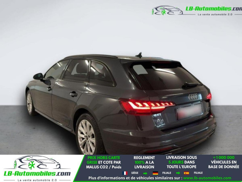 Référence : 1170753 Vos Avantages chez LB-AUTOMOBILES.com / Prix affiché TTC Livré hors carte grise / Livraison sous 10 jours dans toute la France hors 31 / Pas d?avance de frais paiement du véhicule 100% à la livraison par virement. Audi A4 Avant Neuf remisée, Audi A4 Avant Occasion Toulouse Beaupuy 31850, Audi A4 Avant Véhicule sorti de réseau collaborateur, Audi A4 Avant import, Audi A4 Avant importateur, Audi A4 Avant Livraison possible dans toute la France sous 5 jours, Audi A4 Avant, Audi A4 Avant Location Option Achat, Audi A4 Avant LLD, Audi A4 Avant Longue Durée, Audi A4 Avant TVA récupérable. Possibilité d'extension de garantie 12, 24,36 mois, Pour tout autres voitures import neufs ou occasions collaborateur fortement remisée, Mandataire Audi, Mandataire BMW, Mandataire Volkswagen, Mandataire Mercedes, Mandataire Peugeot Espagne, Mandataire Renault Espagne, Porsche import, Mandataire Citroën Espagne, Mandataire Seat Espagne, n'hésitez pas à nous contacter. « Sous réserve de vente préalable et erreur de saisie » Principaux équipements : - 4x4 - ABS - Accoudoir - Android Auto - Antidémarrage - Apple CarPlay - Assistance au freinage d'urgence - Assistant feux de route - Avertisseur de franchissement de ligne - Bluetooth - Boîte de vitesses robotisée - Capteur de lumière - Carnet d'entretien - Chargement par induction pour smartphones - Commande vocale - Contrôle de la pression des pneus - Diesel avec filtre à particules - Direction assistée - Éclairage d'ambiance - Écran tactile - ESP - Fermeture centralisée - Feux de jour - Galerie de toit - Garantie - GPS - Grille de protection pour coffre - Hayon électrique - Isofix - Kit mains libres - Ordinateur de bord - Phares LED - Pneus été - Point Isofix siège passager - Port USB - Préparation de l'attache remorque - Radio DAB - Réglage électrique des sièges - Régulateur de vitesse adaptatif - Rétroviseur extérieur électrique - Rétroviseur intérieur anti-éblouissement automatique - Sièges chauffants - Streaming musical intégré - Support lombaire - Système antipatinage - Système d'appel d'urgence - Système d'avertissement de la distance - Système de limitation de la vitesse - Système de reconnaissance des panneaux de signalisation - Système de sonorisation - Système Stop & Start - Tuner/radio - Véhicule non-fumeur - Verrouillage centralisé sans clé - Vitres électriques - Vitres teintées - Volant en cuir - Volant multifonction