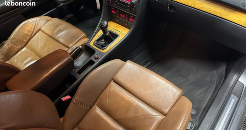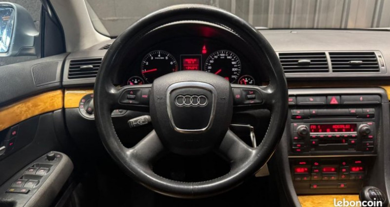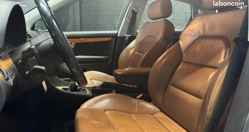 Audi A4 1.8 T 165 AMBITION QUATTRO berline, gris, 11 cv, 4 portes, première mise en circulation le 01/08/2005, garantie 6 mois. - NOS SERVICES ET PRESTATIONS COMPLÉMENTAIRES - - Visite virtuelle : avant de vous déplacer, visualisez votre futur véhicule sous toutes ses coutures . Contactez-nous pour en voir plus ! - Extension de garantie jusqu'à 60 mois. - Solutions de Financement de 12 à 84 mois. - Livraison dans toute la France métropolitaine (sur devis). - Reprise possible de votre ancien véhicule. - Les informations délivrées par cette annonce sont non contractuelles et données à titre indicatif. Packs disponibles (véhicules éligibles au Label) - Pack Clés en Main - 691 € TTC(¹)(²) Démarches (hors carte grise) | 1/4 de carburant | Nettoyage First | Garantie 6 mois | Label inclus? - Pack Sérénité - 891 € TTC(¹)(²) Démarches (hors carte grise) | 1/2 de carburant | Nettoyage Confort | Garantie 12 mois | Label inclus? - Pack Prestige - 1.091 € TTC(¹)(²) Démarches (hors carte grise) | Plein complet | Nettoyage Prestige | Garantie 12 mois | Label inclus? + Surprise du chef - (¹) Les véhicules non éligibles au Label bénéficient de tarifs préférentiels. Veuillez contacter votre conseiller pour obtenir les conditions tarifaires applicables. (²) Tarif pour les véhicules deux roues motrices dont la valeur de vente est inférieure à 60 000 € TTC. - Véhicule visible sur rendez vous 5 places OPTIONS ET ÉQUIPEMENTS : Conduite : - Boîte de vitesse manuelle Extérieur : - jantes : aluminium Intérieur : - Sièges AV électriques - Porte gobelet avant - accoudoir central - banquette 1/3 - 2/3 - fermeture centralisée - vitres électriques - volant réglable hauteur - volant réglable profondeur Pack : - nombre de rapports : 6 vitesses - volant réglable Sellerie : - Sellerie cuir Sécurité : - Airbags - ABS - ESP - roue de secours Autres équipements et informations : - Classe Crit'air : 3 - Puissance kilowatt : 120 kw - puissance réelle : 163 ch - émission CO2 : 223 g/km - état : excellent Référence annonce : d148982