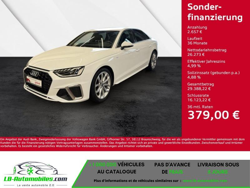 Référence : 1012314 Vos Avantages chez LB-AUTOMOBILES.com / Prix affiché TTC Livré hors carte grise / Livraison sous 10 jours dans toute la France hors 31 / Pas d?avance de frais paiement du véhicule 100% à la livraison par virement. Audi A4 Neuf remisée, Audi A4 Occasion Toulouse Beaupuy 31850, Audi A4 Véhicule sorti de réseau collaborateur, Audi A4 import, Audi A4 importateur, Audi A4 Livraison possible dans toute la France sous 5 jours, Audi A4, Audi A4 Location Option Achat, Audi A4 LLD, Audi A4 Longue Durée, Audi A4 TVA récupérable. Possibilité d'extension de garantie 12, 24,36 mois, Pour tout autres voitures import neufs ou occasions collaborateur fortement remisée, Mandataire Audi, Mandataire BMW, Mandataire Volkswagen, Mandataire Mercedes, Mandataire Peugeot Espagne, Mandataire Renault Espagne, Porsche import, Mandataire Citroën Espagne, Mandataire Seat Espagne, n'hésitez pas à nous contacter. « Sous réserve de vente préalable et erreur de saisie » Principaux équipements : - ABS - Accoudoir - Airbags frontaux et latéraux et autres - Antidémarrage - Assistance au freinage d'urgence - Assistant feux de route - Bluetooth - Capteur de lumière - Capteur de pluie - Carnet d'entretien - Chargement par induction pour smartphones - Climatisation automatique - Commande vocale - Contrôle de la pression des pneus - Direction assistée - Éclairage d'ambiance - ESP - Fermeture centralisée - Feux de jour LED - Garantie - GPS - Hayon électrique - Isofix - Jantes alliage - Kit mains libres - Ordinateur de bord - Pack sport - Phares LED - Point Isofix siège passager - Radio DAB - Régulateur de vitesse - Rétroviseur extérieur électrique - Rétroviseur intérieur anti-éblouissement automatique - Sièges chauffants - Sièges sport - Suspension sport - Système antipatinage - Système de sonorisation - Système Stop & Start - Traction avant - Tuner/radio - Véhicule non-fumeur - Verrouillage centralisé sans clé - Vitres électriques - Volant en cuir - Volant multifonction - WLAN / point d'accès Wi-Fi - Radar de recul : Arrière, Avant - Première main : Oui