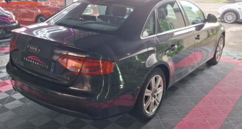 Cylindrée : 1968 cm3 EQUIPEMENTS Leader dans l?intermédiation automobile, nous sommes présents en France, Belgique & DOM-TOM avec plus de 200 agences & showrooms. TRANSAKAUTO PERTUIS VOUS PROPOSE À LA VENTE CETTE : AUDI A4 2.0l TDI 143 cv AVANT ~ Aide au Stationnement ~ Régulateur de Vitesse ~ GPS ~ Rétroviseurs électriques ~ Clim auto Garantie de 6 mois jusqu?à 2 ans disponible.Livraison disponible sur le territoire Européen & Corse. PRIX HORS FRAIS D?IMMATRICULATION & DE COURTAGE. TOUS LES VÉHICULES NE SONT PAS DANS LE SHOWROOM. OPTIONS & ÉQUIPEMENTS : - Radar de recul - Régulateur/Limiteur de vitesse - Navigation GPS INTÉRIEUR : - Volant cuir multifonctions - Inserts aluminium AUDI - Écran central - Climatisation automatique bi-zone - Accoudoir central AV/AR - Ordinateur de bord - Radio Symphony: Chargeur CD lecteur carte SD prise auxiliaire audio. - Lève vitres électriques AV/AR EXTÉRIEUR : - Jantes alliage 17 - Peinture métallisée - Rétroviseurs rabattables électriquement - Feux Xénon plus AV/AR - Double sortie d?échappement AIDE À LA CONDUITE : - Régulateur de vitesse - Aide au stationnement AR - Essuie-glaces automatiques ENTRETIENS : - 2 ème mains - Vidange & filtres : 10/2025 - Contrôle technique : OK - 2 clés disponibles - Suivi / carnet d?entretien numérique / PIÈCES D'USURE : - Pneus AV : OK - Pneus AR : OK - Disques & plaquettes : OK PRESTATIONS & SERVICES : - Achat - Vente - Reprise - Carte grise - Financement - Garantie mécanique - Sécurisation du paiement - Conseil en transaction automobile - Nettoyage professionnel avant livraison Le kilométrage peut être évolutif. Des erreurs peuvent se glisser dans nos annonces, contactez-nous pour plus d?informations sur les caractéristiques du véhicule. Tous les véhicules ne sont pas dans le showroom, je vous recommande de prendre rendez-vous avant de vous déplacer. Pour toutes questions ou reportages photos supplémentaires, veuillez nous contacter. PASSION - RIGUEUR - PARTAGE - INNOVATION AUTRES EQUIPEMENTS - Puissance reelle : 143 - Nb rapports : 6 - Nb places : 5 - Consommation extraurbaine : 4.30 - Consommation mixte : 5.50 - Consommation urbaine : 7.50