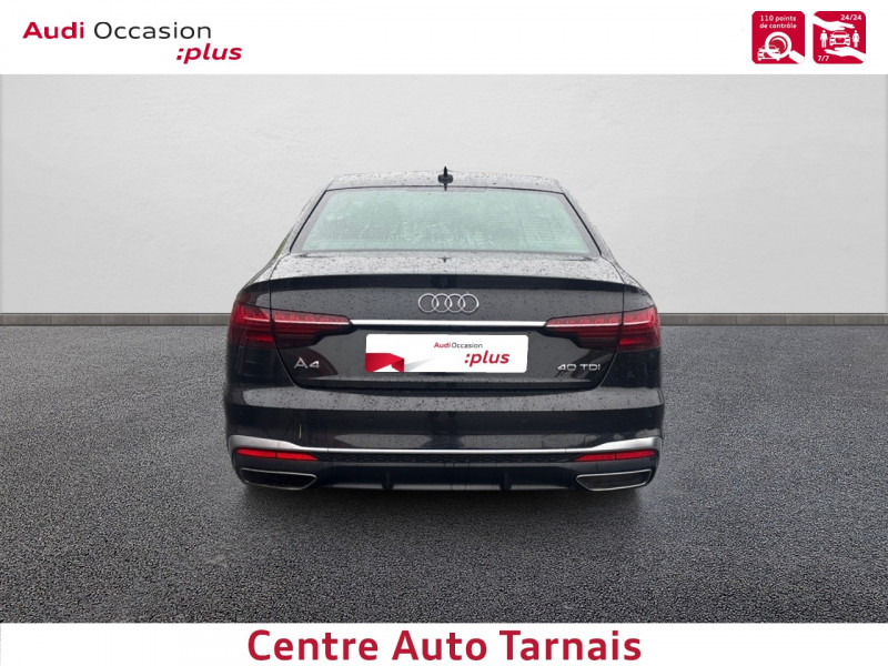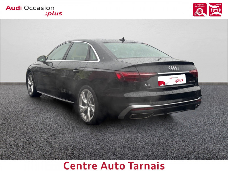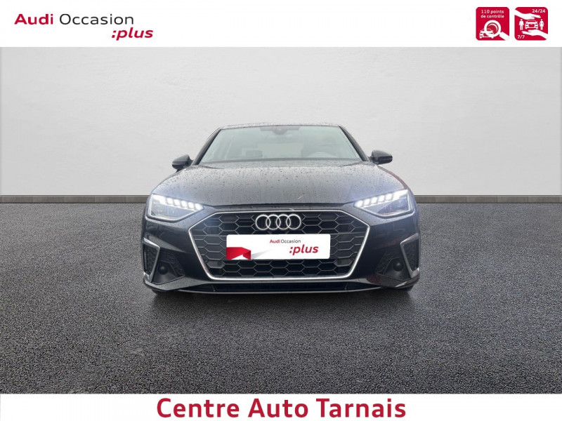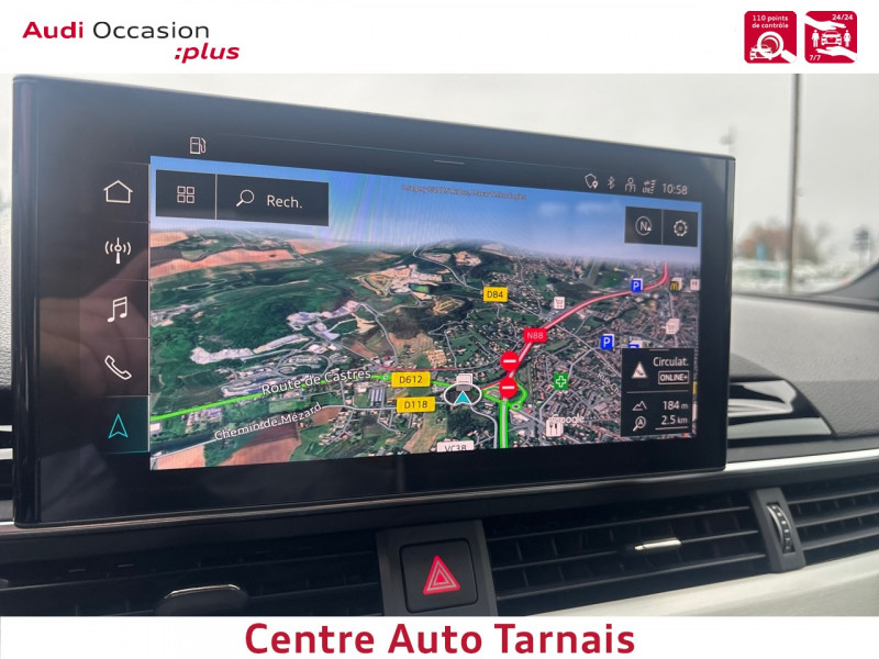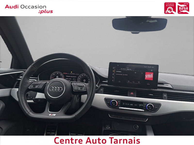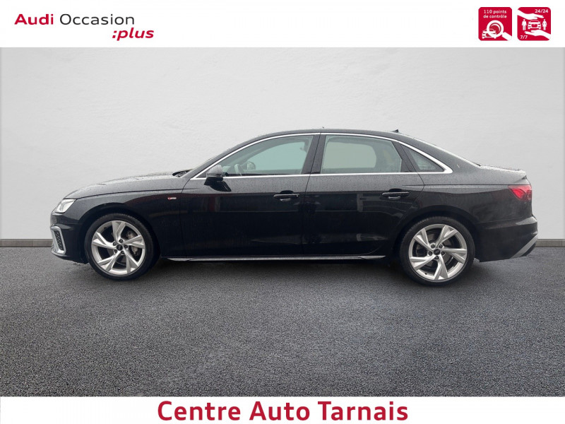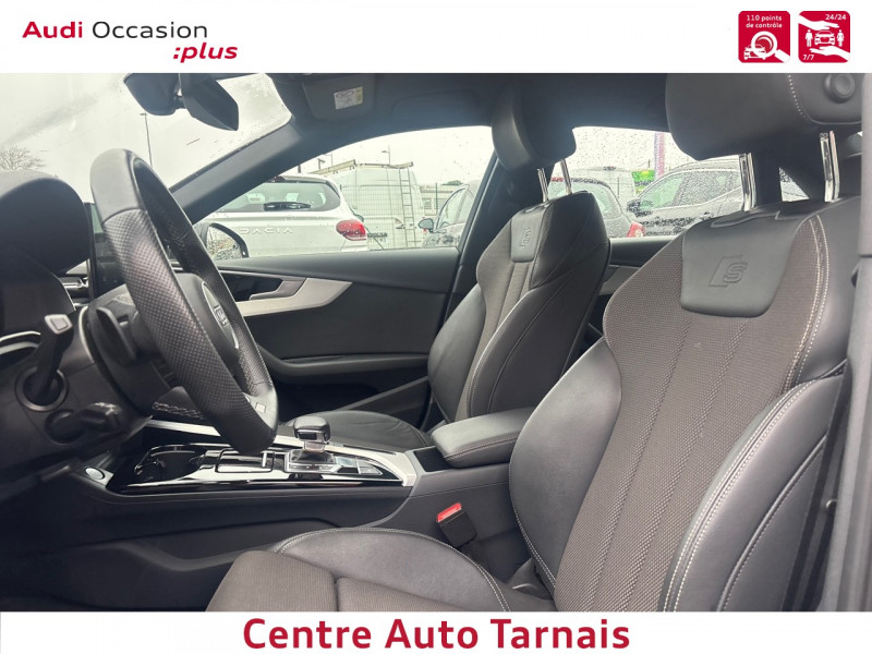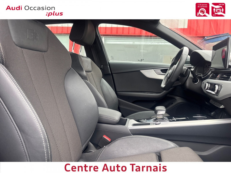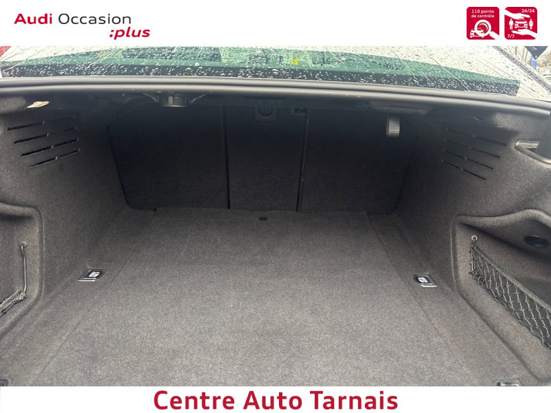 Applications décoratives en Aluminium brossé mat / Audi Virtual cockpit plus combiné d'instruments entièrement numérique de 12,3" en résolution Full HD, affichage flexible et fonctionnel des informations en fonction des besoins du conducteur, intégration des fonctionnalités MMI dans le combiné d'instruments, affichage de la carte de navigation en modèle de terrain 3D sur l'écran couleur, incluant recommandation de repos, possibilité d'affichage en mode Dynamique, Sport ou Classique haute résolution / Capot de coffre à ouverture automatique / Ceintures de sécurité, automatiques à 3 points pour tous les sièges, contrôle de port de ceinture AV / Frein de stationnement électromécanique / Jantes en aluminium coulé style 5 branches en Y, 8,0 Jx18", avec pneus 245/40 R 18 / Moulures de seuil avec insert en aluminium AV, éclairées, avec inscription S / Navigation MMI plus avec MMI touch / Pack Brillance Baguette le long du pavillon et sur les appuis de vitre en aluminium anodisé / Pack Eclairage d'ambiance Miroirs de courtoisie éclairés . Éclairage périphérique dans les poignées de portières extérieures . Éclairage des seuils de portières AV . Éclairage du porte-boissons à l'AV . Éclairage dans la zone des pieds AV . Commande intérieure des portières AV/AR . Éclairage d'ambiance des portières AV/AR . Éclairage d'ambiance de la console centrale à l'AV / Pack Rangement et Coffre Inclut les éléments suivants dans l'habitacle : Filet de rangement au dos des sièges AV . Porte-gobelets dans l'accoudoir central à l'AR . Vide-poches côté conducteur . Boîte à gants verrouillable Dans le coffre : Filet de coffre, prise 12 volts, filet dans le logement gauche, un crochet pour sacs / Phares AV à LED (feux de croisement, feux de route, feux diurnes et feux de position LED, clignotants à ampoule, avec éclairage tout-temps) / Phares à LED, avec clignotants AR à LED dynamiques / Préparation pour crochet d'attelage / Préparation pour l'activation de la fonction de navigation / Rétroviseur intérieur sans encadrement jour/nuit automatique / Rétroviseurs extérieurs couleur carrosserie avec clignotants à LED intégrés / Rétroviseurs extérieurs réglables et escamotables électriquement, jour/nuit automatique, dégivrants des deux côtés et buses de lave-glaces dégivrantes / Volant Sport contour en cuir style 3 branches à méplat avec multifonctions plus Avec emblème S et surpiqûres contrastées spécifiques S / Accoudoir central confort AV avec inclinaison réglable et coulissant en longueur / Airbags latéraux à l'AV et système d'airbags de tête / Antipatinage ASR pour une motricité optimale, empêche le patinage des roues motrices / Appel d'urgence et service Audi connect avec commande du véhicule / Appui lombaire à 4 axes pour les sièges AV: réglages électrique, horizontal et vertical / Audi Connect avec carte SIM intégrée (e-SIM) et licence d'utilisation pour 3 ans / Audi Drive Select / Audi Parking System Plus / Audi Pre Sense city / Audi smartphone interface (Apple CarPlay ou Google Android Auto) / Audi Sound System 10 HP incluant 1 HP central et 1 subwoofer, amplificateur à 6 canaux avec une puissance totale de 180 watts / Avertissement de sortie de voie / Blocage électronique de différentiel EDS / Ciel de pavillon en tissu noir / Colonne de direction de sécurité / Commande de désactivation de l'airbag passager AV / Contrôle électronique de stabilisation (ESC) / Câbles de recharge pour téléphone portable, compatibles iPhone et Android / Diffuseur avec finition symétrique des sorties d'échappement de style en chrome à gauche et à droite / Direction assistée électromécanique / Dispositif anti-erreur de carburant / Dossier de banquette AR rabattable en 3 parties 40 : 20 : 40 ou complètement / Détecteur de pluie et de luminosité / Eclairage intérieur / Ecrous de roues antivol / Finition extérieure S Line / Fixation pour sièges enfants ISOFIX et Top Tether pour les places AR extérieures / Identification du modèle selon le nouveau marquage de puissance / Keyless Go: démarrage et arrêt du moteur par touche moteur Start/Stop sur la console centrale / Limitation de la vitesse maximale à 210 km/h / MMI Radio Plus / Pneus à roulage optimisé (faible résistance au roulement), 245/40 R 18 - Vmax = 210 km/h / Pédalier et repose-pieds en acier inoxydable / Récupération Permet de réaliser des économies de carburant en récupérant l'énergie de décélération et de freinage / Réservoir AdBlue de 12 l / S tronic, boîte séquentielle 7 vitesses à double embrayage avec commande électrohydraulique / Sièges AV réglables manuellement en hauteur et en profondeur ; réglage manuel des appuie-tête en hauteur / Surfaces d'accentuation façon verre en noir / Système de lecture des panneaux de signalisation par caméra / Sécurité enfants / Tapis complémentaires AV/AR / Tire Mobility System Compresseur et produit de colmatage en cas de crevaison / Trousse de secours avec triangle de présignalisation / Vide-poches dans les contre-portes à l'AV et à l'AR