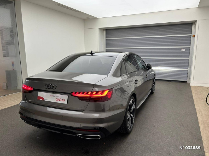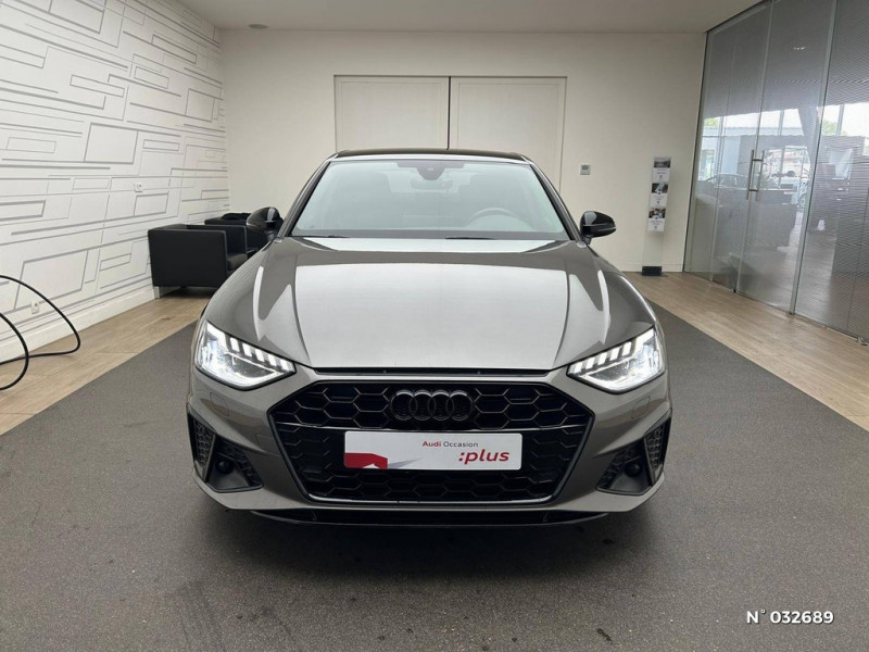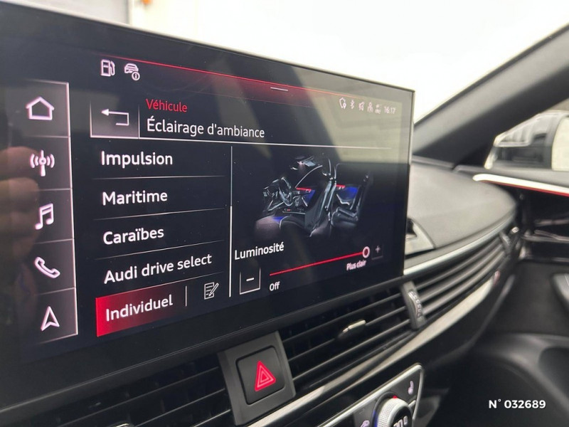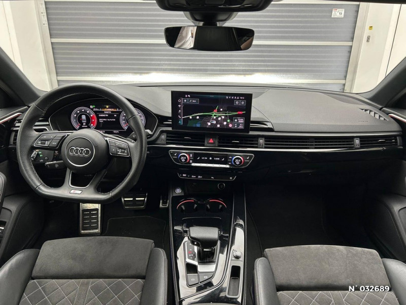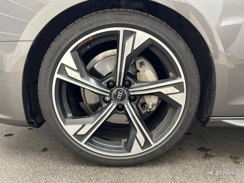 S tronic, boîte séquentielle 7 vitesses à double embrayage avec commande électrohydraulique / Tire Mobility System Compresseur et produit de colmatage en cas de crevaison / Vitrage acoustique pour les vitres de portières AV / Système d'information du conducteur (affichage d'un grand nombre d'informations utiles sur un écran TFT monochrome de 5") / Surfaces d'accentuation faà§on verre en noir / Vitrage Privacy (vitres surteintées) / Volant Sport contour en cuir style 3 branches à méplat avec multifonctions plus / Vide-poches dans les contre-portes à l'AV et à l'AR / Triangle de présignalisation / Toit en couleur contrastée Noir Brillant / Tapis complémentaires AV/AR / 30 couleurs au choix pour un profil de couleur personnalisable / Rétroviseurs extérieurs réglables et escamotables électriquement, jour/nuit automatique, dégivrants des deux côtés et buses de lave-glaces dégivrantes / Récupération Permet de réaliser des économies de carburant en récupérant l'énergie de décélération et de freinage / Sécurité enfants / Rétroviseur intérieur sans encadrement jour/nuit automatique / Sellerie Microfibre Dinamica / cuir combinés avec logo "S" dans le dossier des sièges AV / Sièges AV avec fonction massage / Pneus à roulage optimisé (faible résistance au roulement), 245/40 R 18 - Vmax = 210 km/h / Préparation pour crochet d'attelage / Phares Matrix LED, feux AR à LED et lave-phares / Préparation pour l'activation de la fonction de navigation / Capot de coffre à ouverture automatique / Audi Pre Sense city / Audi Phone Box avec charge du téléphone par induction (standard Qi) / Audi smartphone interface (Apple CarPlay ou Google Android Auto) / Applications décoratives argent flex métallique / Application décoratives aluminium brossé mat / Appui lombaire à 4 axes pour les sièges AV: réglages électrique, horizontal et vertical / Audi Drive Select / Audi Connect avec carte SIM intégrée (e-SIM) et licence d'utilisation pour 3 ans / Audi Parking System Plus: Signal sonore et visuel AV/AR / Audi Hold Assist / 8 HP passifs / Accoudoir central confort AV avec inclinaison réglable et coulissant en longueur / Antipatinage ASR pour une motricité optimale, empêche le patinage des roues motrices / Airbags latéraux à l'AV et système d'airbags de tête / Appel d'urgence et service Audi connect avec commande du véhicule / Diffuseur avec finition symétrique des sorties d'échappement de style en chrome à gauche et à droite / Dossier de banquette AR rabattable en 3 parties 40 : 20 : 40 ou complètement / Direction assistée électromécanique / Eléments de l'habitacle en simili-cuir / Clé confort incluant déverrouillage du coffre par capteur (avec safelock) / Clé Audi connect (Smartkey) / Contrôle électronique de stabilisation (ESC) / Commande de désactivation de l'airbag passager AV / Colonne de direction de sécurité / Ceintures de sécurité, automatiques à 3 points pour tous les sièges, contrôle de port de ceinture AV / Châssis de série, pour un confort de conduite accru avec une excellente dynamique / Ciel de pavillon en tissu noir / Audi Sound System / Blocage électronique de différentiel EDS / Câbles de recharge pour téléphone portable, compatibles iPhone et Android / Audi Virtual cockpit plus / Recommandation de repos / Moulures de seuil avec insert en aluminium AV, éclairées, avec inscription S / Navigation MMI plus avec MMI touch / Limitation de la vitesse maximale à 210 km/h / Pack Eclairage / Pack Rangement et Coffre / Pédalier et repose-pieds en acier inoxydable / Interface Bluetooth / Jantes en aluminium coulé Audi Sport 5 branches trapézoïdal, finition titane mat, polies brillant Dimension : 8,0 J x 18" Pneus : 245/40 R 18 / Keyless Go: démarrage et arrêt du moteur par touche moteur Start/Stop sur la console centrale / Identification du modèle selon le nouveau marquage de puissance / MMI Radio Plus / Eclairage intérieur / Ecrous de roues antivol / Finition extérieure S Line / Feux AR à LED, clignotants, feux stop, feux AR, feux de recul et feux de plaque AR à LED / Frein de stationnement électromécanique / Fixation pour sièges enfants ISOFIX et Top Tether pour les places AR extérieures incluant un point de fixation supplémentaire (Top Tether) / Coques de rétroviseurs noir brillant / Détecteur de pluie et de luminosité / Pack Eclairage / 3 profils de couleur prédéfinis ; un profil de couleur supplémentaire, interactif et personnalisé / Touche extérieure noire au niveau de l'Audi singleframe, des baguettes décoratives sur les vitres latérales et du pare-chocs AV et AR