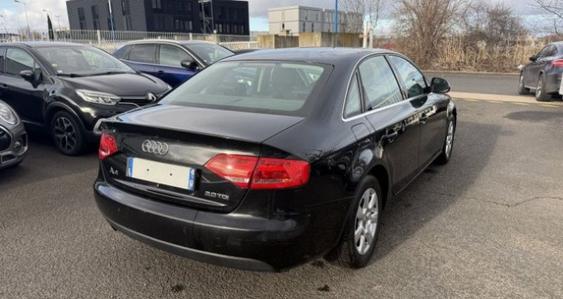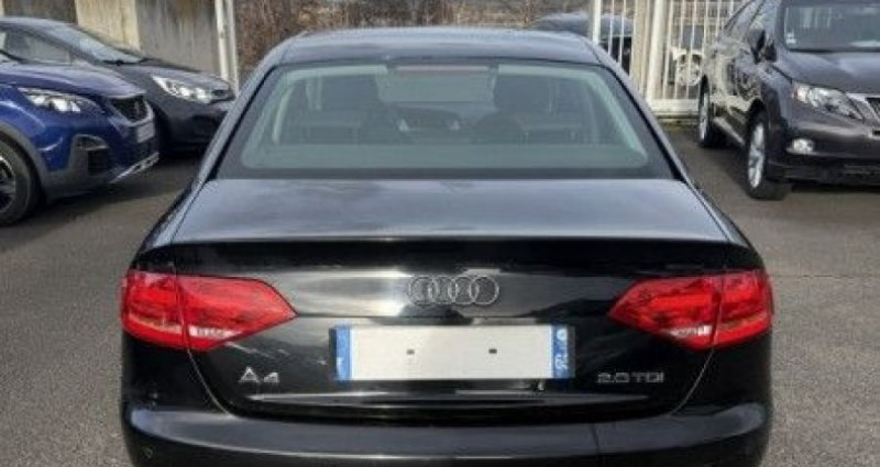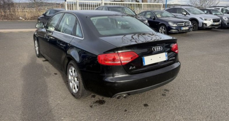 Audi A4 2.0 TDI 140CH AMBITION, (Berline), NOIR, 8cv, mise en circulation le 20-10-2008. 5 places, couleur intérieur : NOIR, longueur : 4,59 mètres, boîte de vitesse : manuelle OPTIONS ET EQUIPEMENTS : Audio - Télécommunications - Radio CD MP3 Conduite - Régulateur de vitesse Extérieur - Jantes Alu - Radar de recul - Rétroviseurs électriques Intérieur - Clim automatique - Direction assistée - Sièges avant chauffants - Verrouillage centralisé des portes - Vitres arrière électriques - Vitres avant électriques - Volant réglable en profondeur et hauteur Sécurité - ABS avec Répartiteur électr. de freinage - Airbags frontaux - Airbags latéraux avant - Airbags rideaux AV et AR - Antipatinage - ESP - Phares antibrouillard Kilométrage garanti. Référence annonce : 393