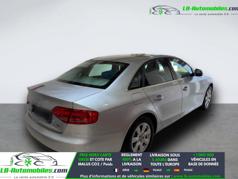 Référence : 1137186 Vos Avantages chez LB-AUTOMOBILES.com / Prix affiché TTC Livré hors carte grise / Livraison sous 10 jours dans toute la France hors 31 / Pas d?avance de frais paiement du véhicule 100% à la livraison par virement. Audi A4 Neuf remisée, Audi A4 Occasion Toulouse Beaupuy 31850, Audi A4 Véhicule sorti de réseau collaborateur, Audi A4 import, Audi A4 importateur, Audi A4 Livraison possible dans toute la France sous 5 jours, Audi A4, Audi A4 Location Option Achat, Audi A4 LLD, Audi A4 Longue Durée, Audi A4 TVA récupérable. Possibilité d'extension de garantie 12, 24,36 mois, Pour tout autres voitures import neufs ou occasions collaborateur fortement remisée, Mandataire Audi, Mandataire BMW, Mandataire Volkswagen, Mandataire Mercedes, Mandataire Peugeot Espagne, Mandataire Renault Espagne, Porsche import, Mandataire Citroën Espagne, Mandataire Seat Espagne, n'hésitez pas à nous contacter. « Sous réserve de vente préalable et erreur de saisie » Principaux équipements : - ABS - Accoudoir - Antidémarrage - Attache remorque détachable - Capteur de pluie - Carnet d'entretien - Direction assistée - ESP - Fermeture centralisée - Feux de jour - Jantes alliage - Jantes en acier - Kit de réparation d'urgence des pneus - Lecteur CD - Ordinateur de bord - Phare antibrouillard - Pneus été - Pneus hiver - Régulateur de vitesse - Rétroviseur extérieur électrique - Rétroviseur intérieur anti-éblouissement automatique - Sièges chauffants - Système antipatinage - Système d'alarme - Traction avant - Tuner/radio - Vitres électriques - Volant en cuir - Volant multifonction