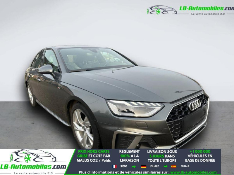 Référence : 1138019 Vos Avantages chez LB-AUTOMOBILES.com / Prix affiché TTC Livré hors carte grise / Livraison sous 10 jours dans toute la France hors 31 / Pas d?avance de frais paiement du véhicule 100% à la livraison par virement. Audi A4 Neuf remisée, Audi A4 Occasion Toulouse Beaupuy 31850, Audi A4 Véhicule sorti de réseau collaborateur, Audi A4 import, Audi A4 importateur, Audi A4 Livraison possible dans toute la France sous 5 jours, Audi A4, Audi A4 Location Option Achat, Audi A4 LLD, Audi A4 Longue Durée, Audi A4 TVA récupérable. Possibilité d'extension de garantie 12, 24,36 mois, Pour tout autres voitures import neufs ou occasions collaborateur fortement remisée, Mandataire Audi, Mandataire BMW, Mandataire Volkswagen, Mandataire Mercedes, Mandataire Peugeot Espagne, Mandataire Renault Espagne, Porsche import, Mandataire Citroën Espagne, Mandataire Seat Espagne, n'hésitez pas à nous contacter. « Sous réserve de vente préalable et erreur de saisie » Principaux équipements : - ABS - Accoudoir - Antidémarrage - Assistance au freinage d'urgence - Assistance de démarrage en côte - Bluetooth - Capteur de lumière - Capteur de pluie - Carnet d'entretien - Commande vocale - Contrôle de la pression des pneus - Diesel avec filtre à particules - Direction assistée - Éclairage adaptatif - Écran tactile - ESP - Fermeture centralisée - Feux de jour LED - Garantie - GPS - Grille de protection pour coffre - Isofix - Jantes alliage - Kit de réparation d'urgence des pneus - Kit mains libres - Lecteur CD - Ordinateur de bord - Pack sport - Phare antibrouillard - Phares LED - Pneus été - Pneus hiver - Port USB - Radio DAB - Réglage électrique des sièges - Régulateur de vitesse - Rétroviseur extérieur électrique - Rétroviseur intérieur anti-éblouissement automatique - Rétroviseurs extérieurs rabattables électriquement - Sièges chauffants - Sièges massants - Sièges sport - Support lombaire - Suspension sport - Système d'appel d'urgence - Système de limitation de la vitesse - Système Stop & Start - Traction avant - Véhicule non-fumeur - Vitres électriques - Volant multifonction