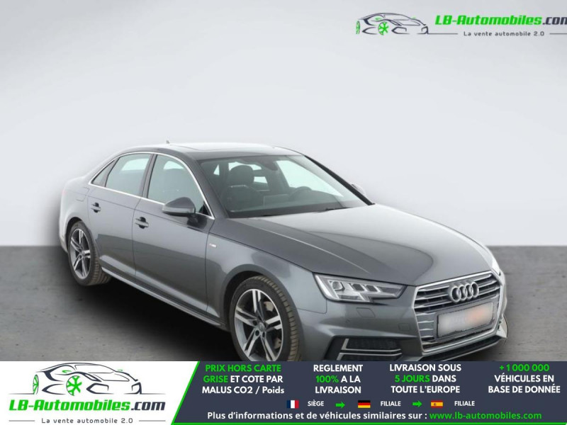Référence : 1179010 Vos Avantages chez LB-AUTOMOBILES.com / Prix affiché TTC Livré hors carte grise / Livraison sous 10 jours dans toute la France hors 31 / Pas d?avance de frais paiement du véhicule 100% à la livraison par virement. Audi A4 Neuf remisée, Audi A4 Occasion Toulouse Beaupuy 31850, Audi A4 Véhicule sorti de réseau collaborateur, Audi A4 import, Audi A4 importateur, Audi A4 Livraison possible dans toute la France sous 5 jours, Audi A4, Audi A4 Location Option Achat, Audi A4 LLD, Audi A4 Longue Durée, Audi A4 TVA récupérable. Possibilité d'extension de garantie 12, 24,36 mois, Pour tout autres voitures import neufs ou occasions collaborateur fortement remisée, Mandataire Audi, Mandataire BMW, Mandataire Volkswagen, Mandataire Mercedes, Mandataire Peugeot Espagne, Mandataire Renault Espagne, Porsche import, Mandataire Citroën Espagne, Mandataire Seat Espagne, n'hésitez pas à nous contacter. « Sous réserve de vente préalable et erreur de saisie » Principaux équipements : - ABS - Accoudoir - Antidémarrage - Assistance au freinage d'urgence - Bluetooth - Capteur de lumière - Capteur de pluie - Cockpit numérique - Contrôle de la pression des pneus - Direction assistée - ESP - Fermeture centralisée - Feux de jour LED - Garantie - GPS - Isofix - Jantes alliage - Kit de réparation d'urgence des pneus - Kit mains libres - Lecteur CD - Ordinateur de bord - Pack sport - Phares LED - Pneus été - Port USB - Rétroviseur extérieur électrique - Révision complète - Sièges arrières chauffants électriques - Sièges chauffants - Sièges sport - Suspension adaptative - Suspension sport - Système antipatinage - Système de détection de la fatigue - Système de limitation de la vitesse - Système de nettoyage des phares - Système de sonorisation - Système Stop & Start - Toit ouvrant - Toit panoramique - Traction avant - Tuner/radio - Véhicule non-fumeur - Verrouillage centralisé sans clé - Vitres électriques - Volant en cuir - Volant multifonction