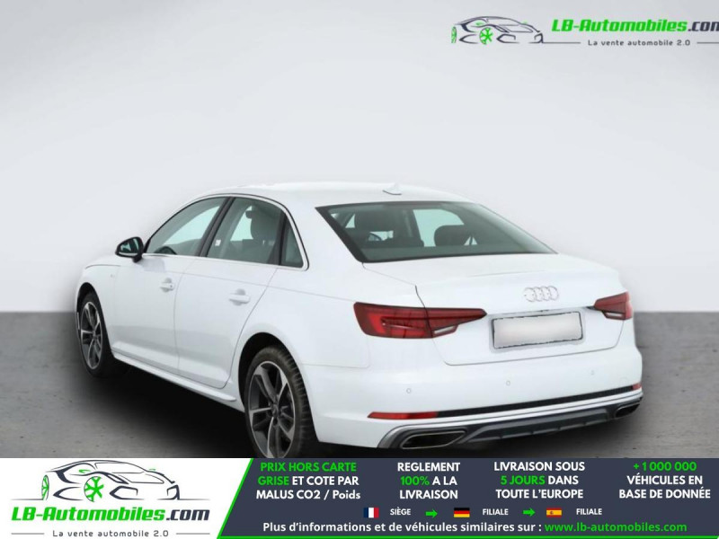 Référence : 1179011 Vos Avantages chez LB-AUTOMOBILES.com / Prix affiché TTC Livré hors carte grise / Livraison sous 10 jours dans toute la France hors 31 / Pas d?avance de frais paiement du véhicule 100% à la livraison par virement. Audi A4 Neuf remisée, Audi A4 Occasion Toulouse Beaupuy 31850, Audi A4 Véhicule sorti de réseau collaborateur, Audi A4 import, Audi A4 importateur, Audi A4 Livraison possible dans toute la France sous 5 jours, Audi A4, Audi A4 Location Option Achat, Audi A4 LLD, Audi A4 Longue Durée, Audi A4 TVA récupérable. Possibilité d'extension de garantie 12, 24,36 mois, Pour tout autres voitures import neufs ou occasions collaborateur fortement remisée, Mandataire Audi, Mandataire BMW, Mandataire Volkswagen, Mandataire Mercedes, Mandataire Peugeot Espagne, Mandataire Renault Espagne, Porsche import, Mandataire Citroën Espagne, Mandataire Seat Espagne, n'hésitez pas à nous contacter. « Sous réserve de vente préalable et erreur de saisie » Principaux équipements : - ABS - Accoudoir - Antidémarrage - Assistance de démarrage en côte - Assistant feux de route - Attache remorque pivotante - Bluetooth - Boîte de vitesses robotisée - Capteur de lumière - Capteur de pluie - Carnet d'entretien - Contrôle de la pression des pneus - Direction assistée - Éclairage adaptatif de virage - Éclairage route non éblouissant - ESP - Fermeture centralisée - Feux de jour LED - Garantie - GPS - Isofix - Jantes alliage - Kit mains libres - Ordinateur de bord - Pack sport - Phares LED - Port USB - Réglage électrique des sièges - Régulateur de vitesse - Rétroviseur extérieur électrique - Rétroviseur intérieur anti-éblouissement automatique - Sièges chauffants - Sièges sport - Support lombaire - Système antipatinage - Système d'avertissement de la distance - Système de détection de la fatigue - Système de limitation de la vitesse - Système Stop & Start - Toit ouvrant - Tuner/radio - Véhicule non-fumeur - Vitres électriques - Volant en cuir - Volant multifonction