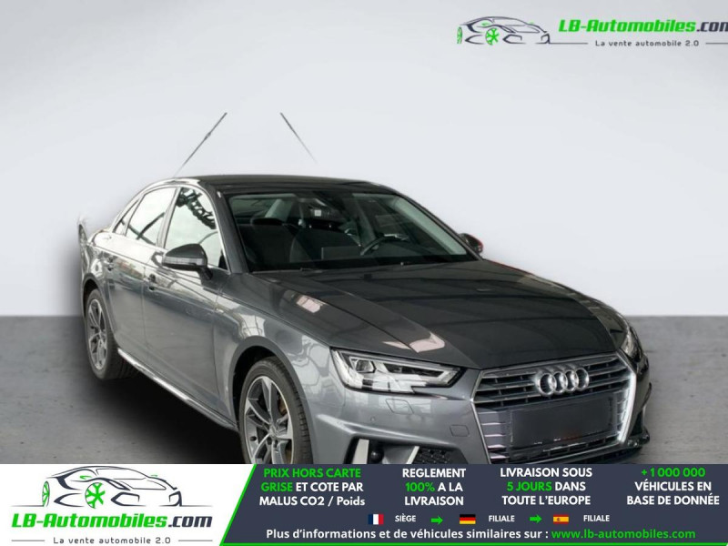 Référence : 1188751 Vos Avantages chez LB-AUTOMOBILES.com / Prix affiché TTC Livré hors carte grise / Livraison sous 10 jours dans toute la France hors 31 / Pas d?avance de frais paiement du véhicule 100% à la livraison par virement. Audi A4 Neuf remisée, Audi A4 Occasion Toulouse Beaupuy 31850, Audi A4 Véhicule sorti de réseau collaborateur, Audi A4 import, Audi A4 importateur, Audi A4 Livraison possible dans toute la France sous 5 jours, Audi A4, Audi A4 Location Option Achat, Audi A4 LLD, Audi A4 Longue Durée, Audi A4 TVA récupérable. Possibilité d'extension de garantie 12, 24,36 mois, Pour tout autres voitures import neufs ou occasions collaborateur fortement remisée, Mandataire Audi, Mandataire BMW, Mandataire Volkswagen, Mandataire Mercedes, Mandataire Peugeot Espagne, Mandataire Renault Espagne, Porsche import, Mandataire Citroën Espagne, Mandataire Seat Espagne, n'hésitez pas à nous contacter. « Sous réserve de vente préalable et erreur de saisie » Principaux équipements : - ABS - Accoudoir - Antidémarrage - Assistance au freinage d'urgence - Bluetooth - Boîte de vitesses robotisée - Carnet d'entretien - Cockpit numérique - Commande vocale - Contrôle de la pression des pneus - Direction assistée - Éclairage adaptatif de virage - Éclairage d'ambiance - Écran tactile - ESP - Fermeture centralisée - Feux de jour LED - Garantie - GPS - Isofix - Jantes alliage - Kit de réparation d'urgence des pneus - Kit mains libres - Lecteur CD - Ordinateur de bord - Pack sport - Phares LED - Point Isofix siège passager - Port USB - Régulateur de vitesse - Rétroviseur extérieur électrique - Rétroviseur intérieur anti-éblouissement automatique - Rétroviseurs extérieurs rabattables électriquement - Sièges sport - Support lombaire - Système antipatinage - Système d'appel d'urgence - Système d'avertissement de la distance - Système de détection de la fatigue - Système de limitation de la vitesse - Système de nettoyage des phares - Système de reconnaissance des panneaux de signalisation - Système Stop & Start - Traction avant - Tuner/radio - Véhicule non-fumeur - Verrouillage centralisé sans clé - Vitres électriques - Volant chauffant - Volant en cuir - Volant multifonction - WLAN / point d'accès Wi-Fi