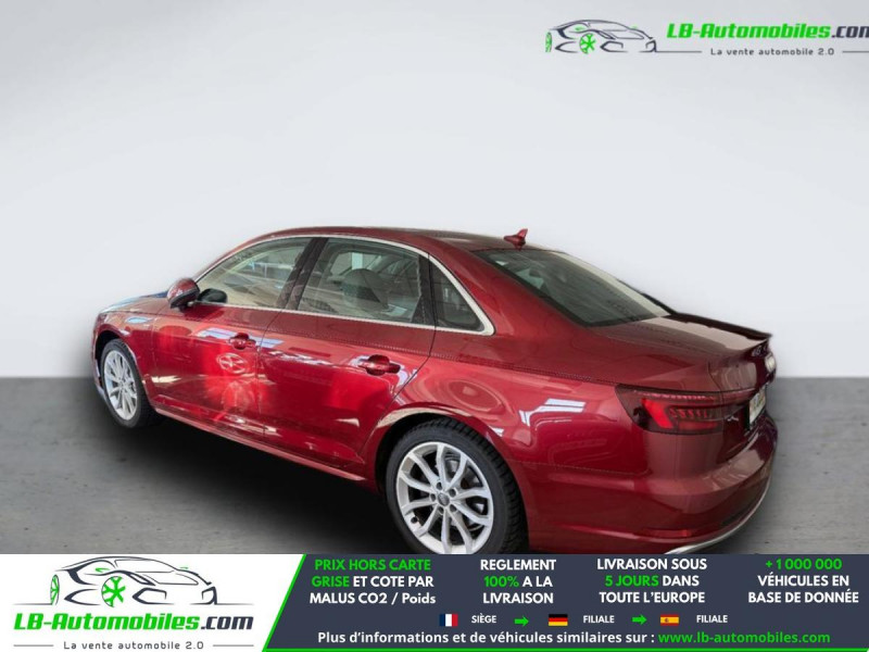 Référence : 1208761 Vos Avantages chez LB-AUTOMOBILES.com / Prix affiché TTC Livré hors carte grise / Livraison sous 10 jours dans toute la France hors 31 / Pas d?avance de frais paiement du véhicule 100% à la livraison par virement. Audi A4 Neuf remisée, Audi A4 Occasion Toulouse Beaupuy 31850, Audi A4 Véhicule sorti de réseau collaborateur, Audi A4 import, Audi A4 importateur, Audi A4 Livraison possible dans toute la France sous 5 jours, Audi A4, Audi A4 Location Option Achat, Audi A4 LLD, Audi A4 Longue Durée, Audi A4 TVA récupérable. Possibilité d'extension de garantie 12, 24,36 mois, Pour tout autres voitures import neufs ou occasions collaborateur fortement remisée, Mandataire Audi, Mandataire BMW, Mandataire Volkswagen, Mandataire Mercedes, Mandataire Peugeot Espagne, Mandataire Renault Espagne, Porsche import, Mandataire Citroën Espagne, Mandataire Seat Espagne, n'hésitez pas à nous contacter. « Sous réserve de vente préalable et erreur de saisie » Principaux équipements : - ABS - Accoudoir - Android Auto - Antidémarrage - Apple CarPlay - Assistance au freinage d'urgence - Assistance de démarrage en côte - Assistant feux de route - Bluetooth - Boîte de vitesses robotisée - Capteur de lumière - Capteur de pluie - Commande vocale - Contrôle de la pression des pneus - Diesel avec filtre à particules - Direction assistée - Éclairage d'ambiance - Éclairage route non éblouissant - Écran tactile - ESP - Fermeture centralisée - Feux de jour - GPS - Grille de protection pour coffre - Hayon électrique - Isofix - Jantes alliage - Kit mains libres - Lecteur CD - Ordinateur de bord - Package hiver - Pack sport - Phare antibrouillard - Phares LED - Pneus été - Pneus hiver - Port USB - Radio DAB - Réglage électrique des sièges - Régulateur de vitesse adaptatif - Rétroviseur extérieur électrique - Rétroviseur intérieur anti-éblouissement automatique - Rétroviseurs extérieurs rabattables électriquement - Sièges chauffants - Support lombaire - Système d'alarme - Système d'appel d'urgence - Système d'avertissement de la distance - Système de détection de la fatigue - Système de limitation de la vitesse - Système de nettoyage des phares - Système de sonorisation - Système Stop & Start - Traction avant - Verrouillage centralisé sans clé - Vitres électriques - Volant en cuir - Volant multifonction